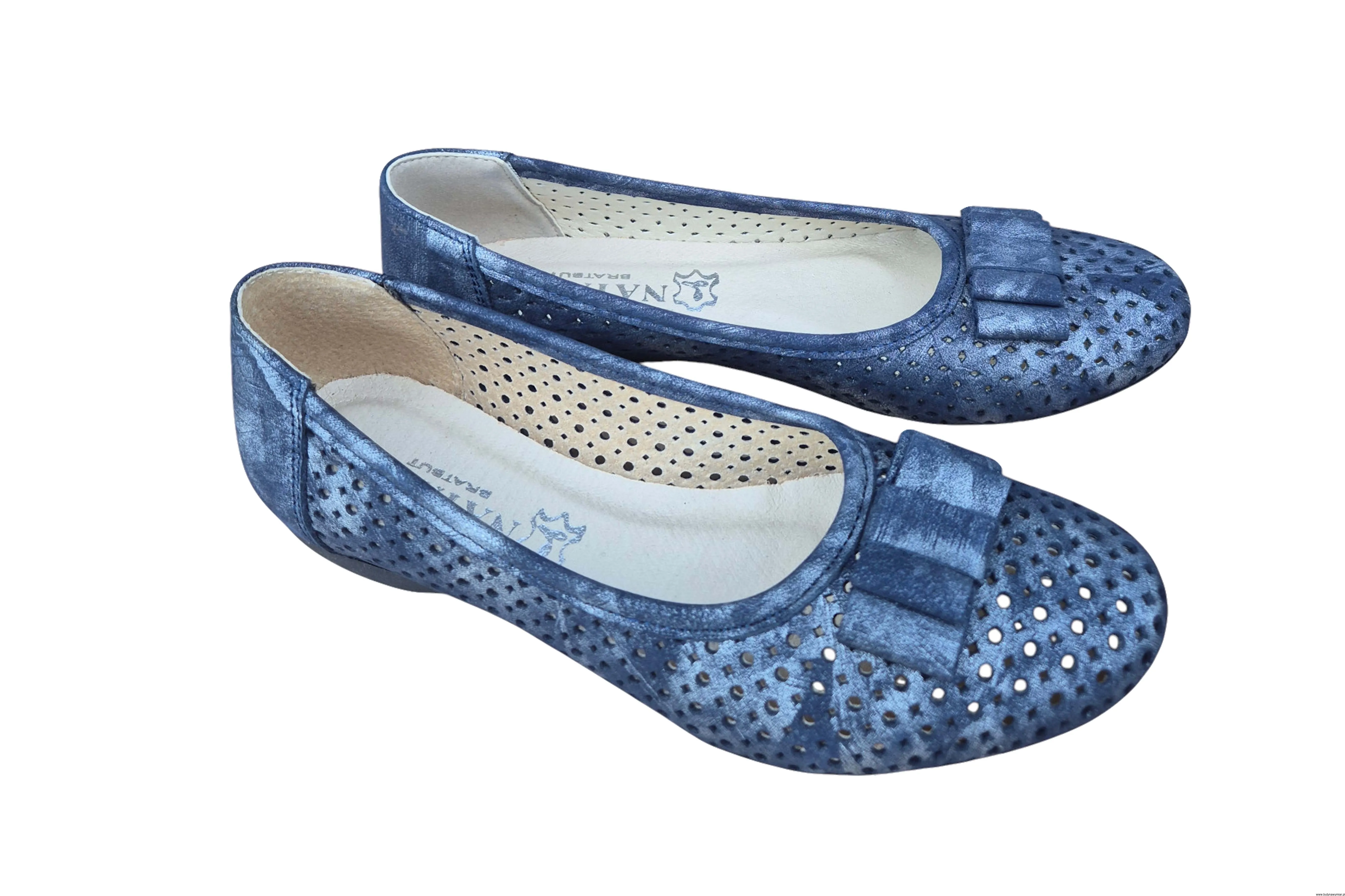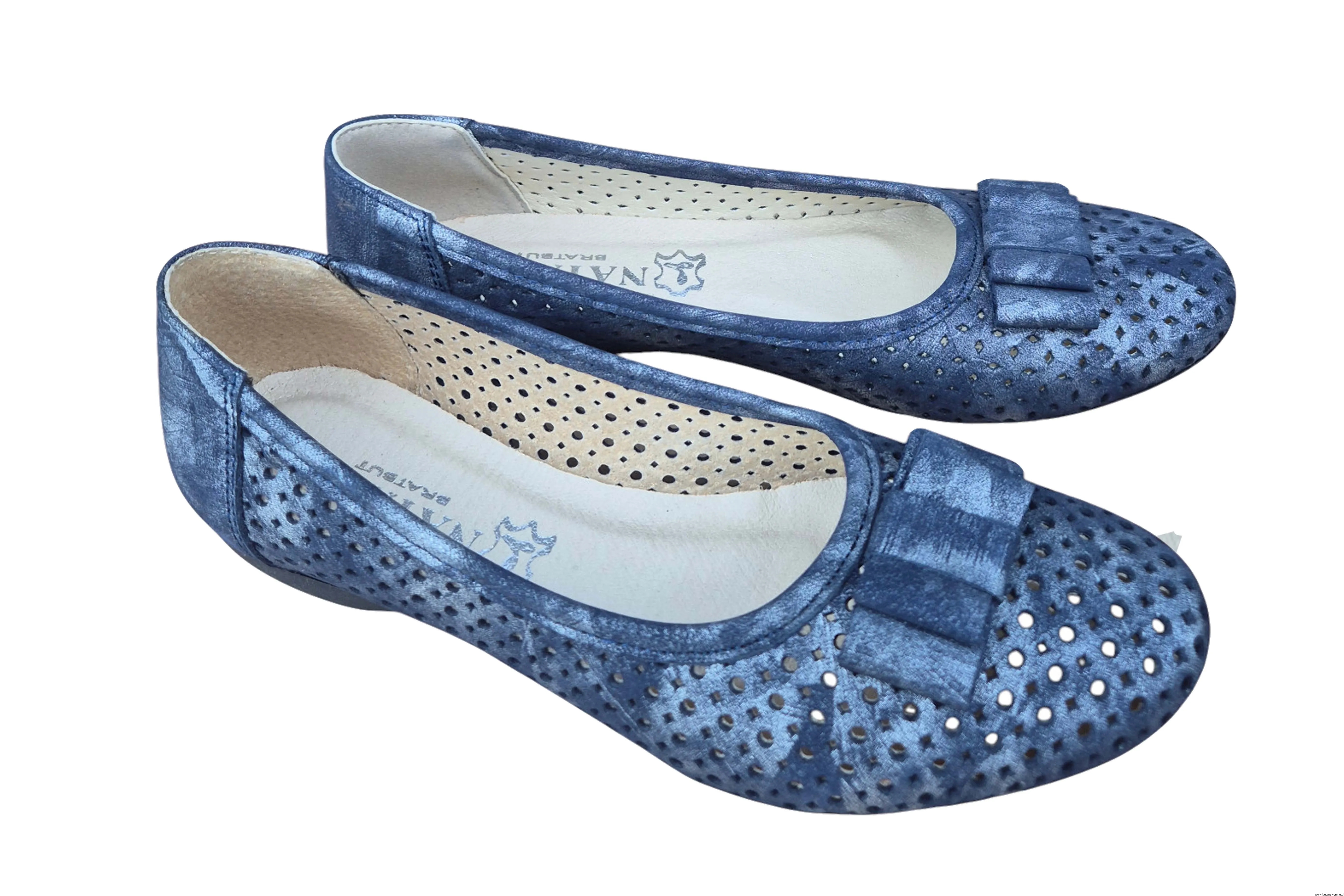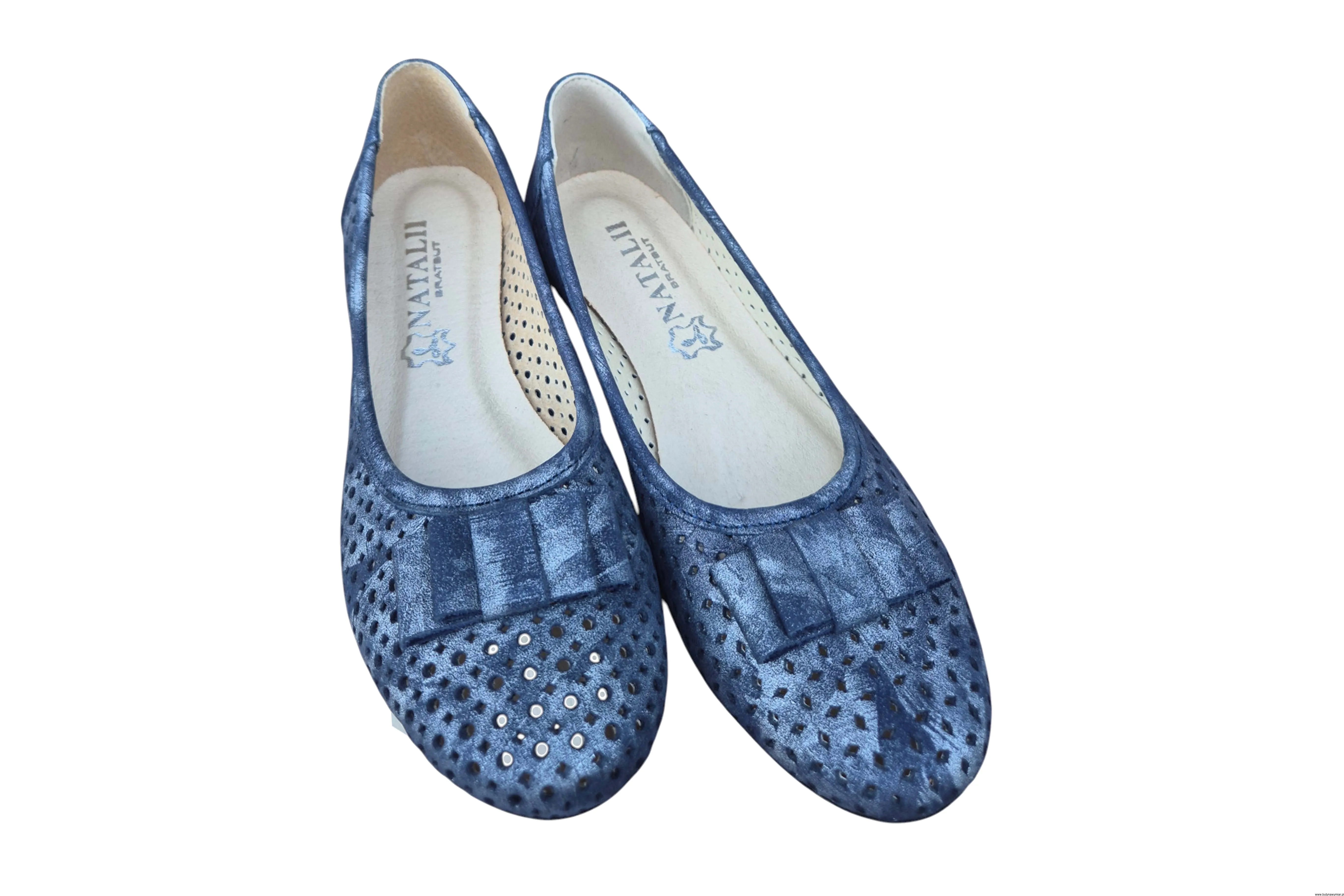 Wyjątkowe i eleganckie balerinki damskie w kolorze Granatowym wykonane ze skóry naturalnej.