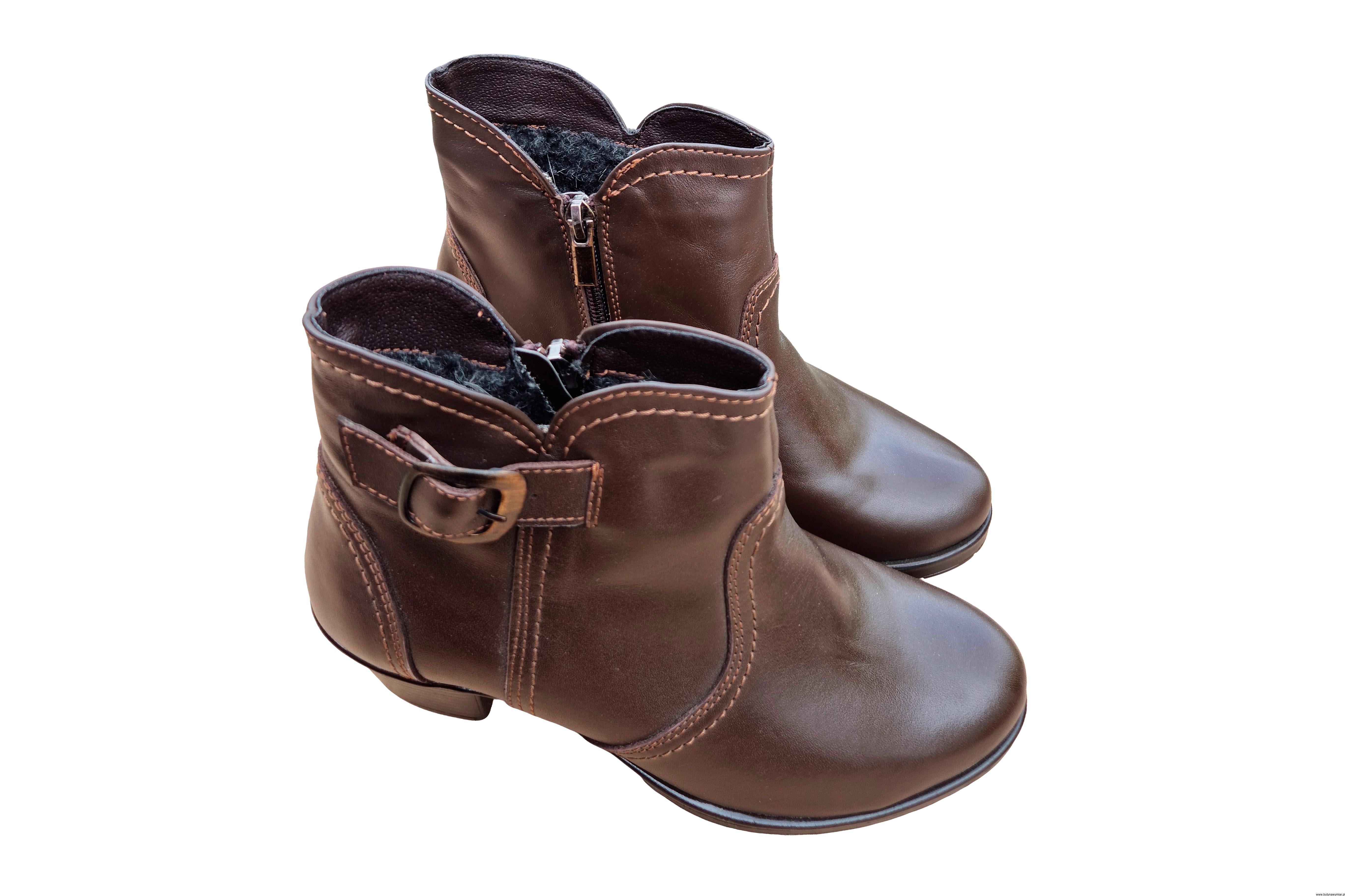 Modne i wygodne brązowe botki Zapinane na zamek. ze skóry naturalnej ocieplane polarem.