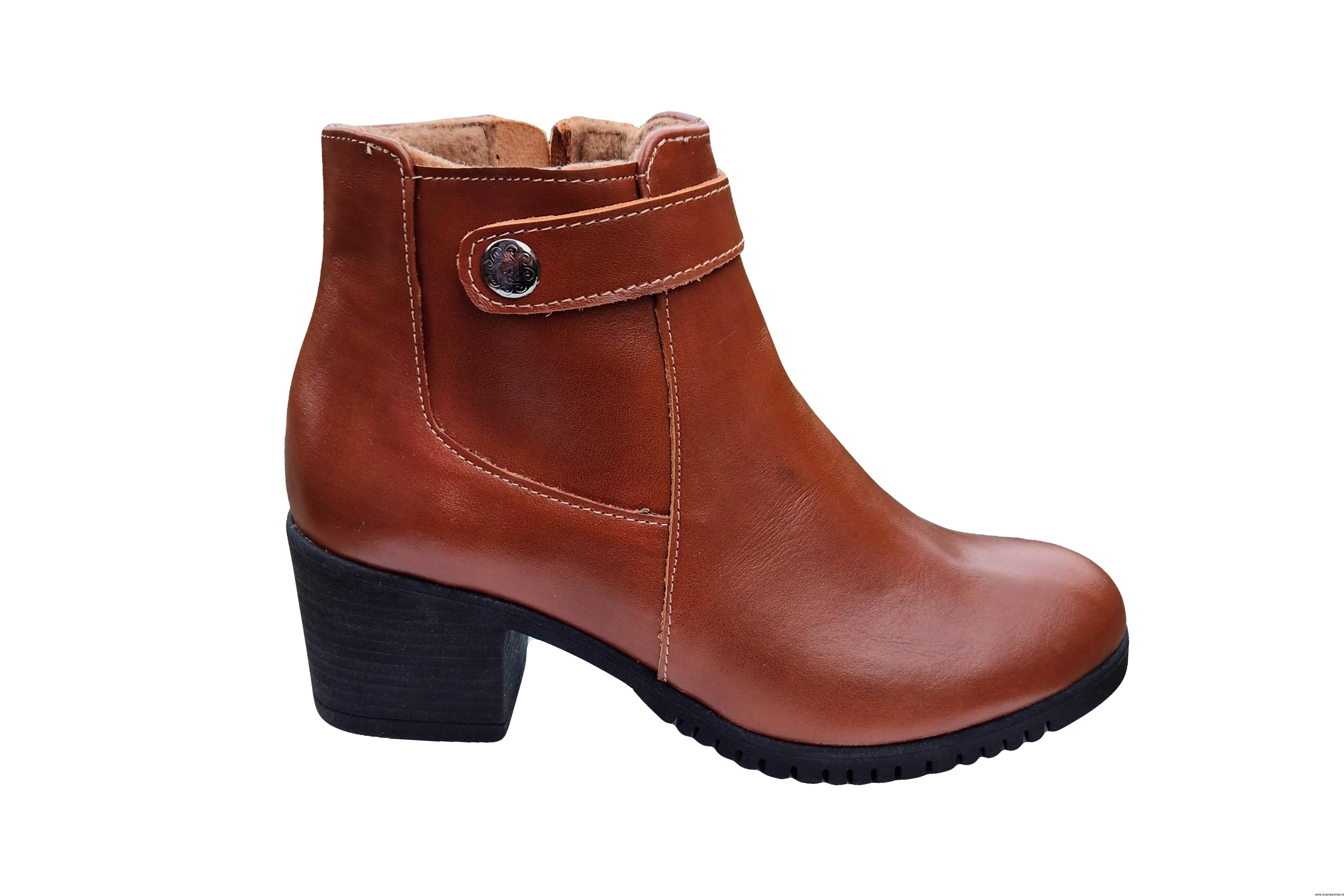Modne i wygodne brązowe botki Zapinane na zamek. ze skóry naturalnej ocieplane polarem.
