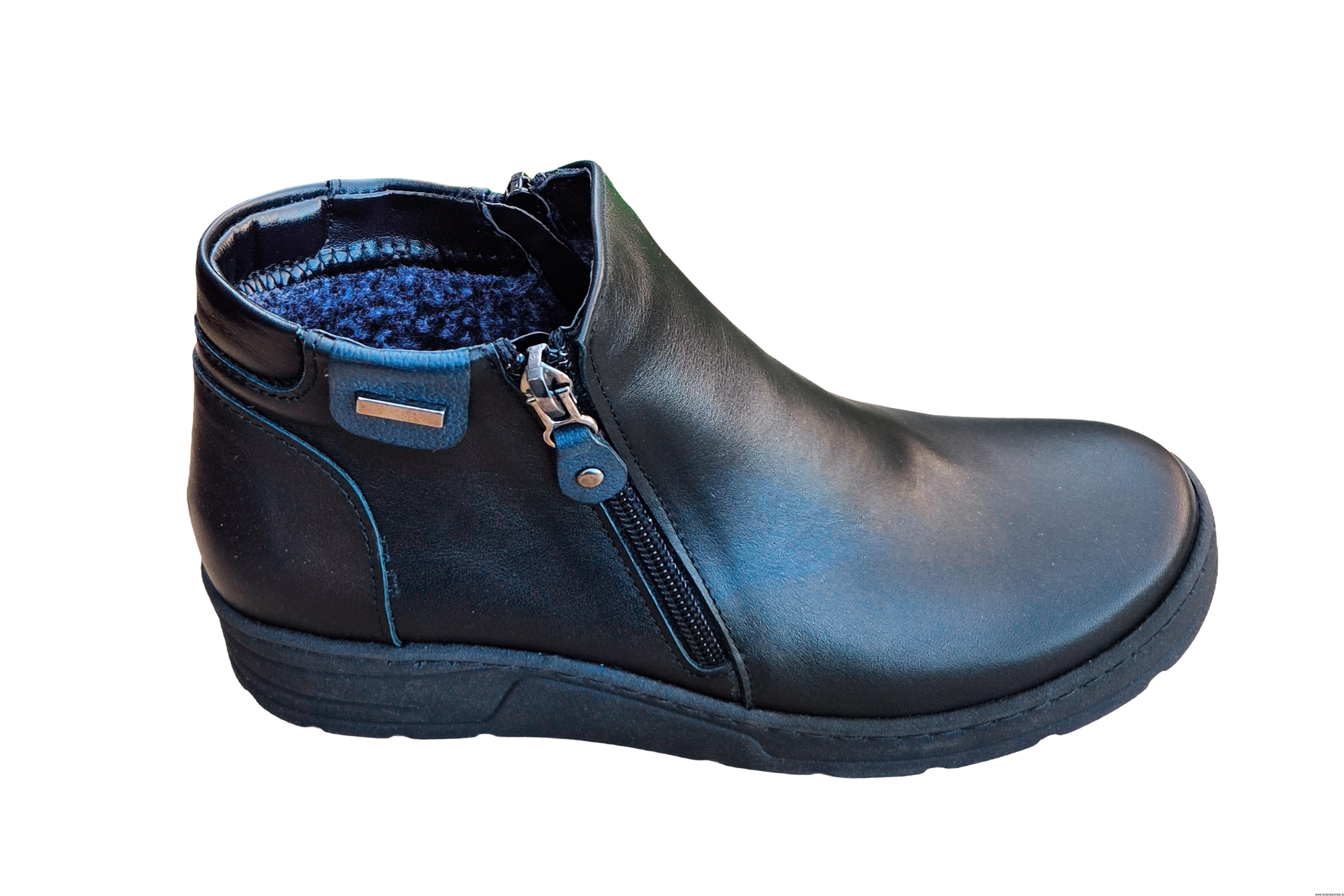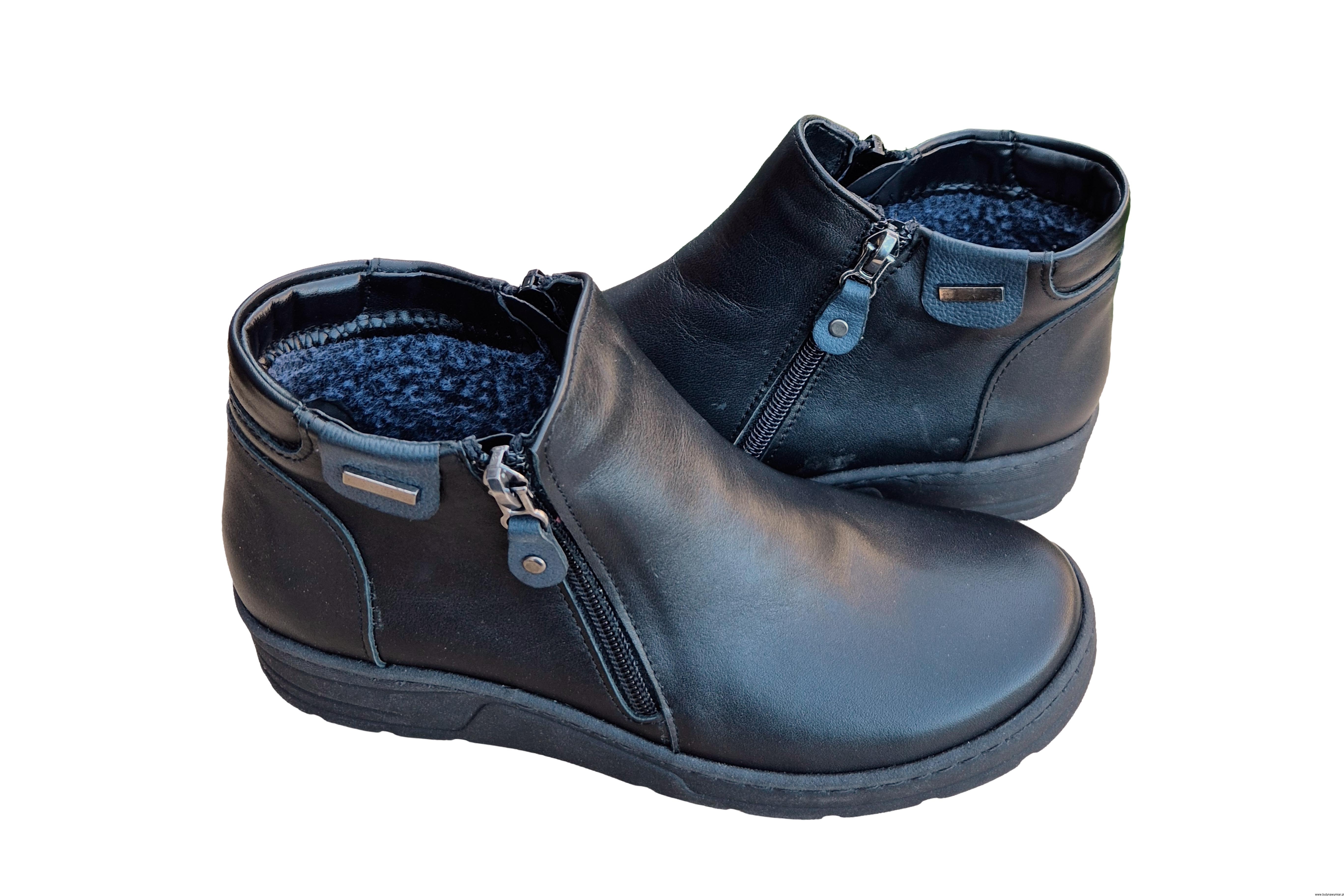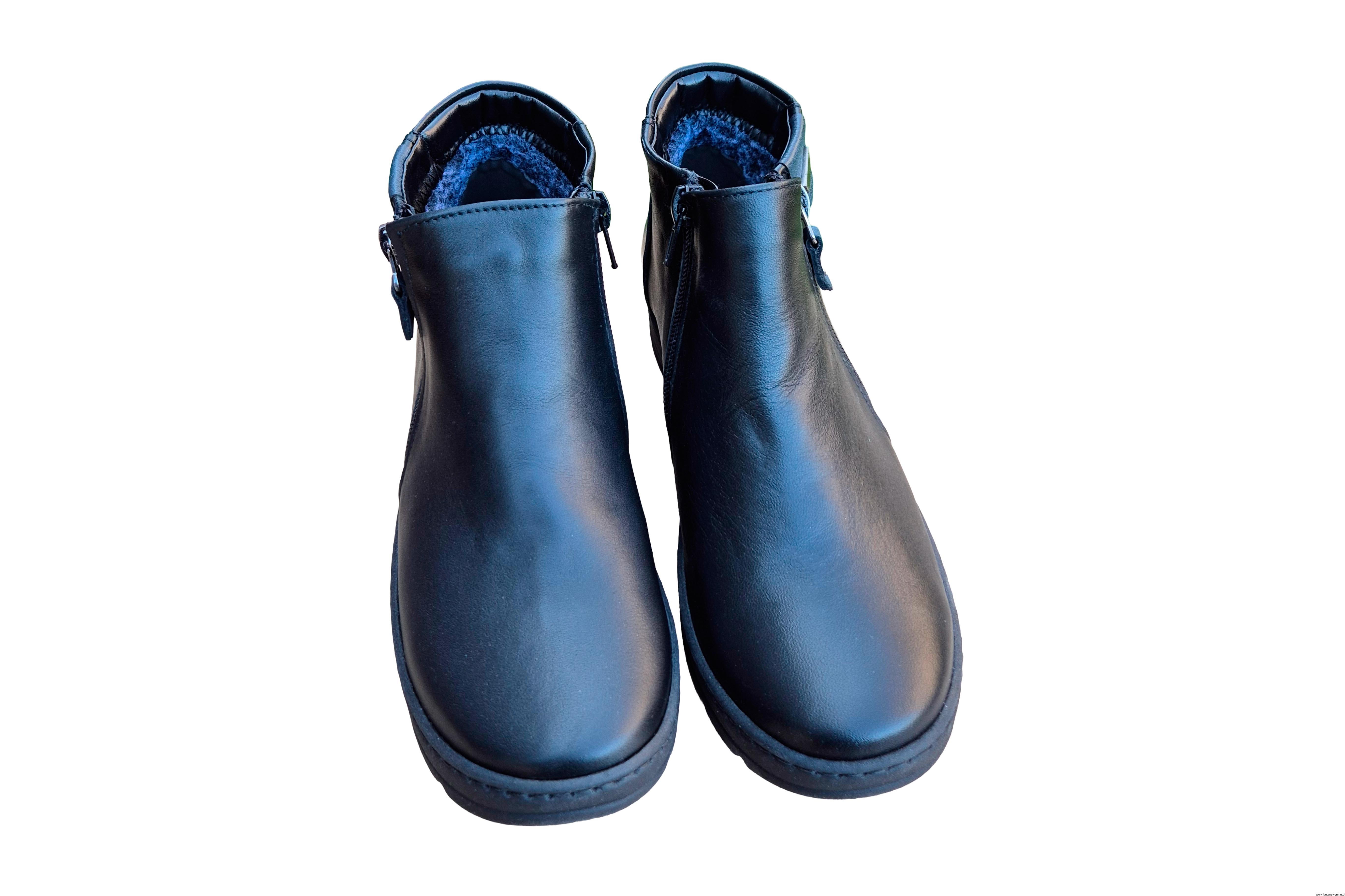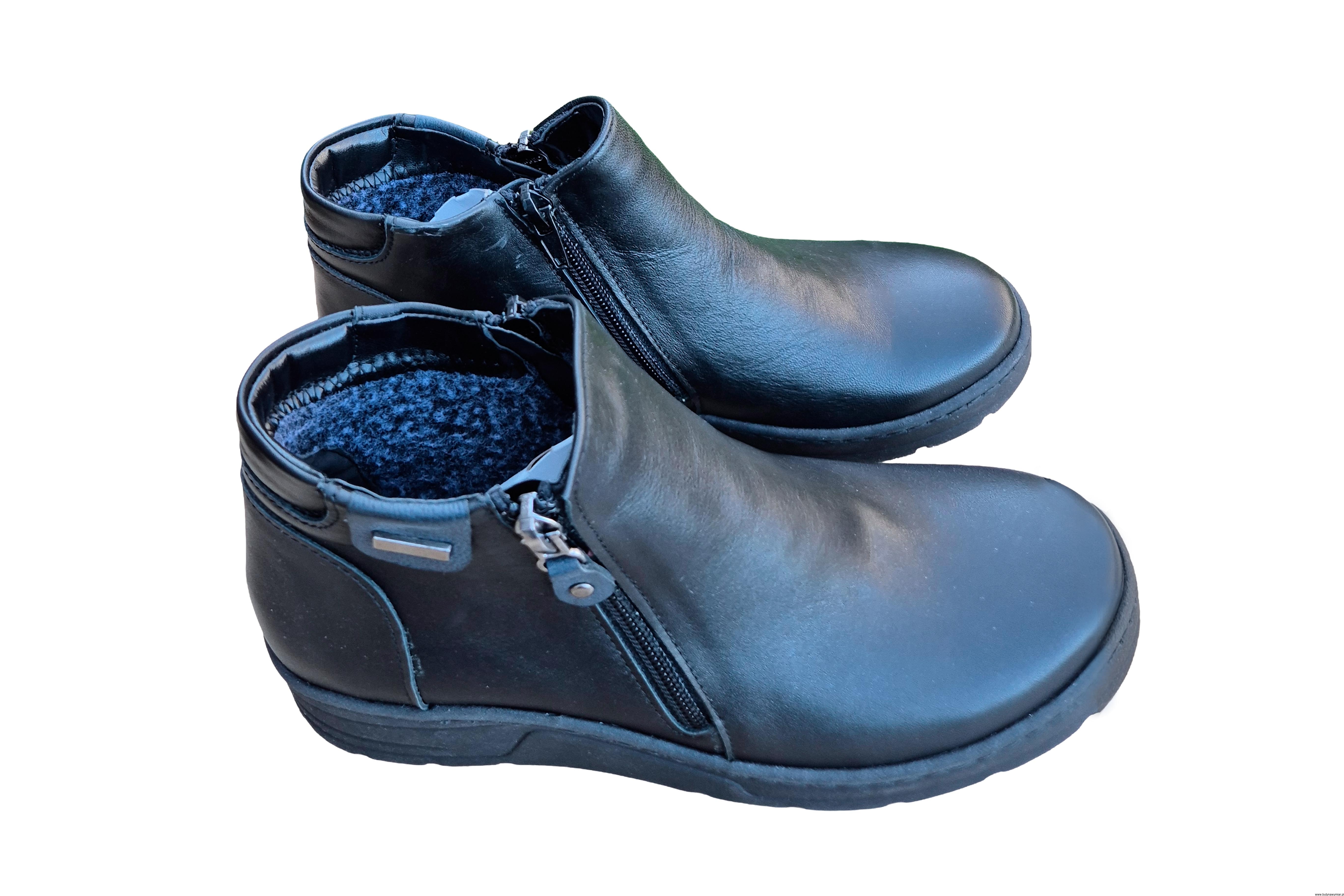 Modne i wygodne czarne botki Zapinane na zamek. ze skóry naturalnej ocieplane polarem.
