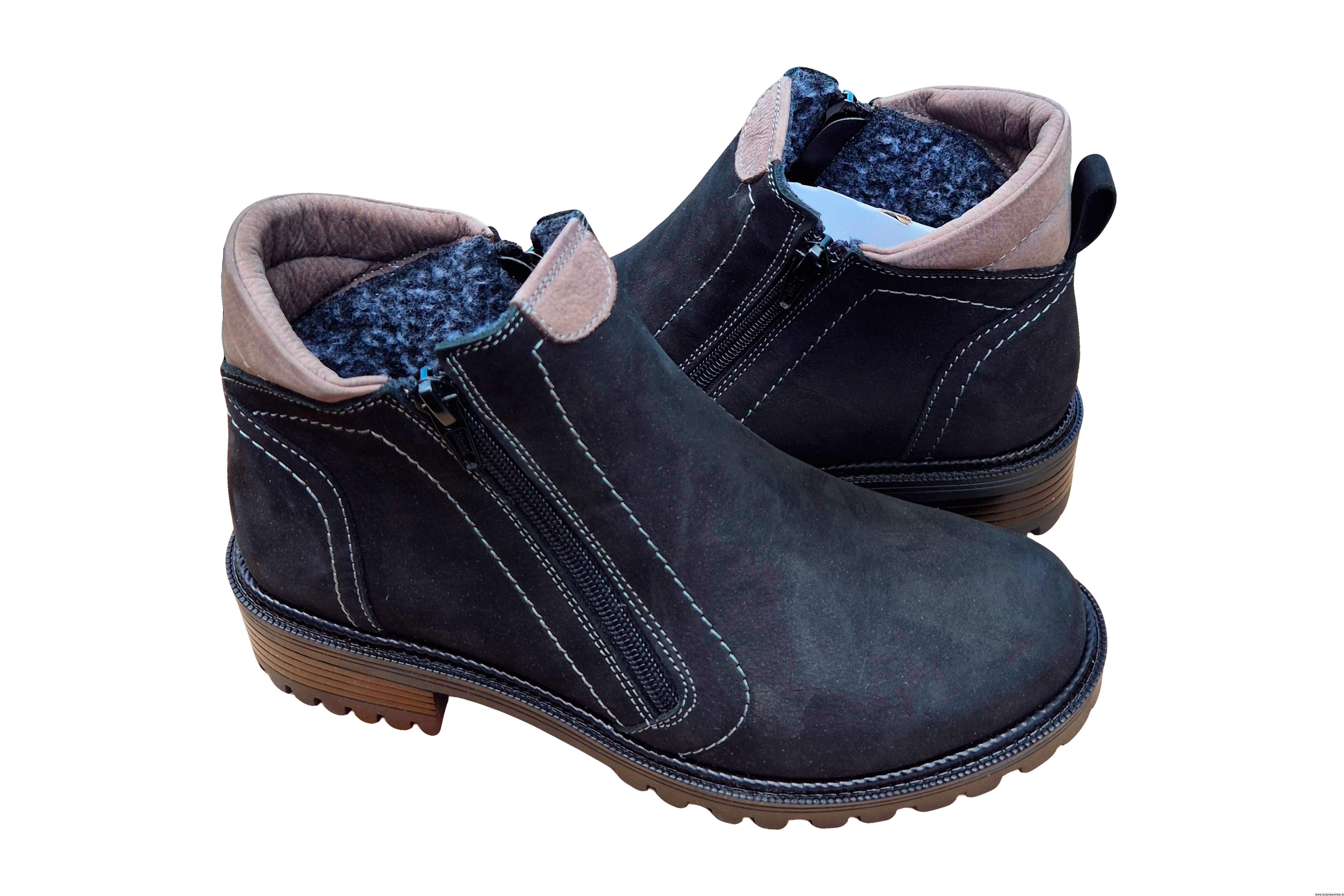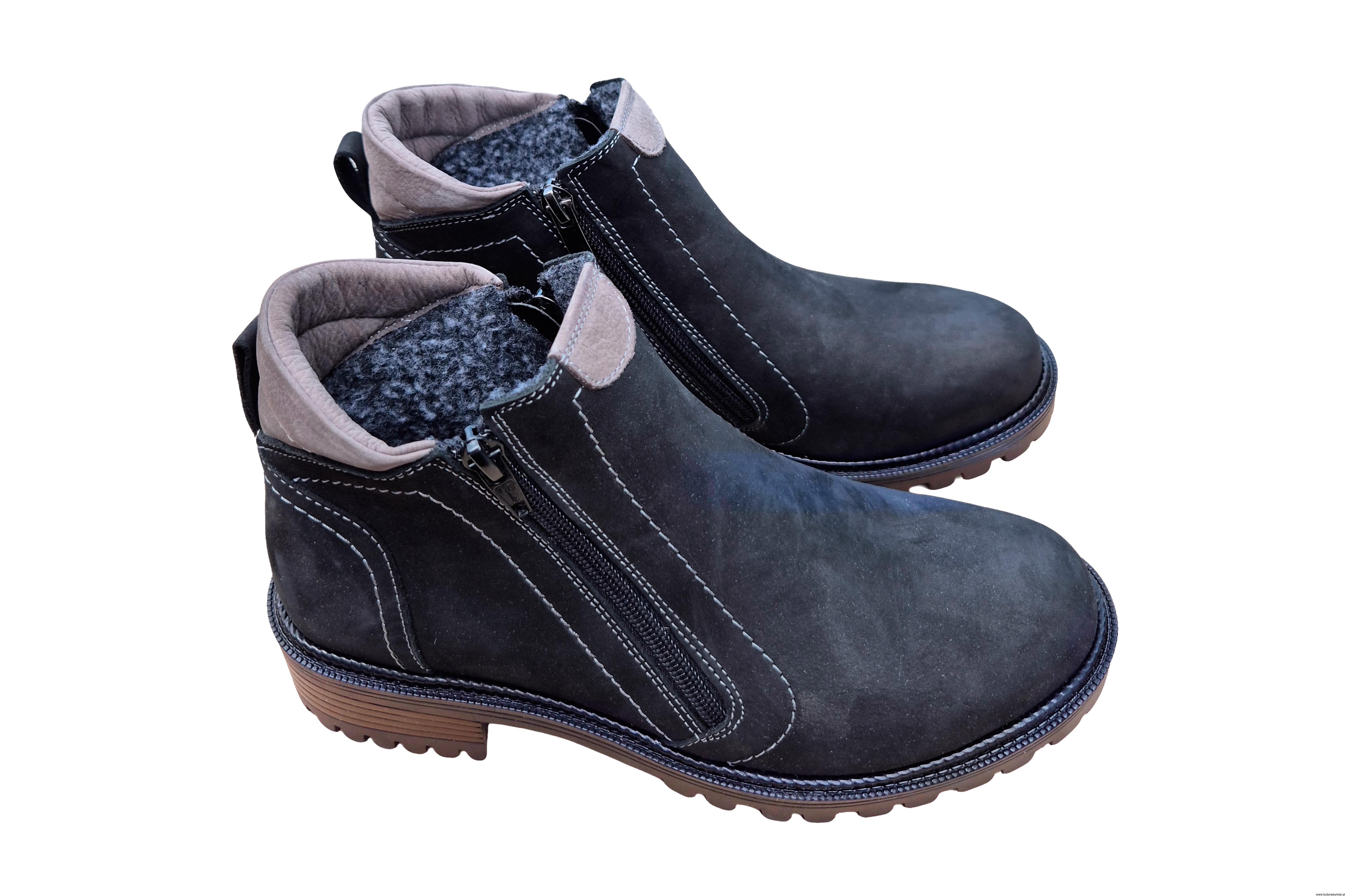 Modne i wygodne czarne botki zapinane na zamek. ze skóry naturalnej ocieplane polarem.