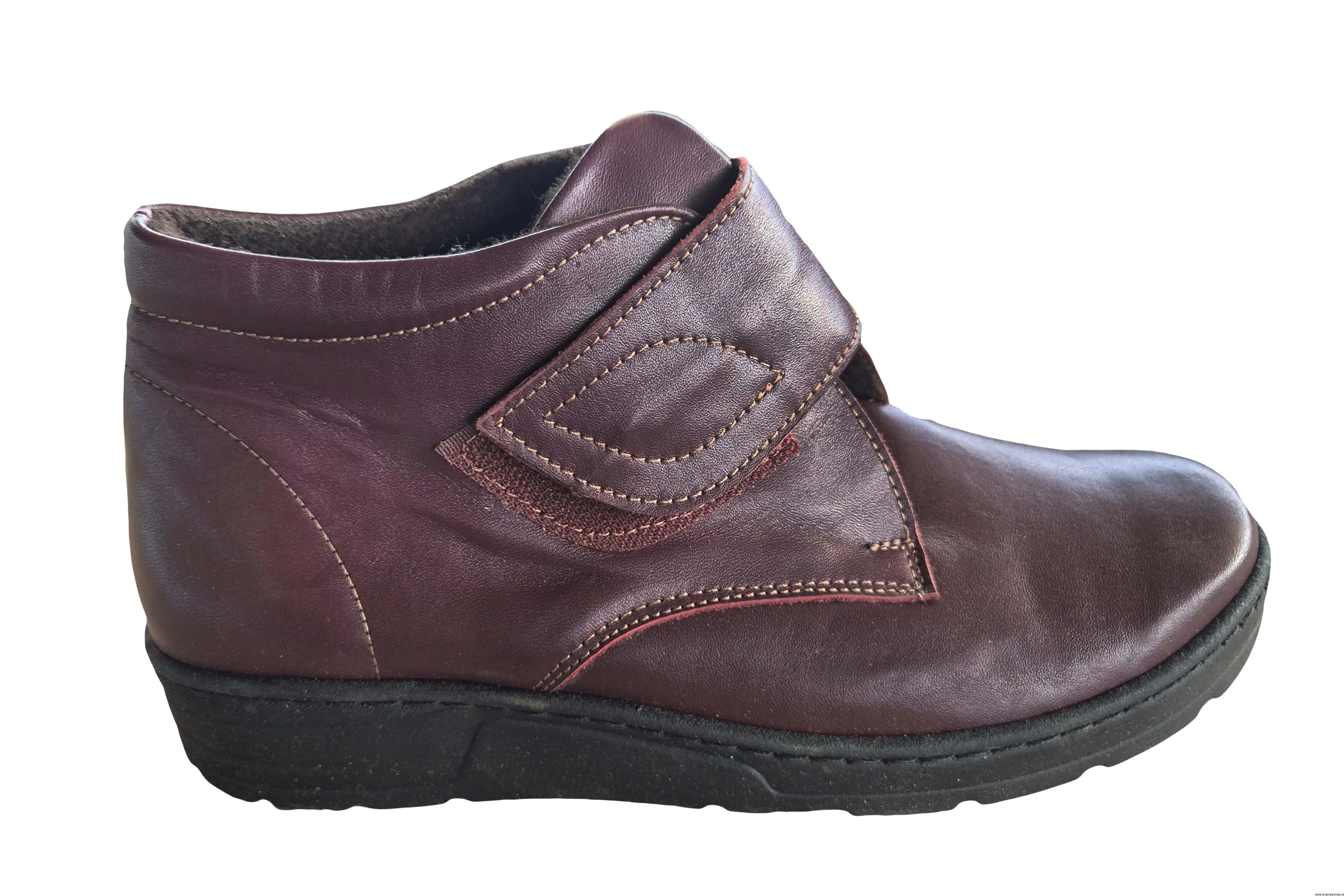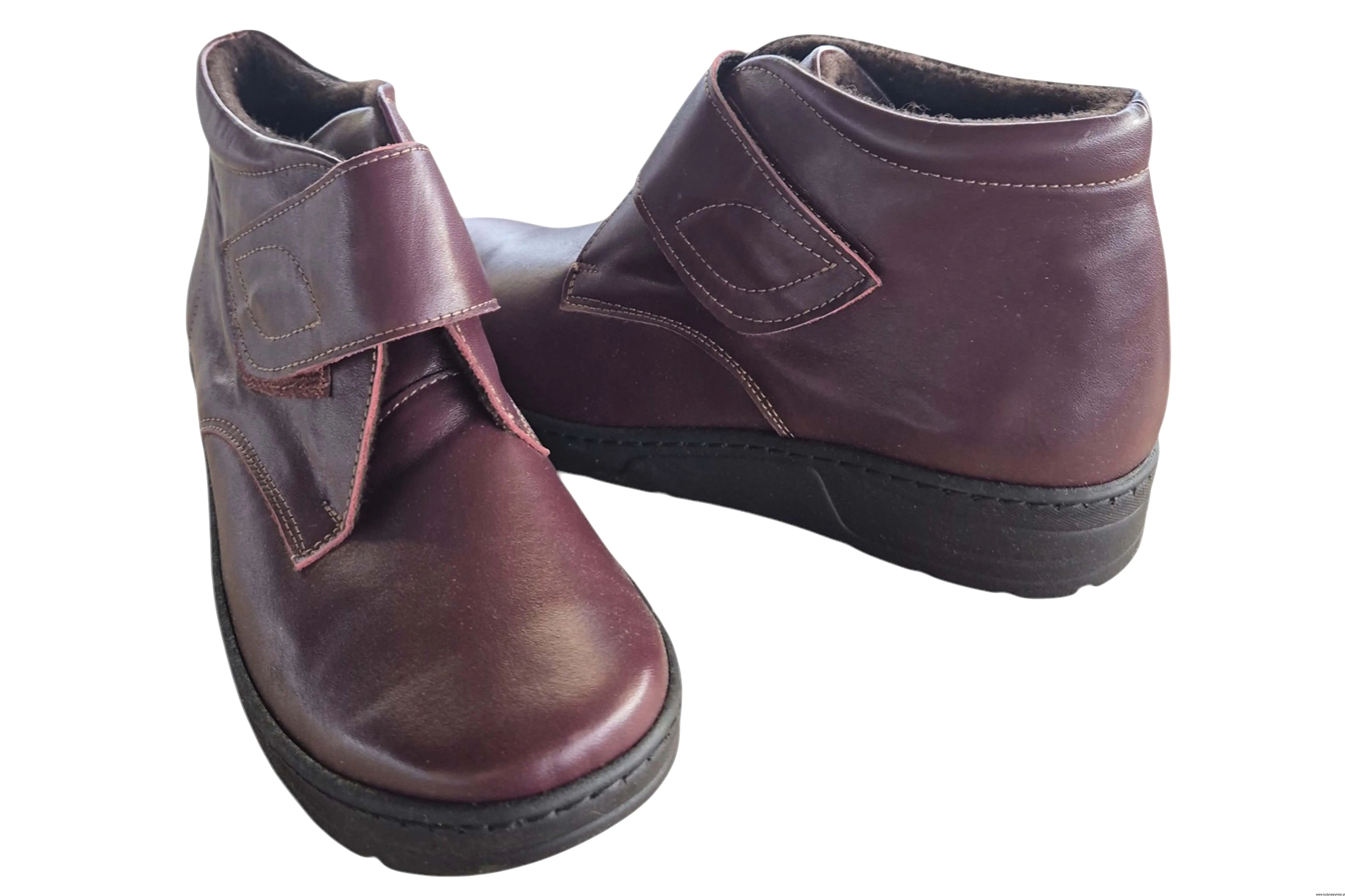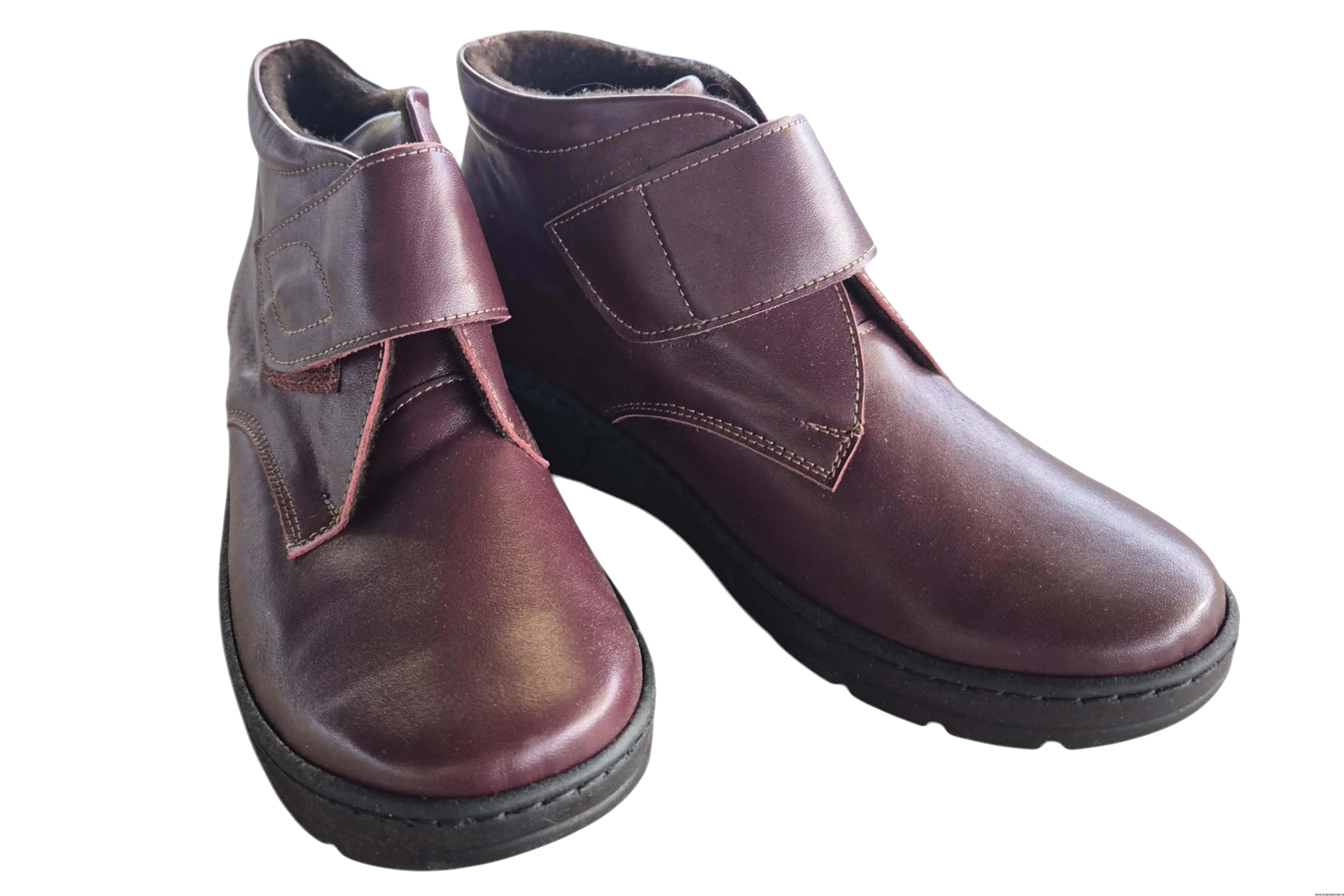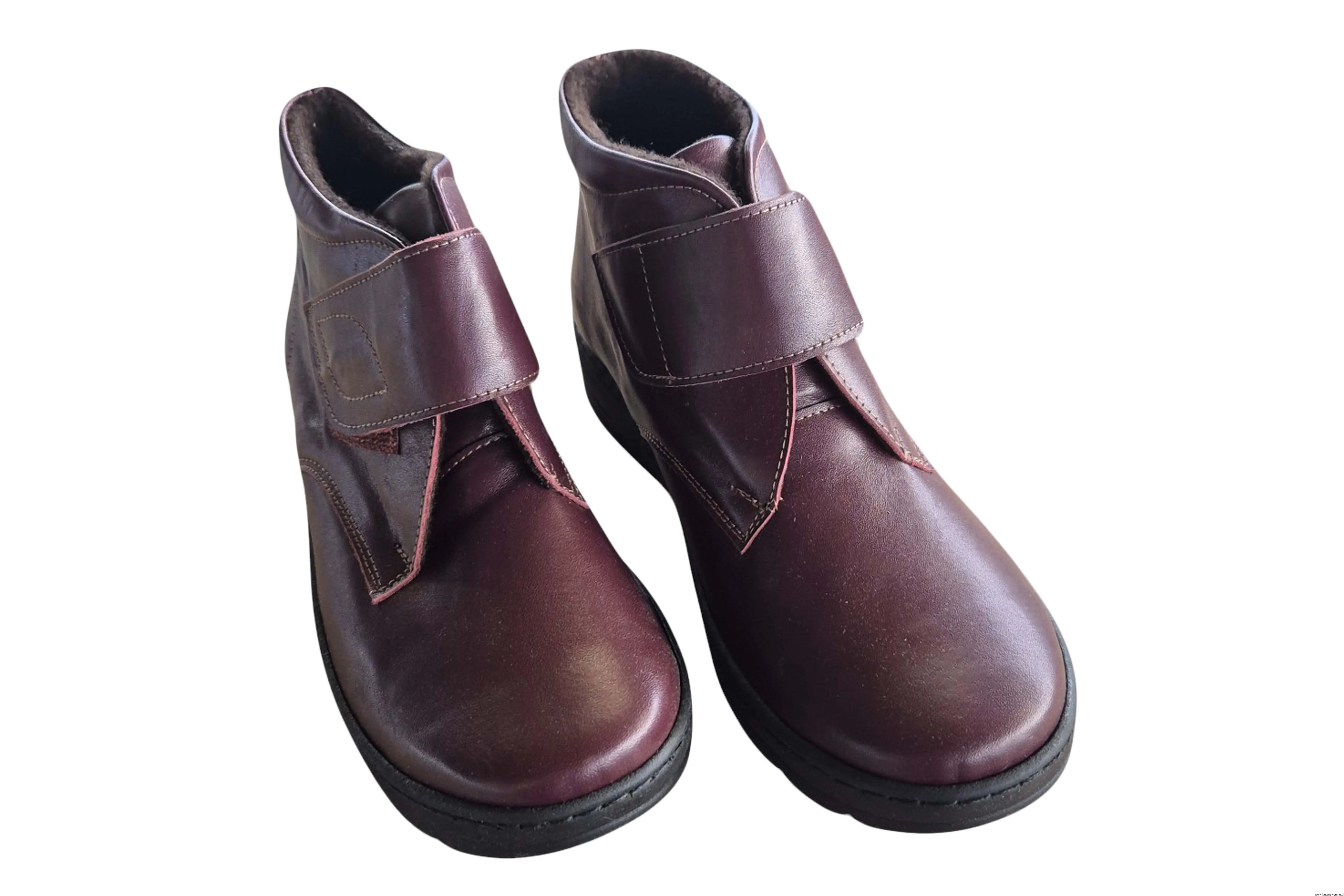 Wygodne klasyczne botki damskie w kolorze burgundowym, ocieplane