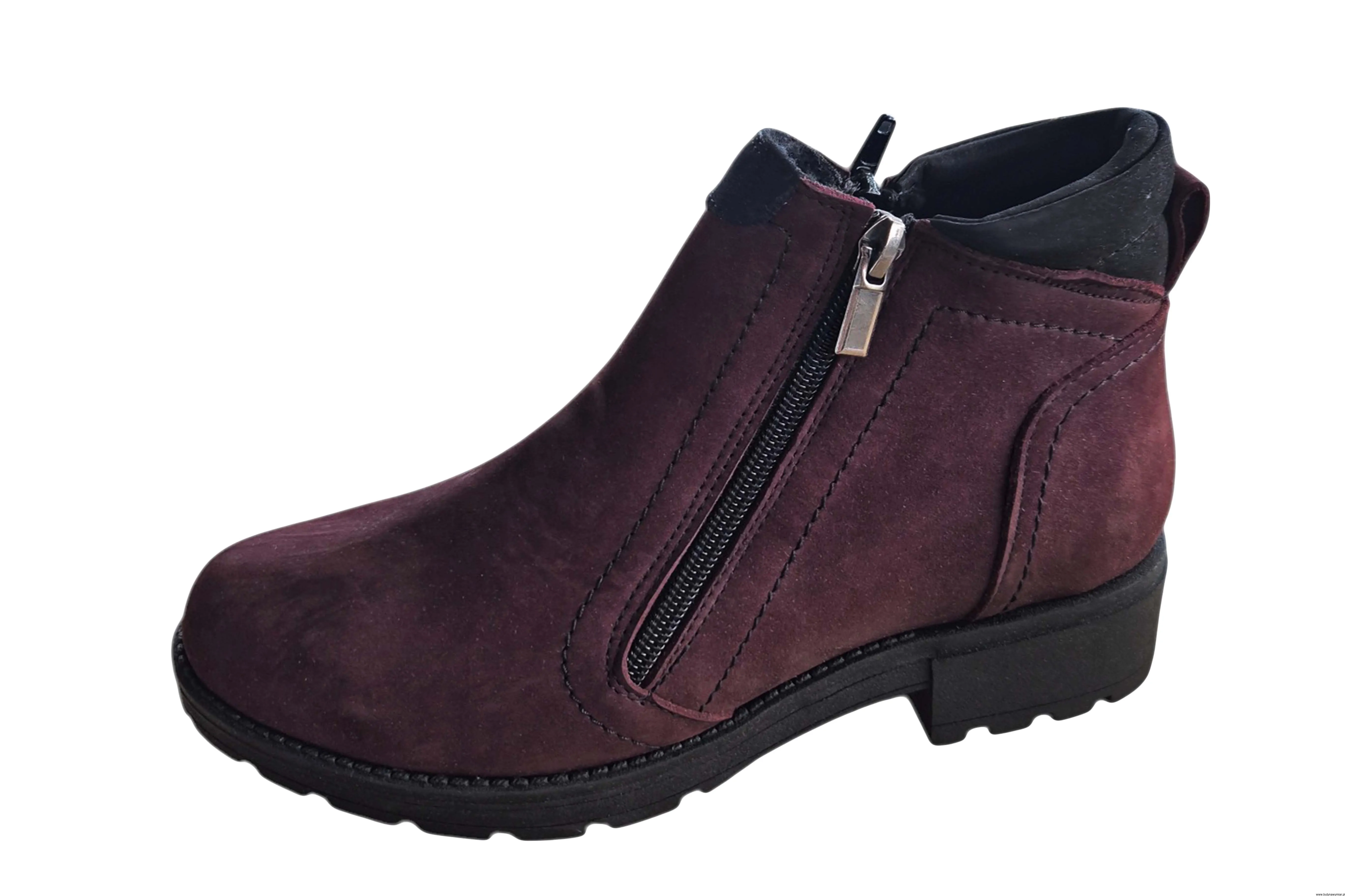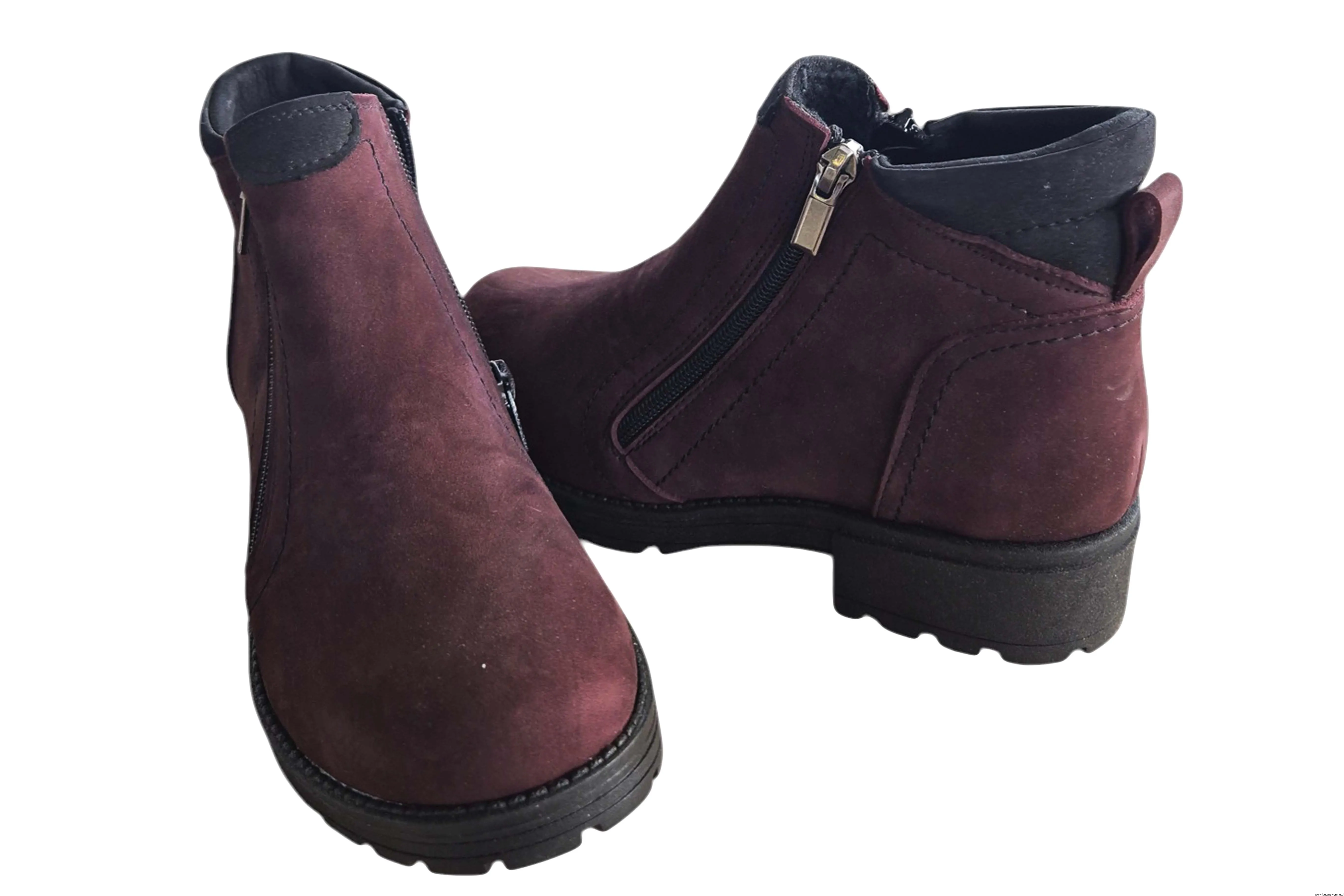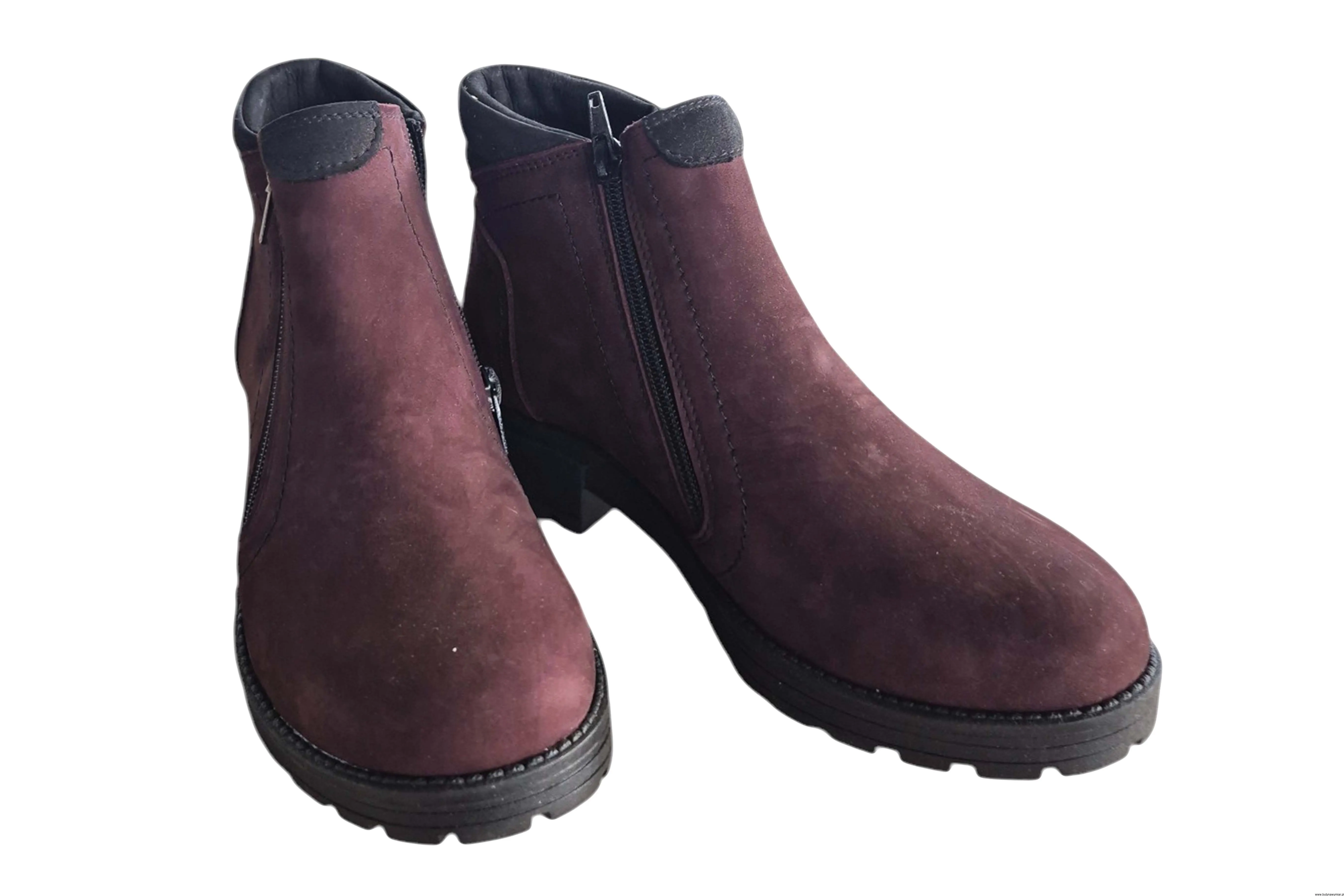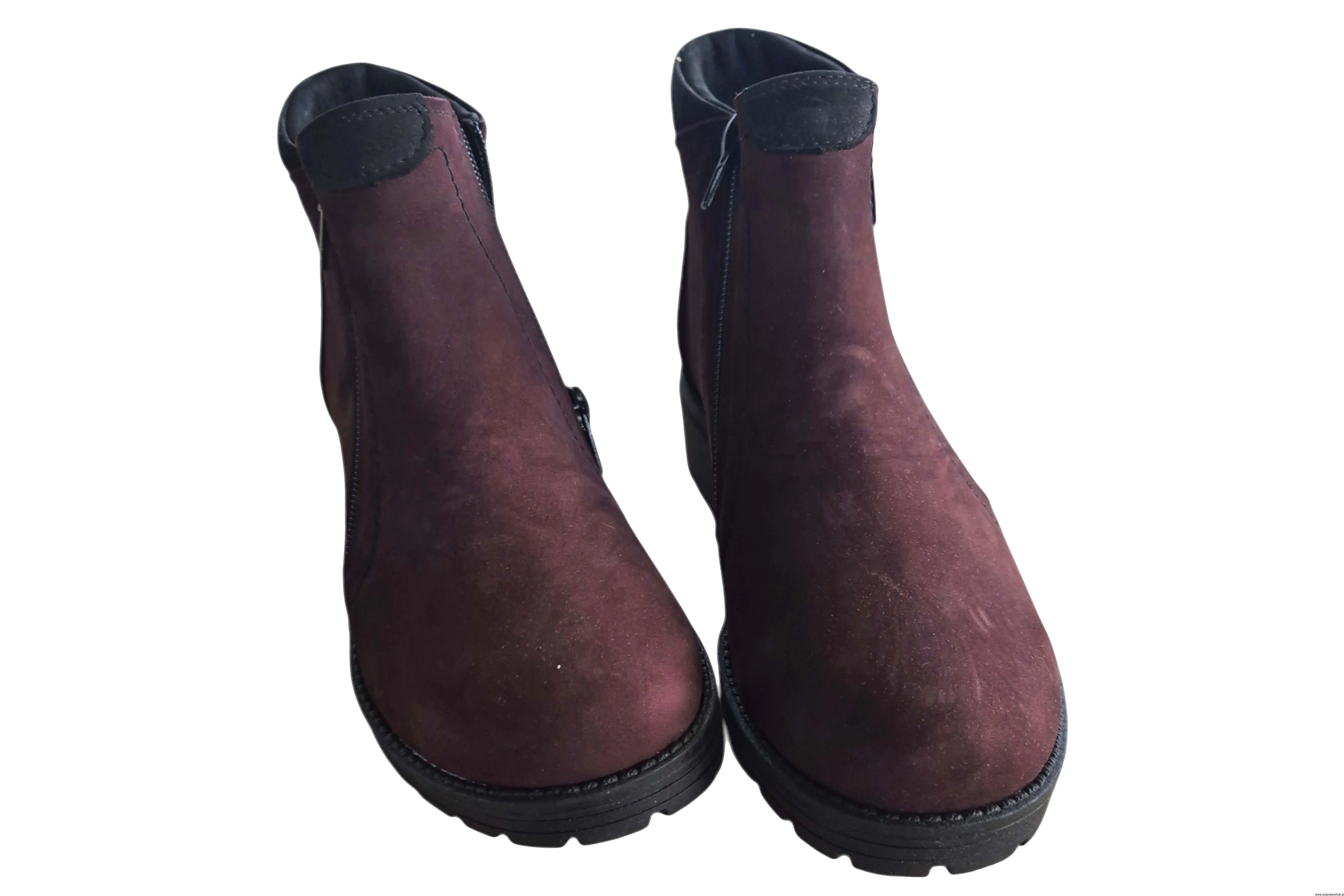 Wygodne i eleganckie botki damskie w kolorze burgundowym, ocieplane
