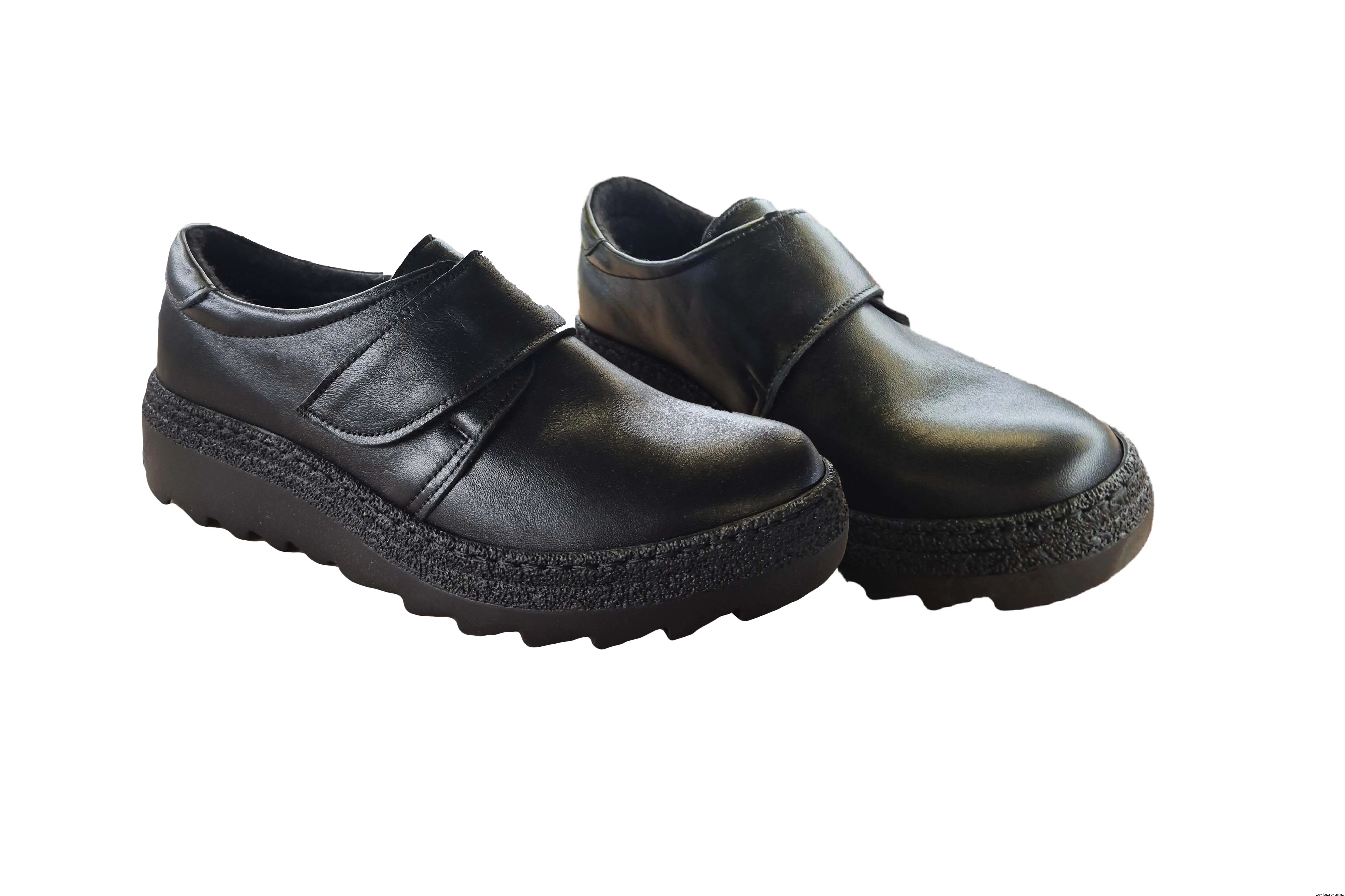 Zapinane Na rzepy oraz na koturnie wykonane ze skóry naturalnej licowej.