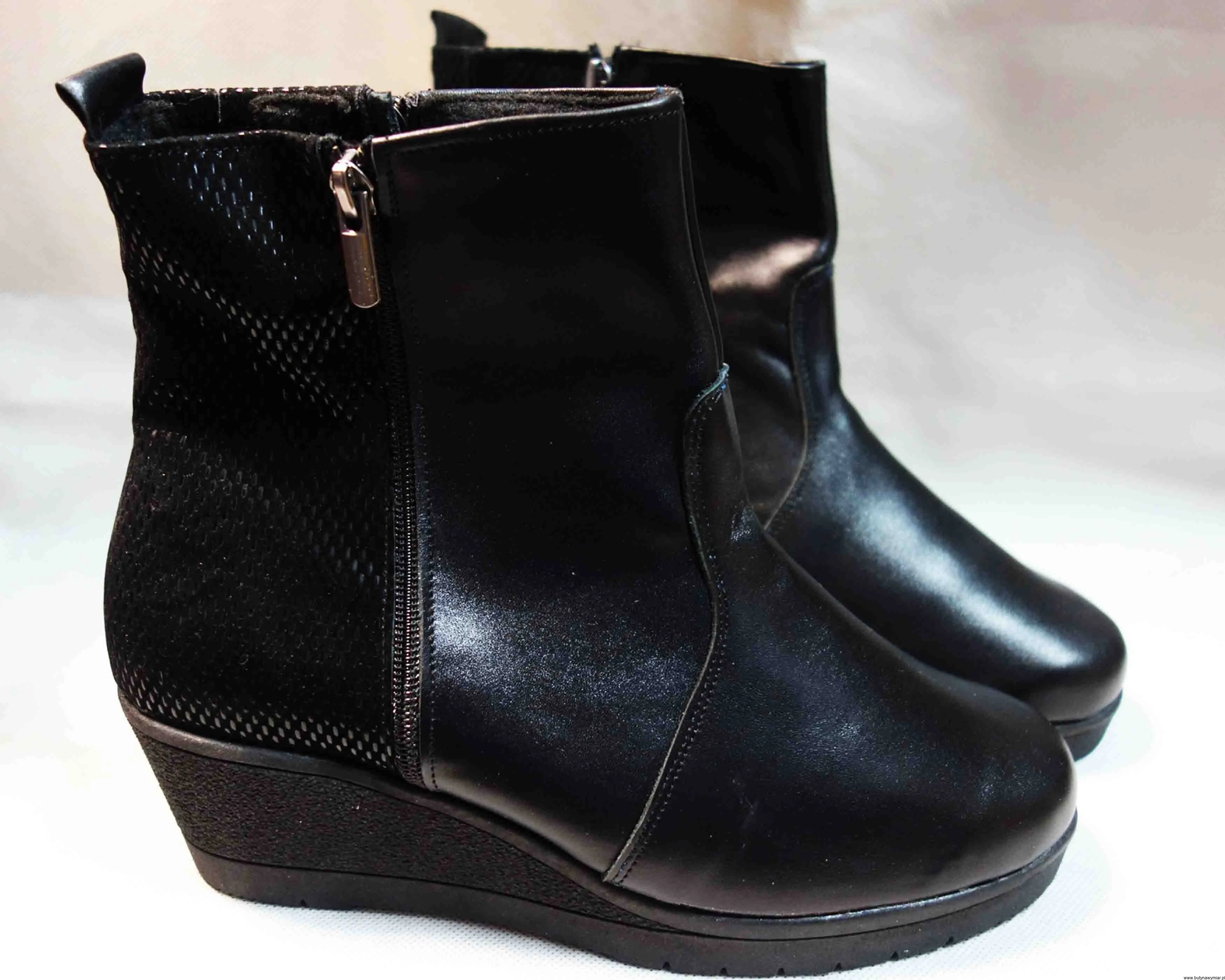 Modne i wygodne botki w kolorze czarnym ze skóry naturalnej licowej.