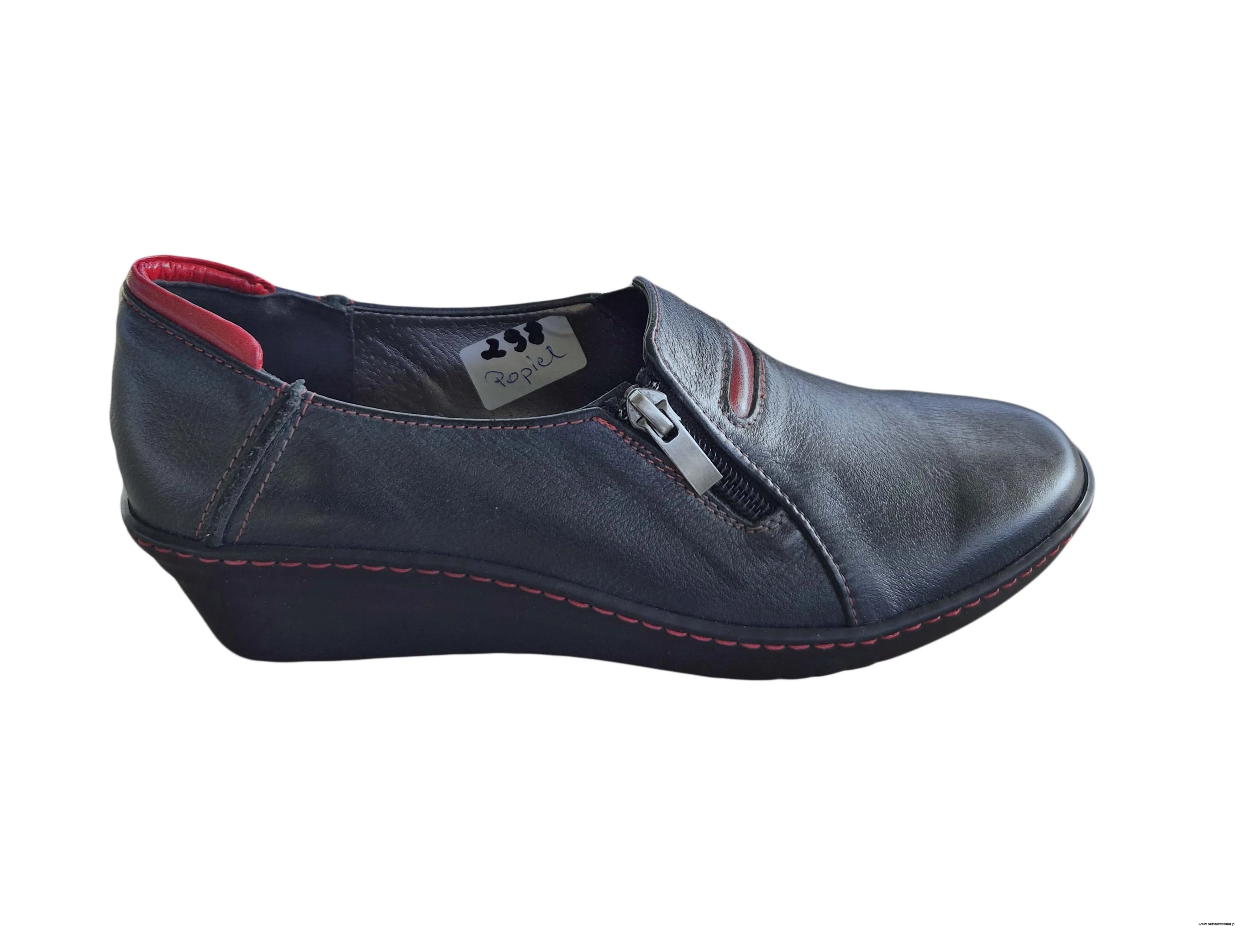 Zapinane na zamek i na koturnie wykonane ze skóry naturalnej.