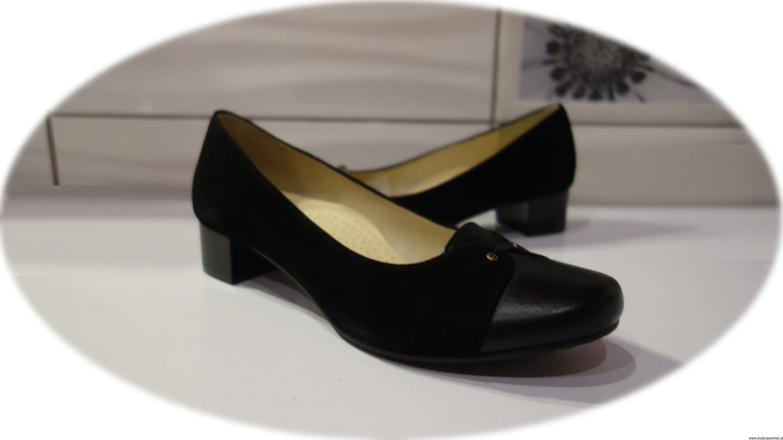 Modne i wygodne czółenka w kolorze czarnym wsuwane wykonane ze skóry naturalnej.