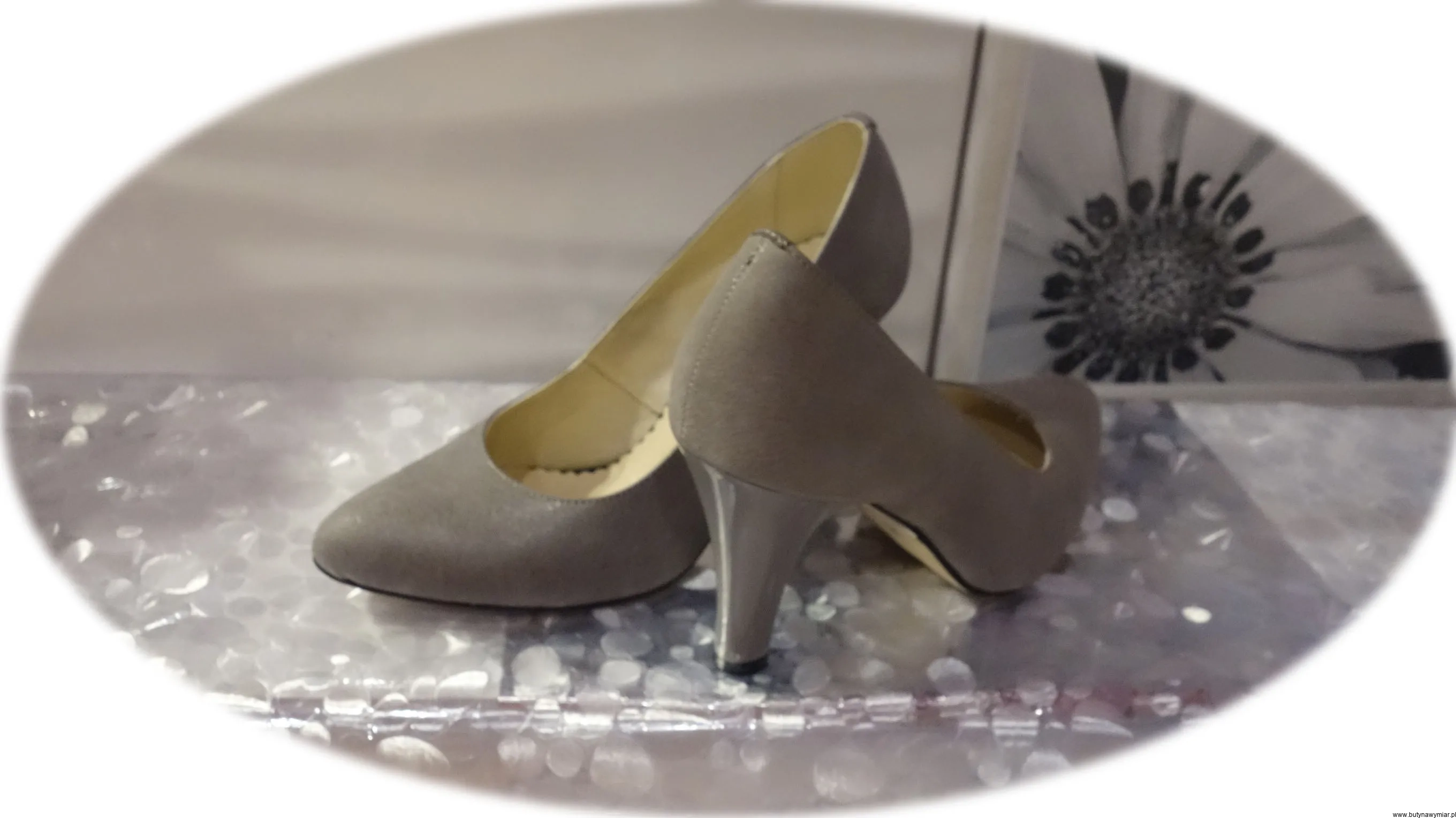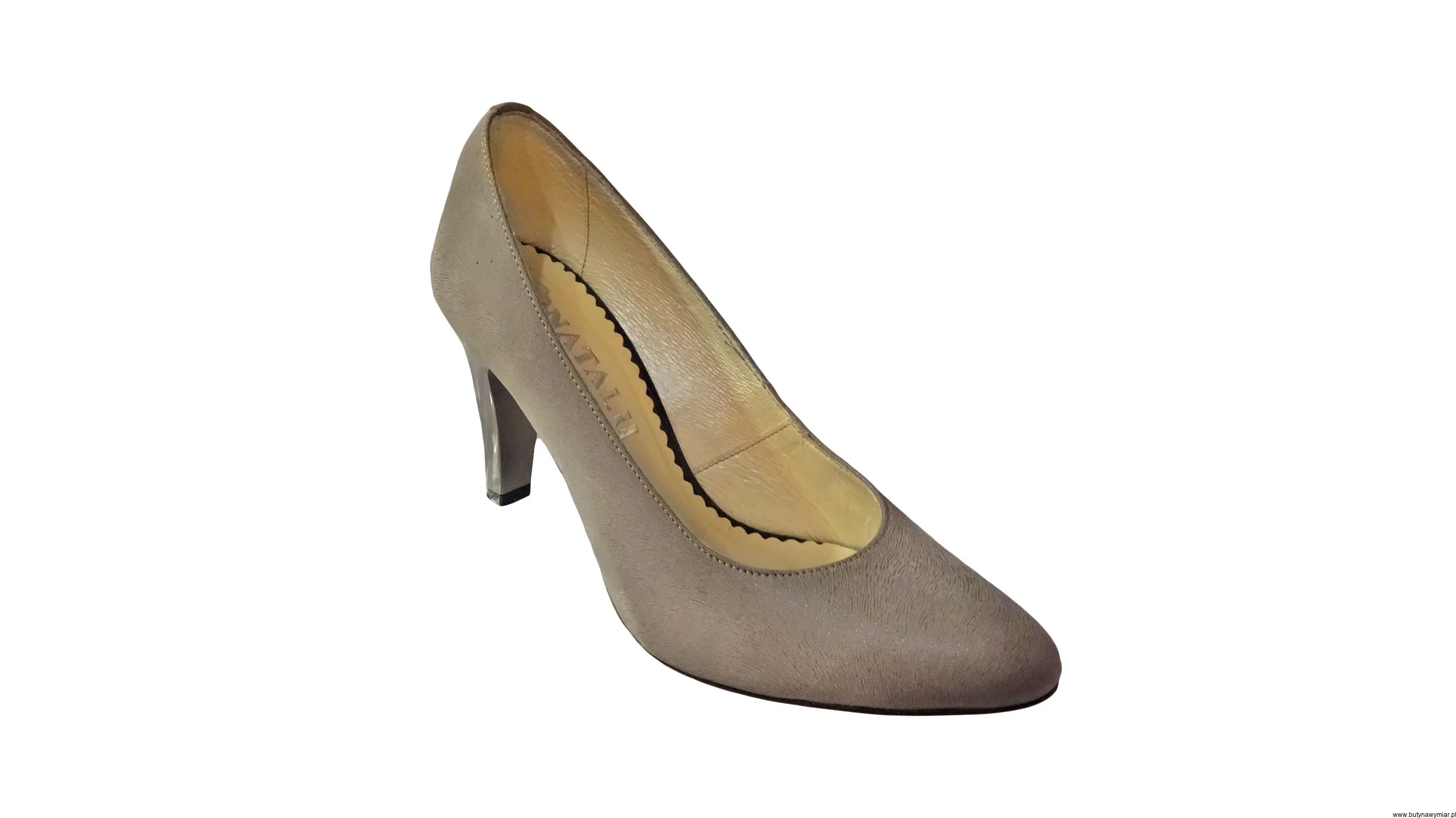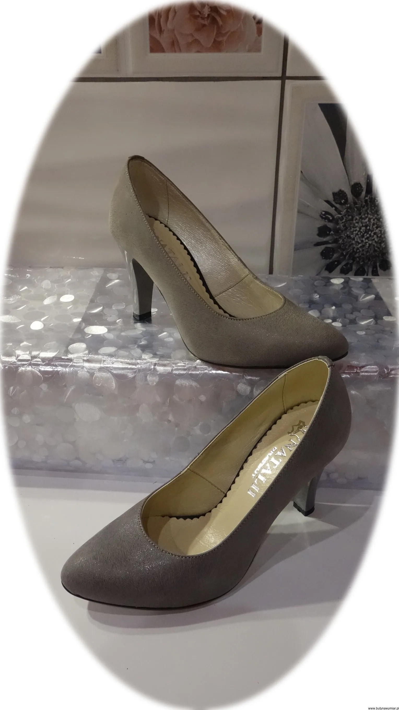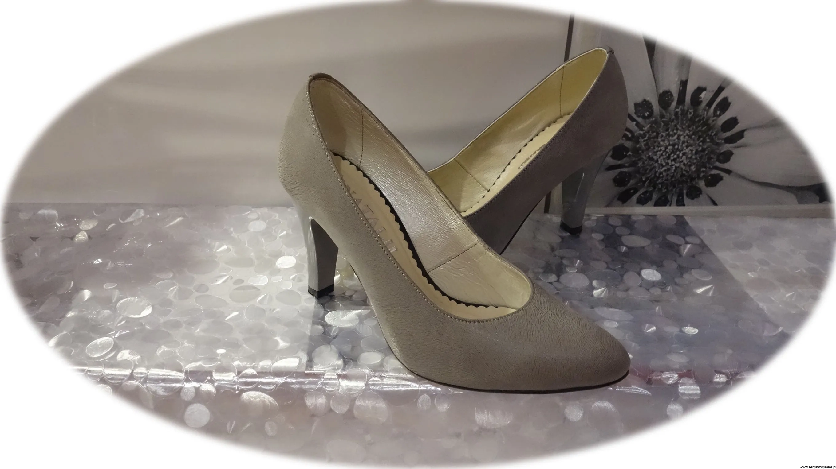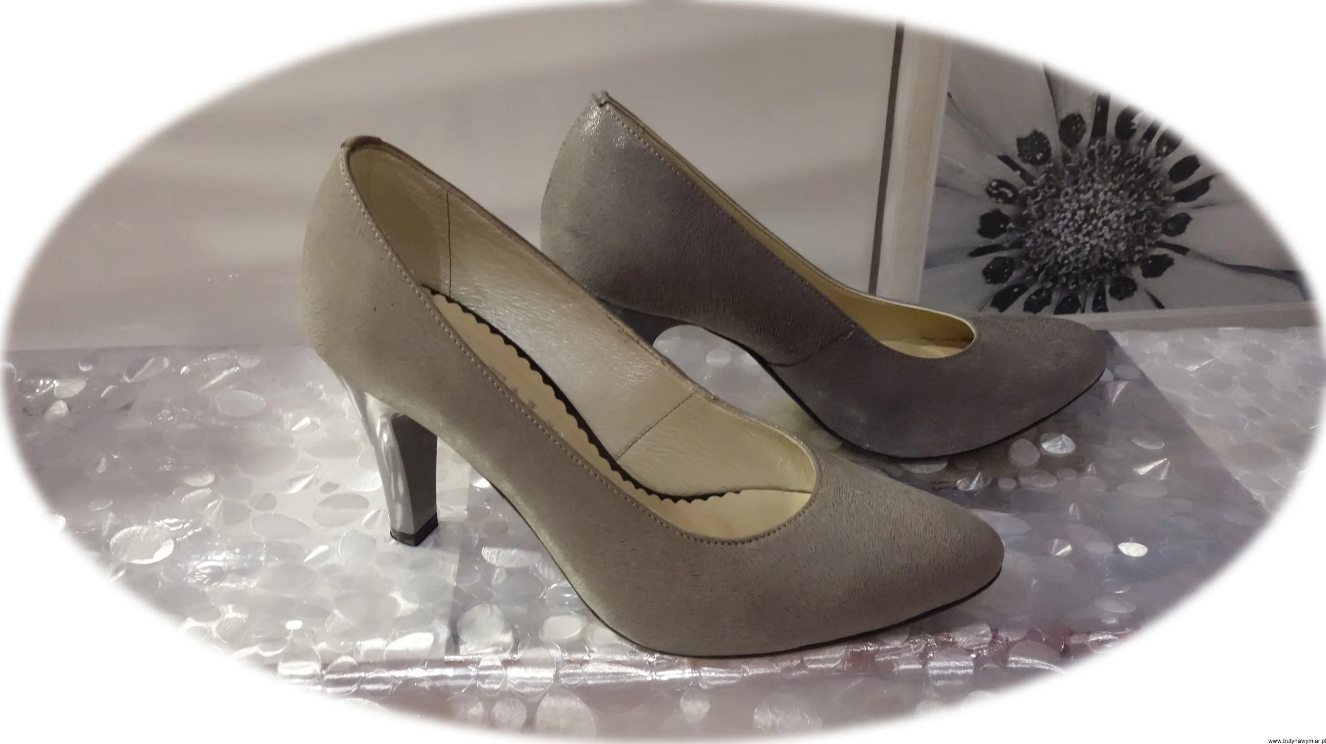 Modne i wygodne czółenka w kolorze popielatym wsuwane wykonane ze skóry naturalnej.