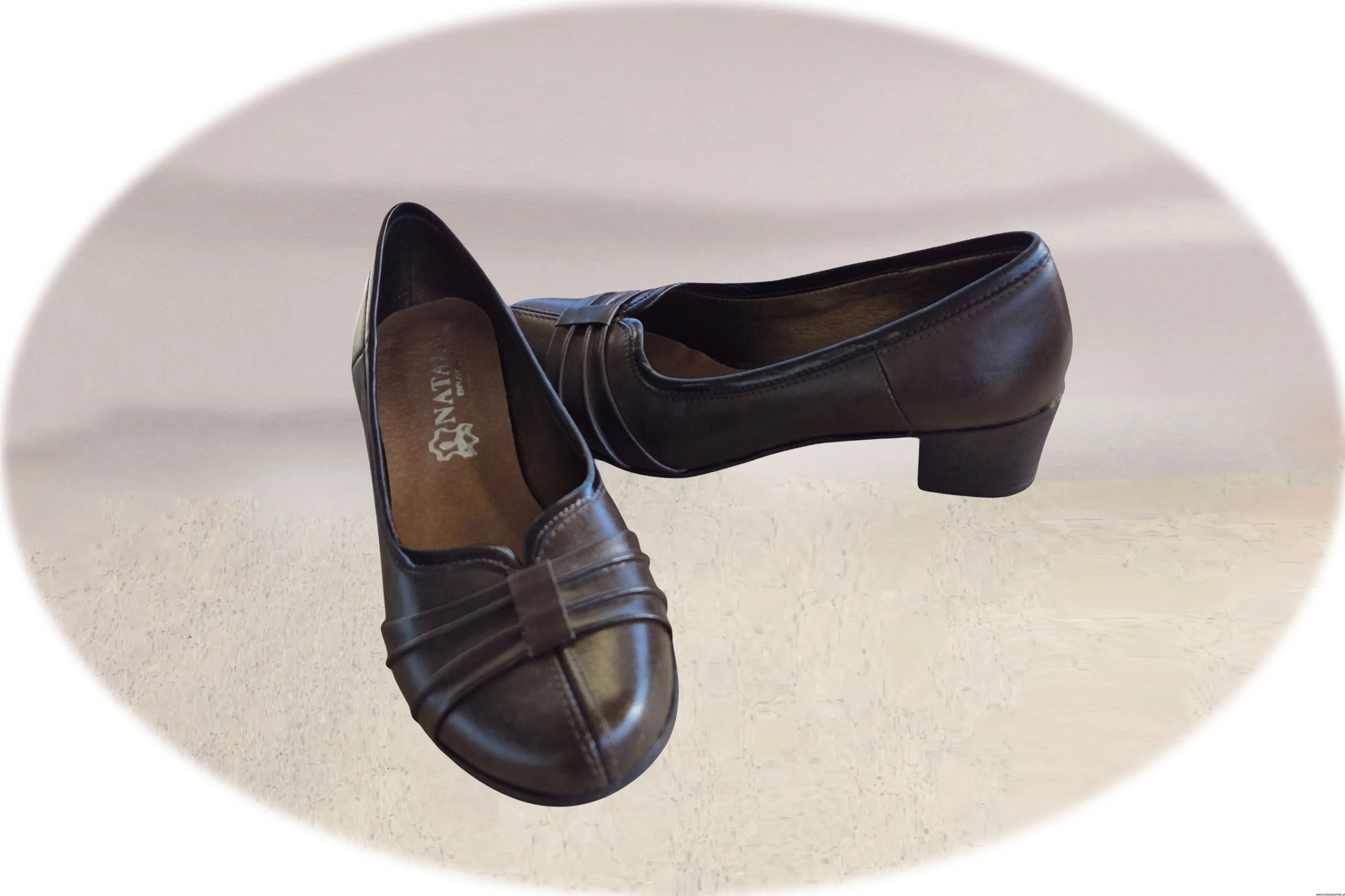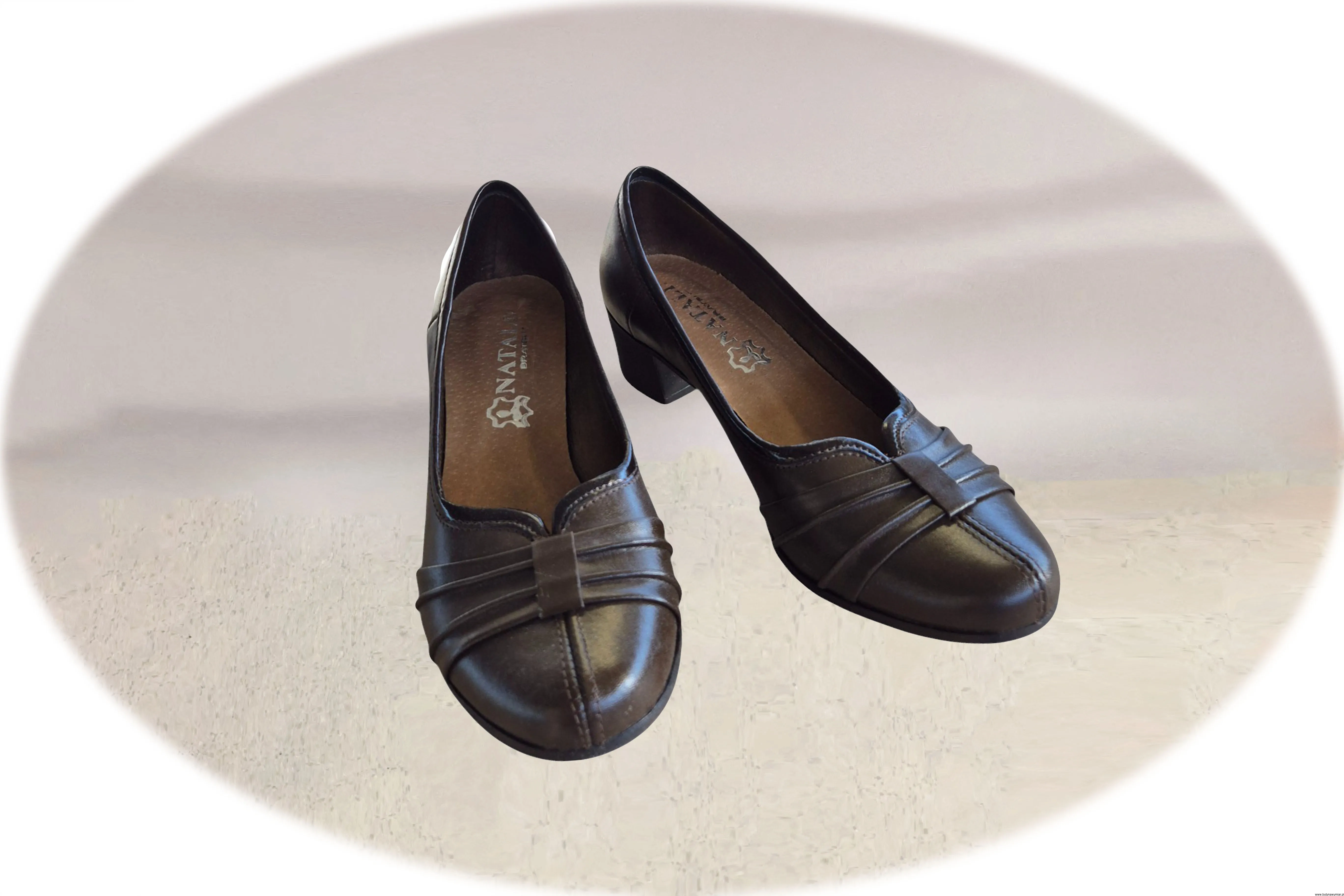 Wyjątkowe i eleganckie czółenka damskie w kolorze brązowym, wsuwane wykonane ze skóry naturalnej.