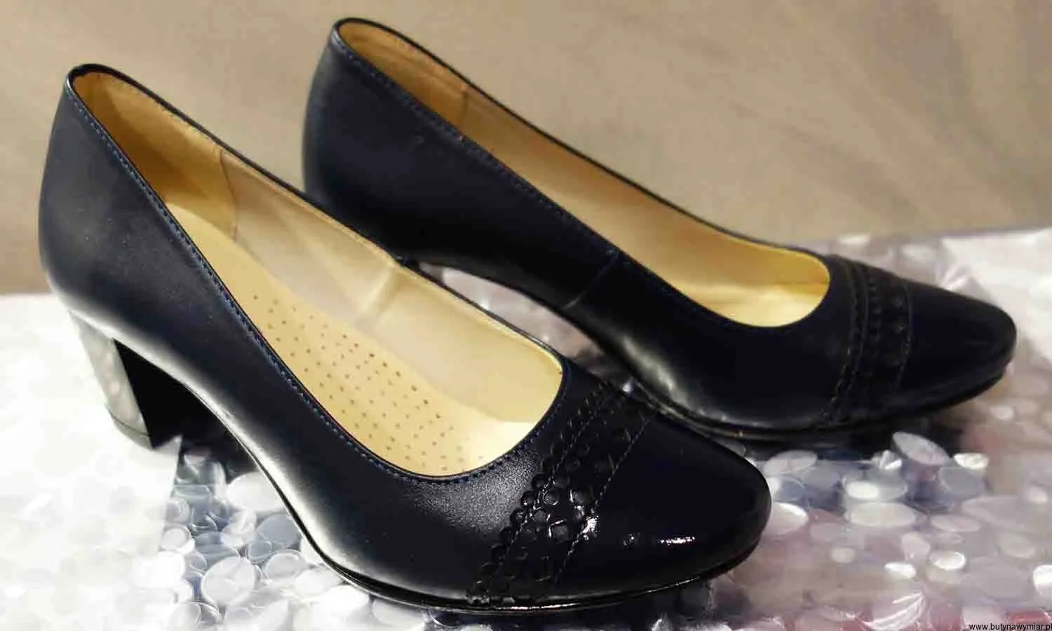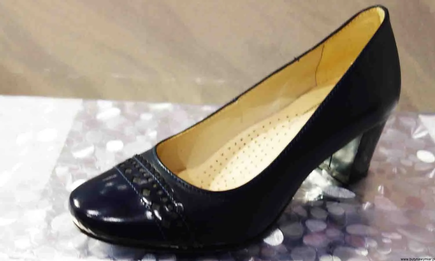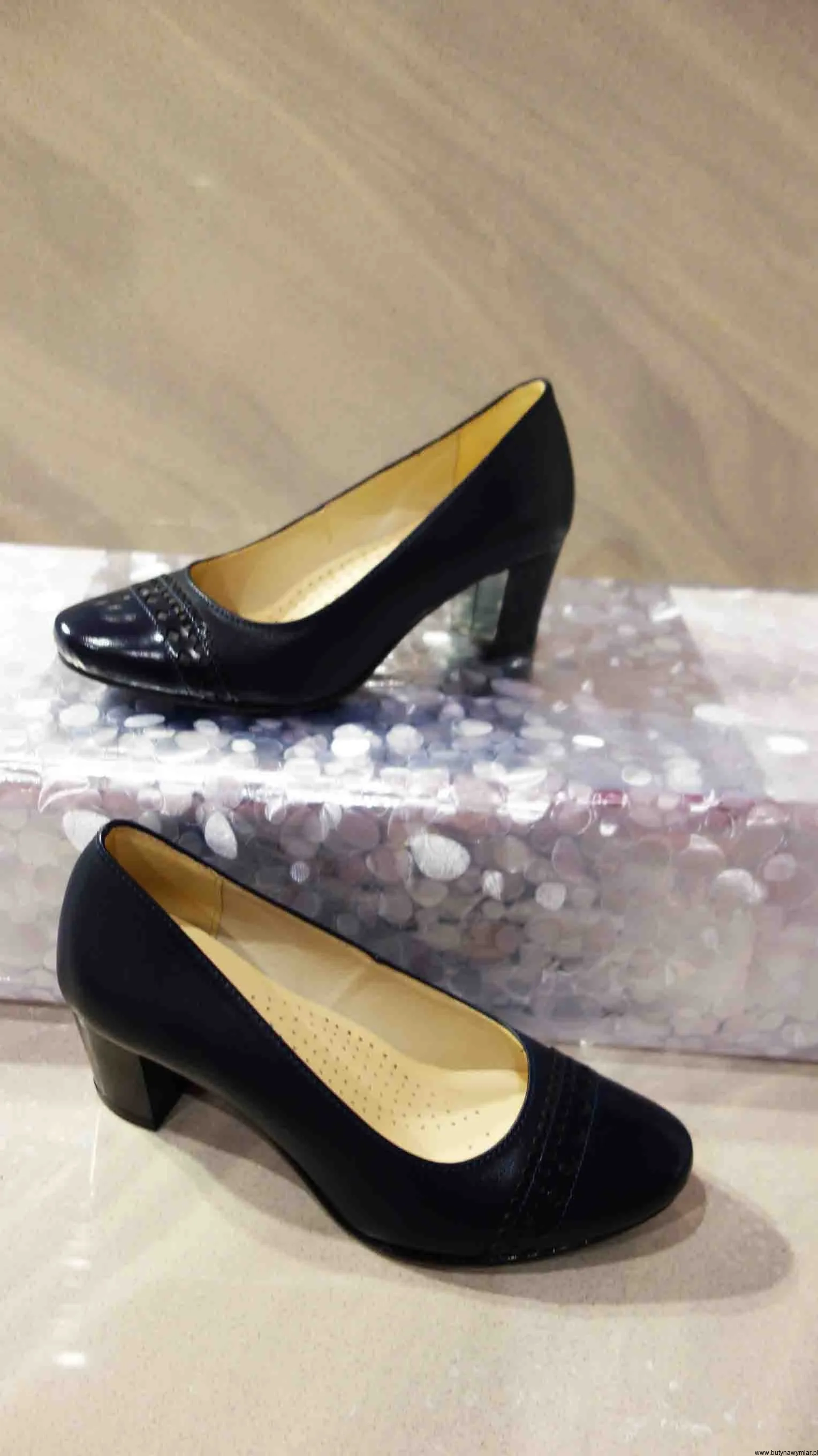 Modne i wygodne czółenka w kolorze granatu wykonane ze skóry naturalnej .