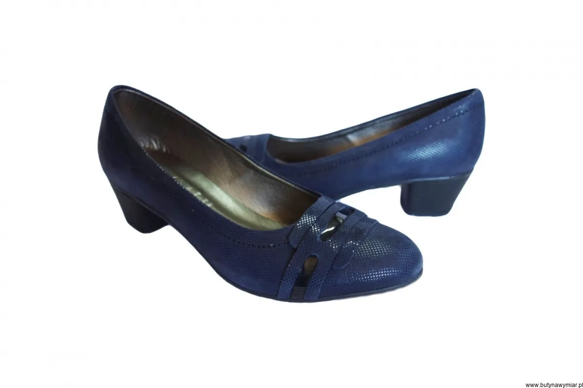 Modne i wygodne czółenko skórzane w kolorze granatowym.