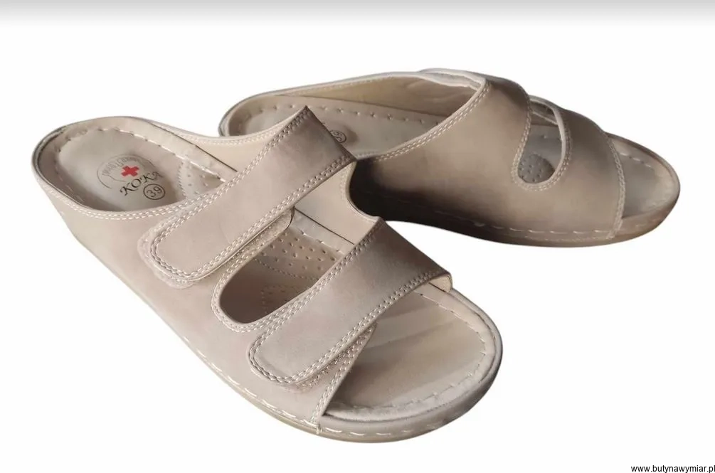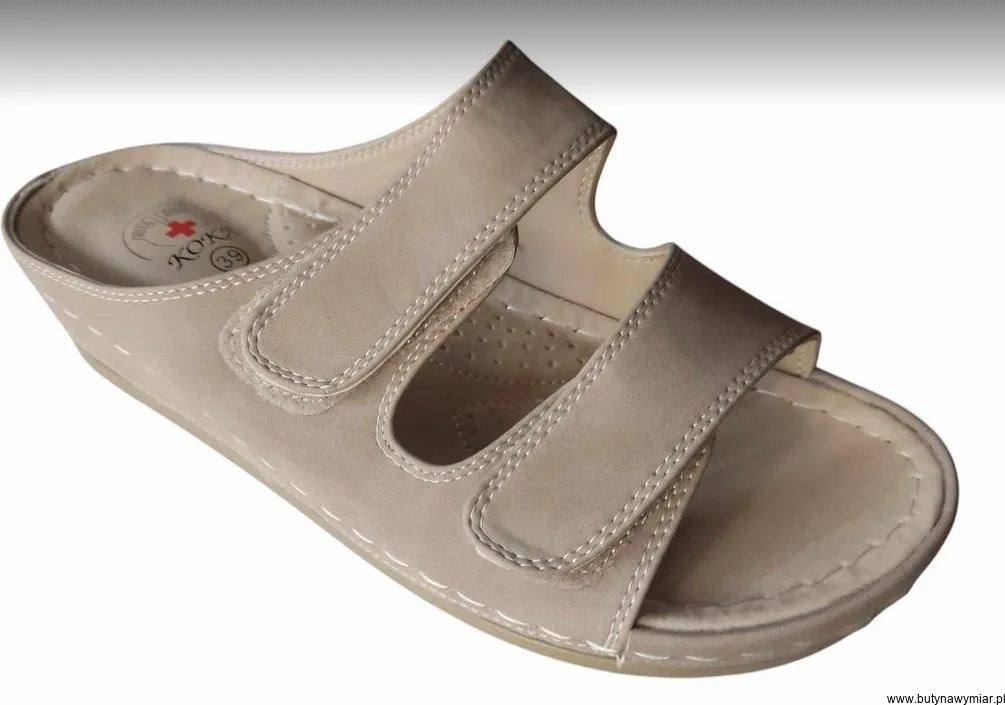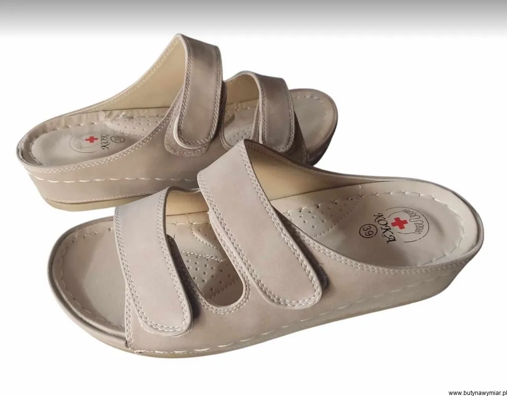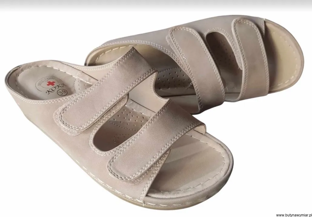 Strona główna » Sandały damskie » klapki bez z regulacją na szeroką stopę koturn rzep 39