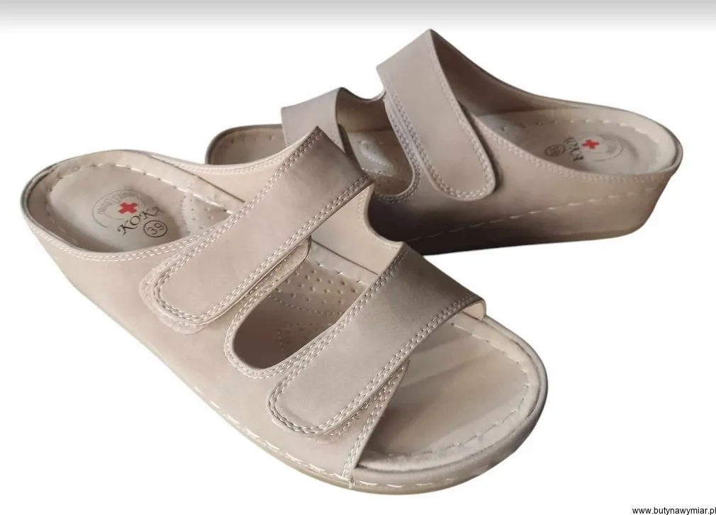 klapki bez z regulacją na szeroką stopę koturn rzep 39