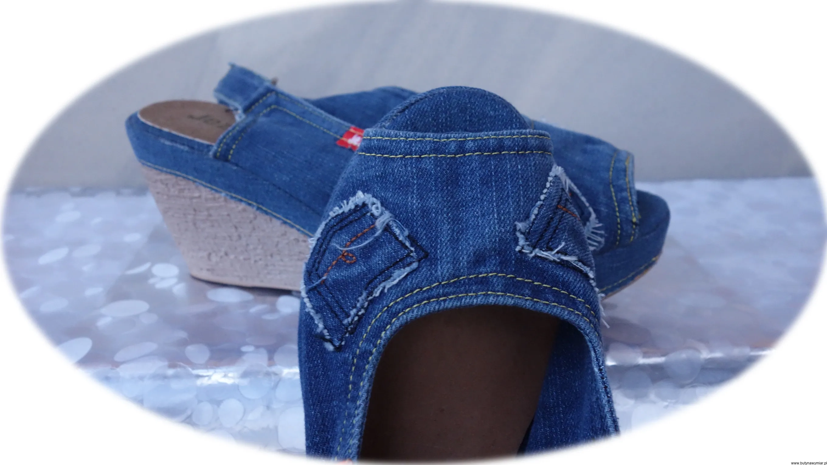 Modne i wygodne letnie sandały w kolorze niebieskiego jeansu zapinane na rzepy wykonane z dbałością o szczegóły.