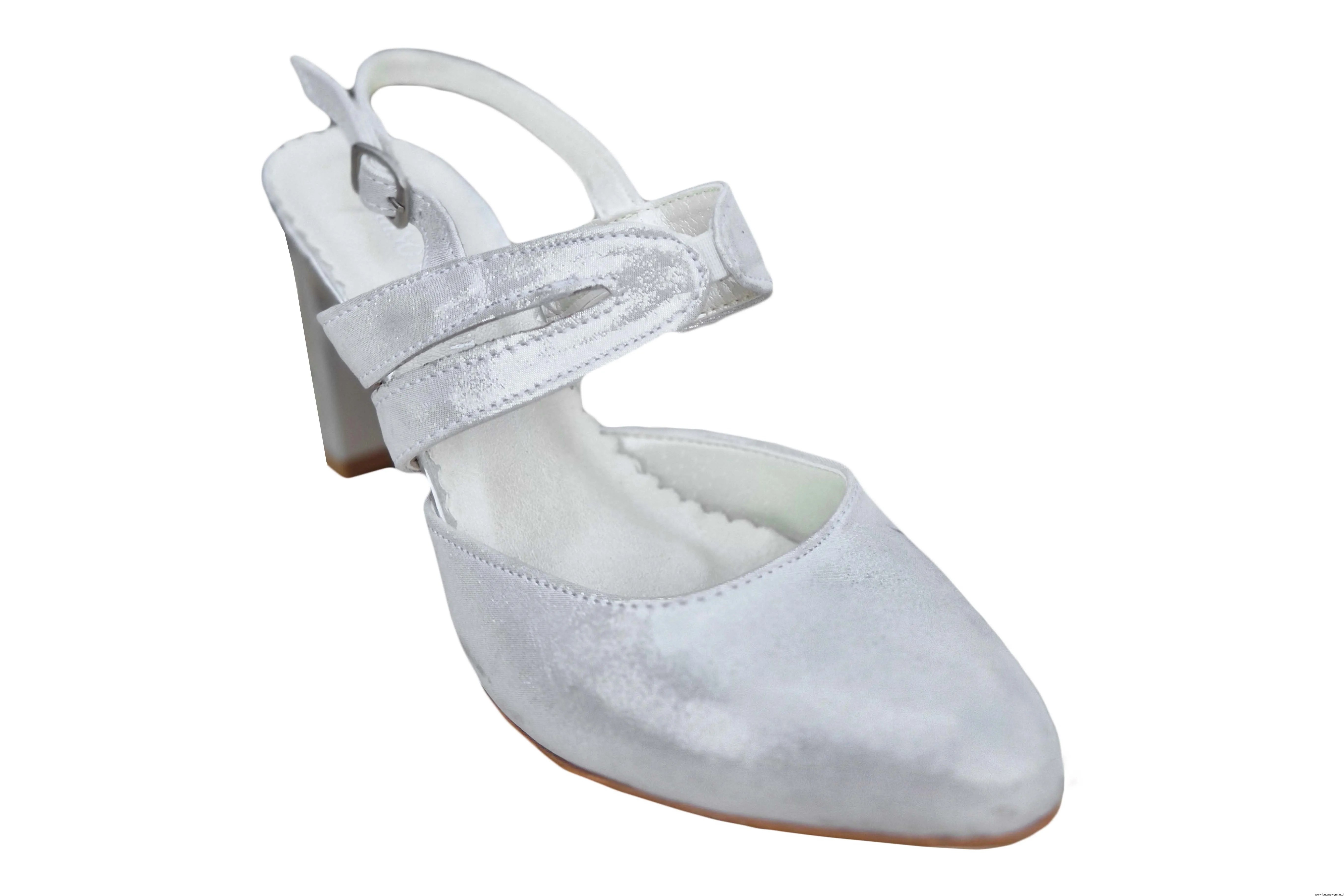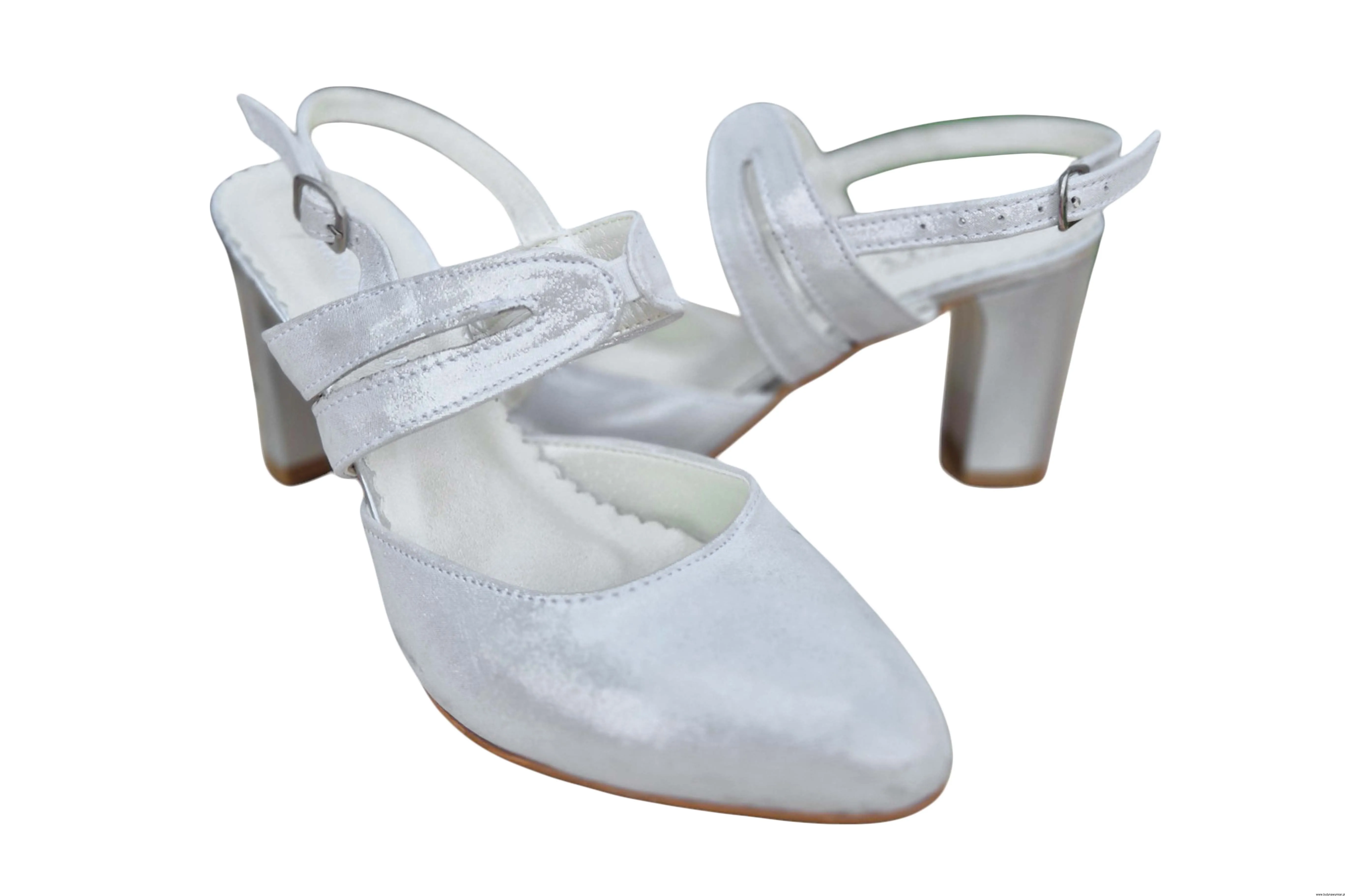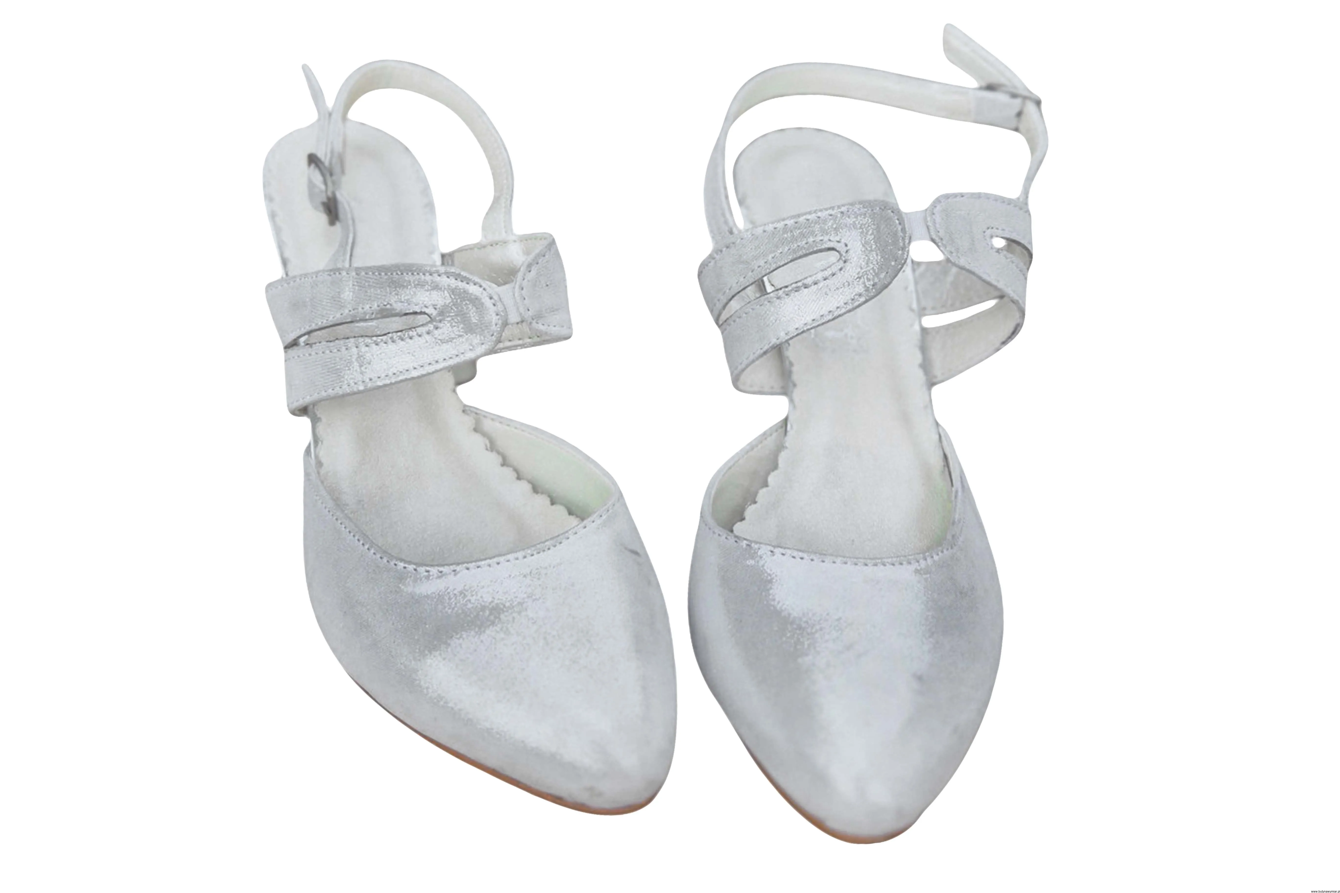 Modne i eleganckie sandały damskie w kolorze srebrnym zapinane na sprzączkę wykonane ze skóry naturalnej.