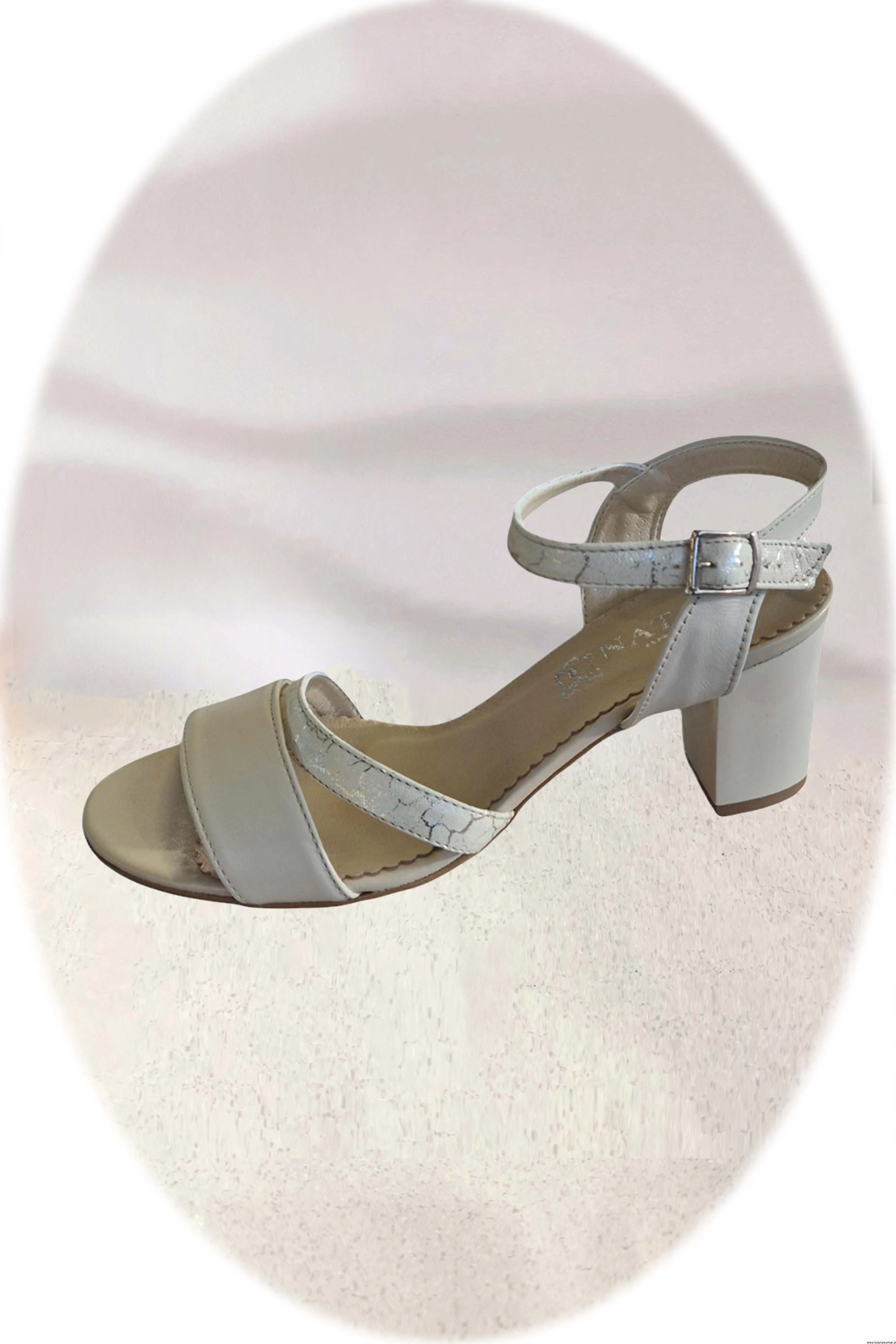 Modne i wygodne sandały damskie w kolorze ecru / beżowym zapinane na sprzączkę wykonane ze skóry naturalnej.