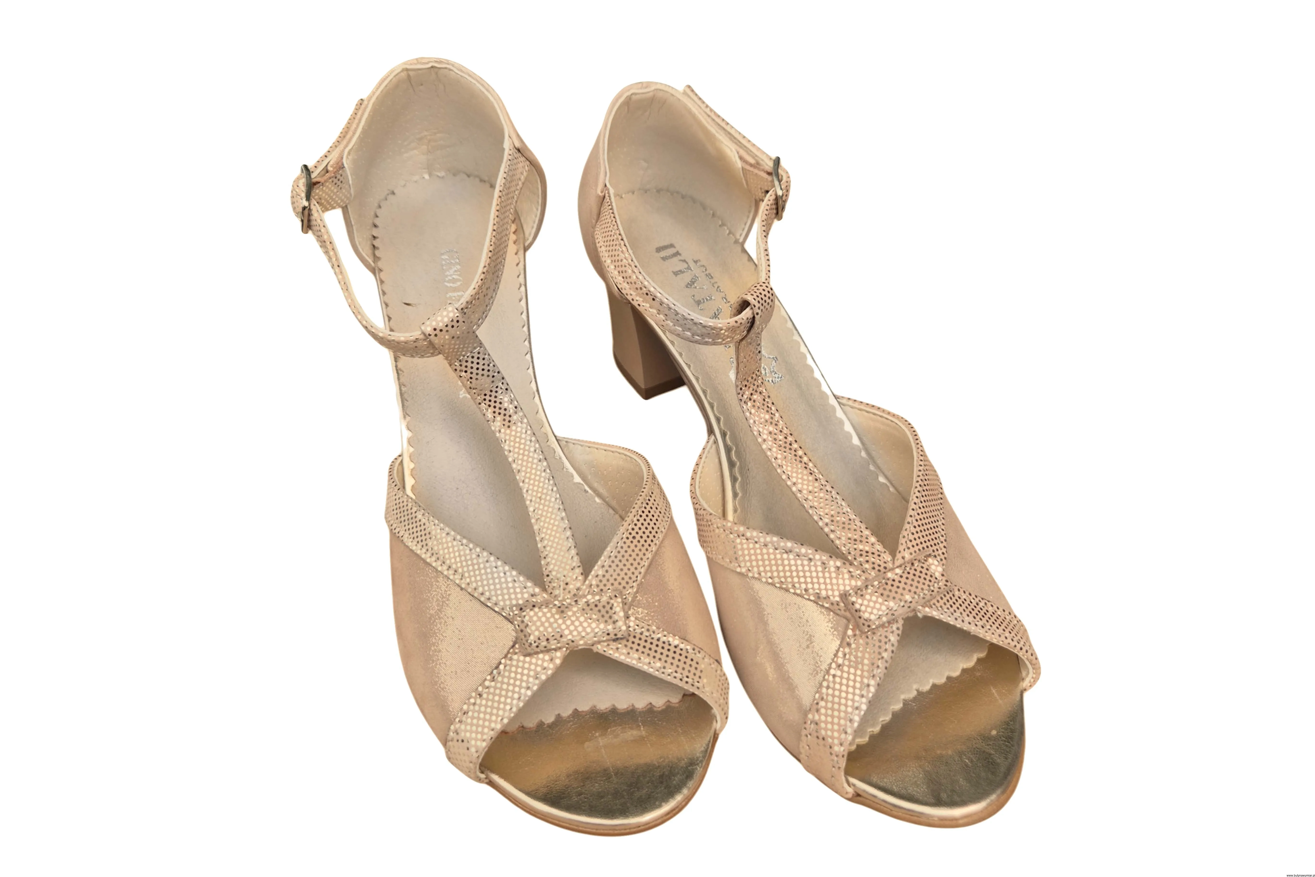 Modne i eleganckie wyjątkowe sandały damskie w kolorze Beżowym zapinane na sprzączkę wykonane ze skóry naturalnej.