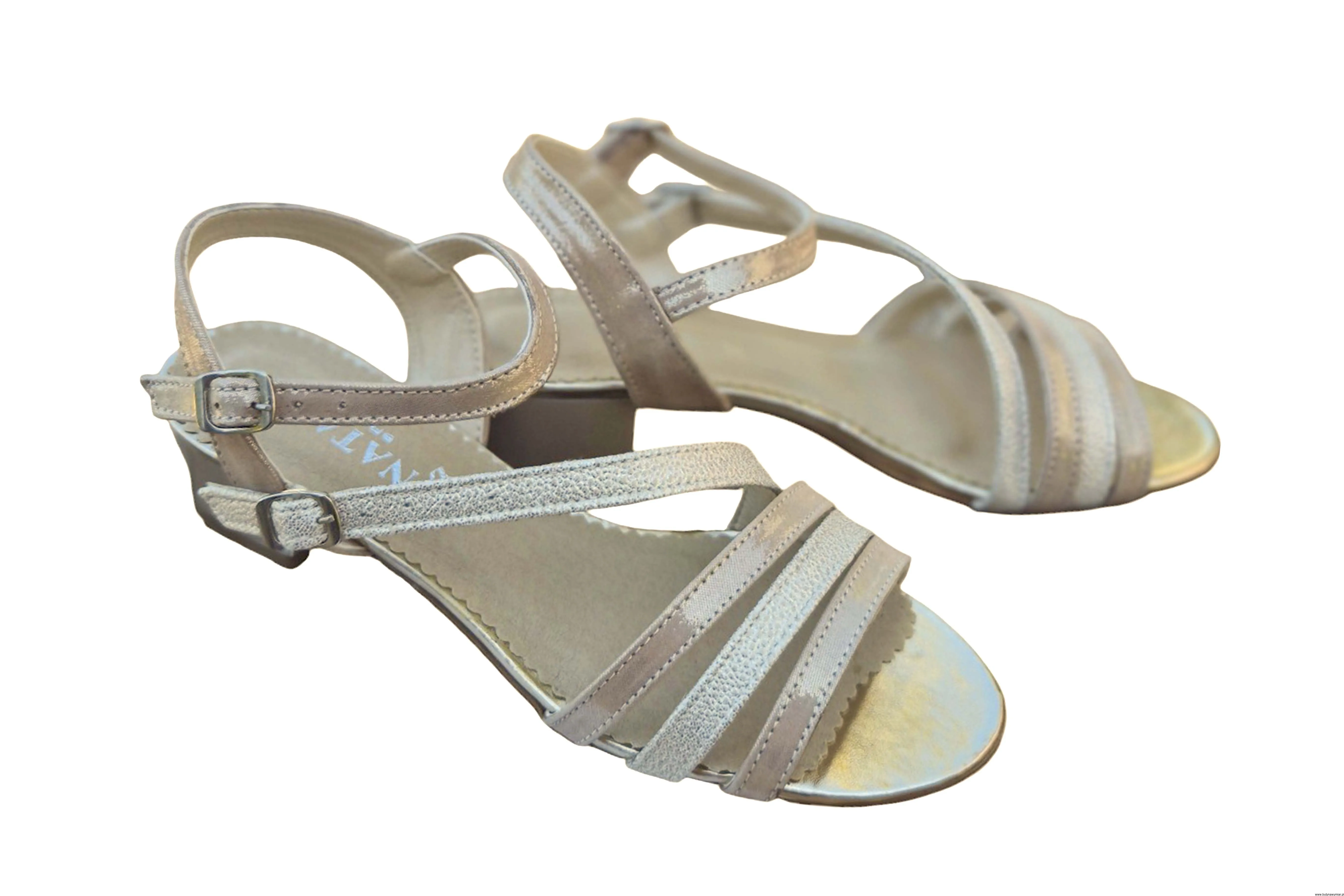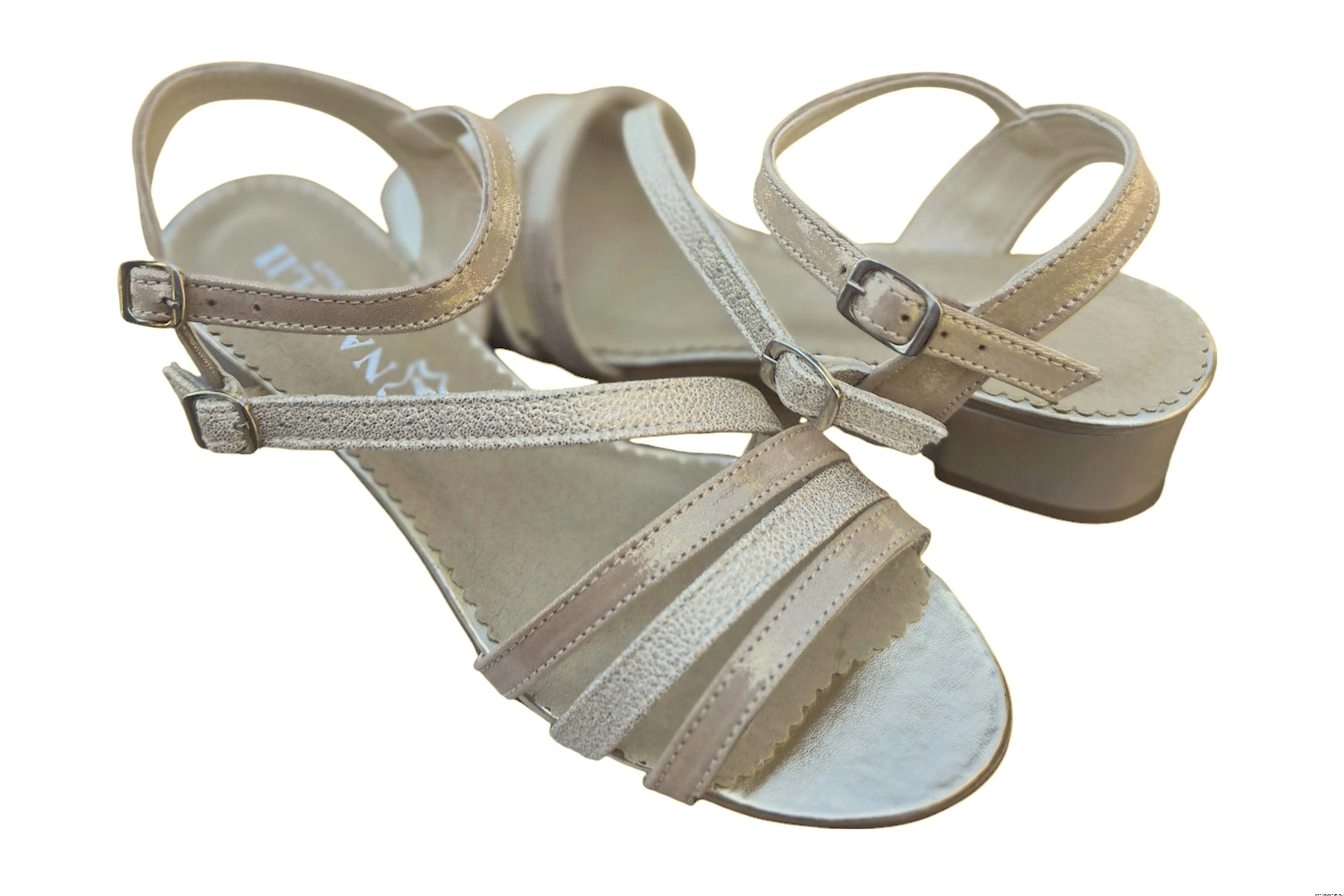 Modne i eleganckie sandały damskie w kolorze beżowym zapinane na sprzączkę wykonane ze skóry naturalnej.