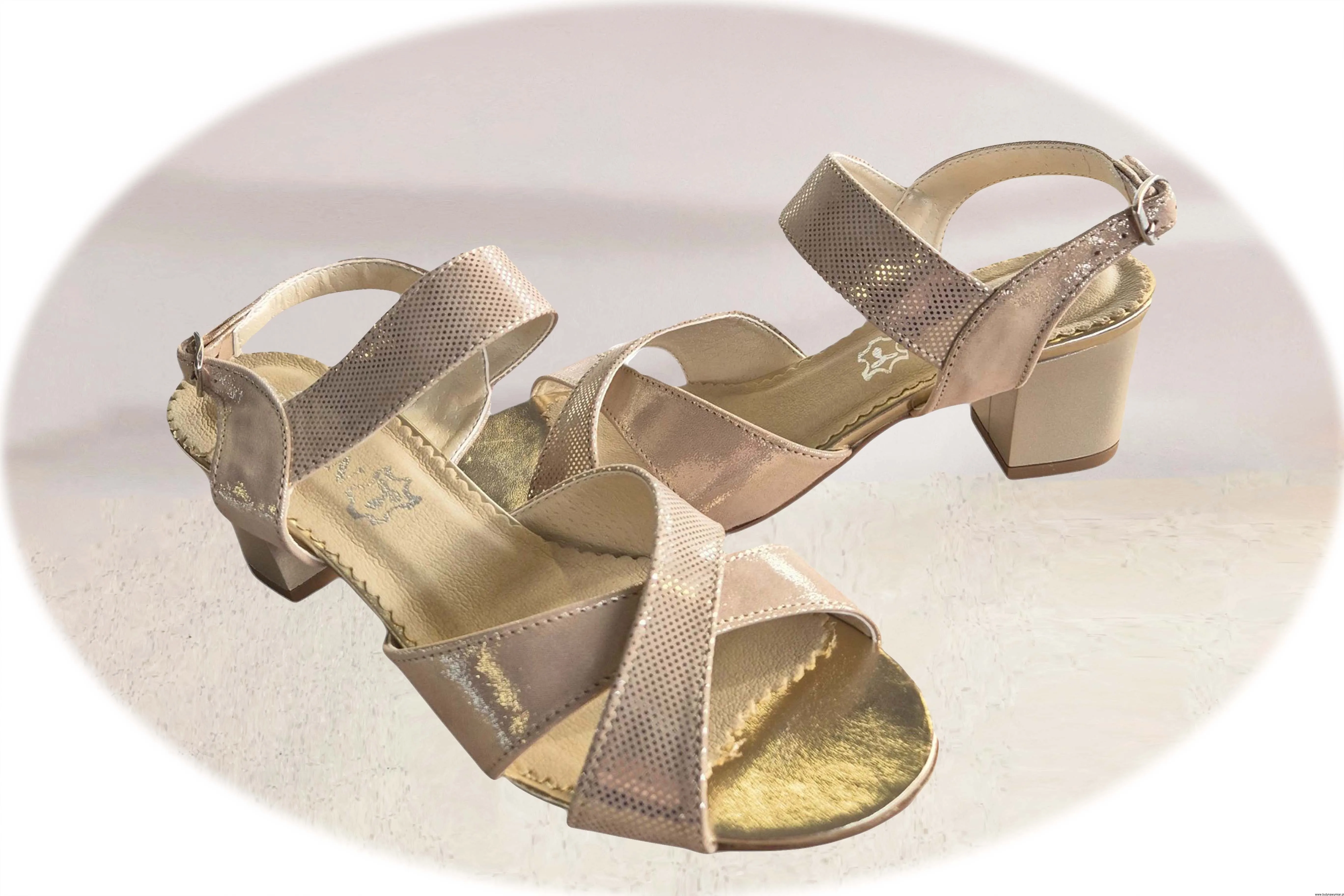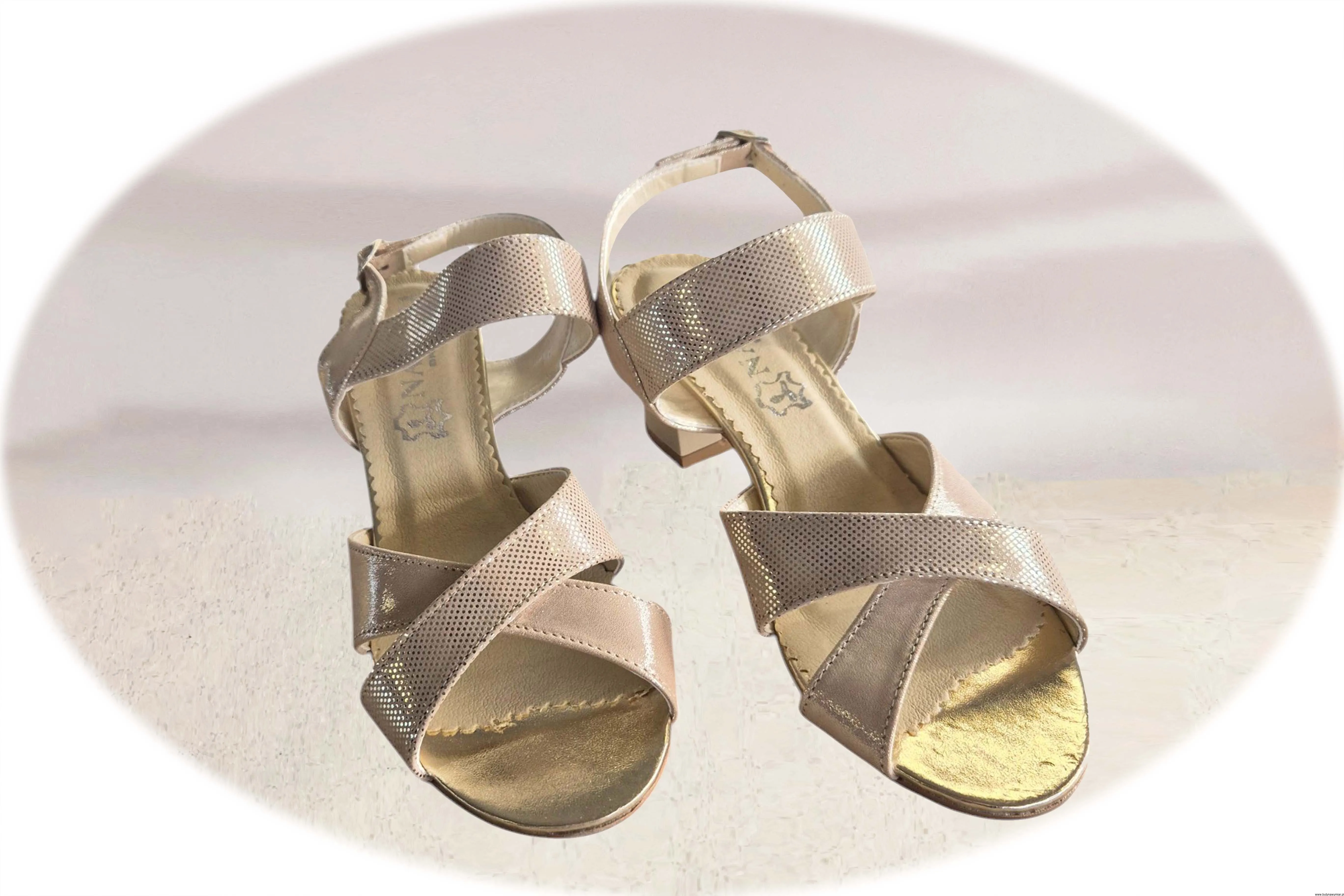Modne i eleganckie sandały damskie w kolorze beżowym zapinane na sprzączkę wykonane ze skóry naturalnej.
