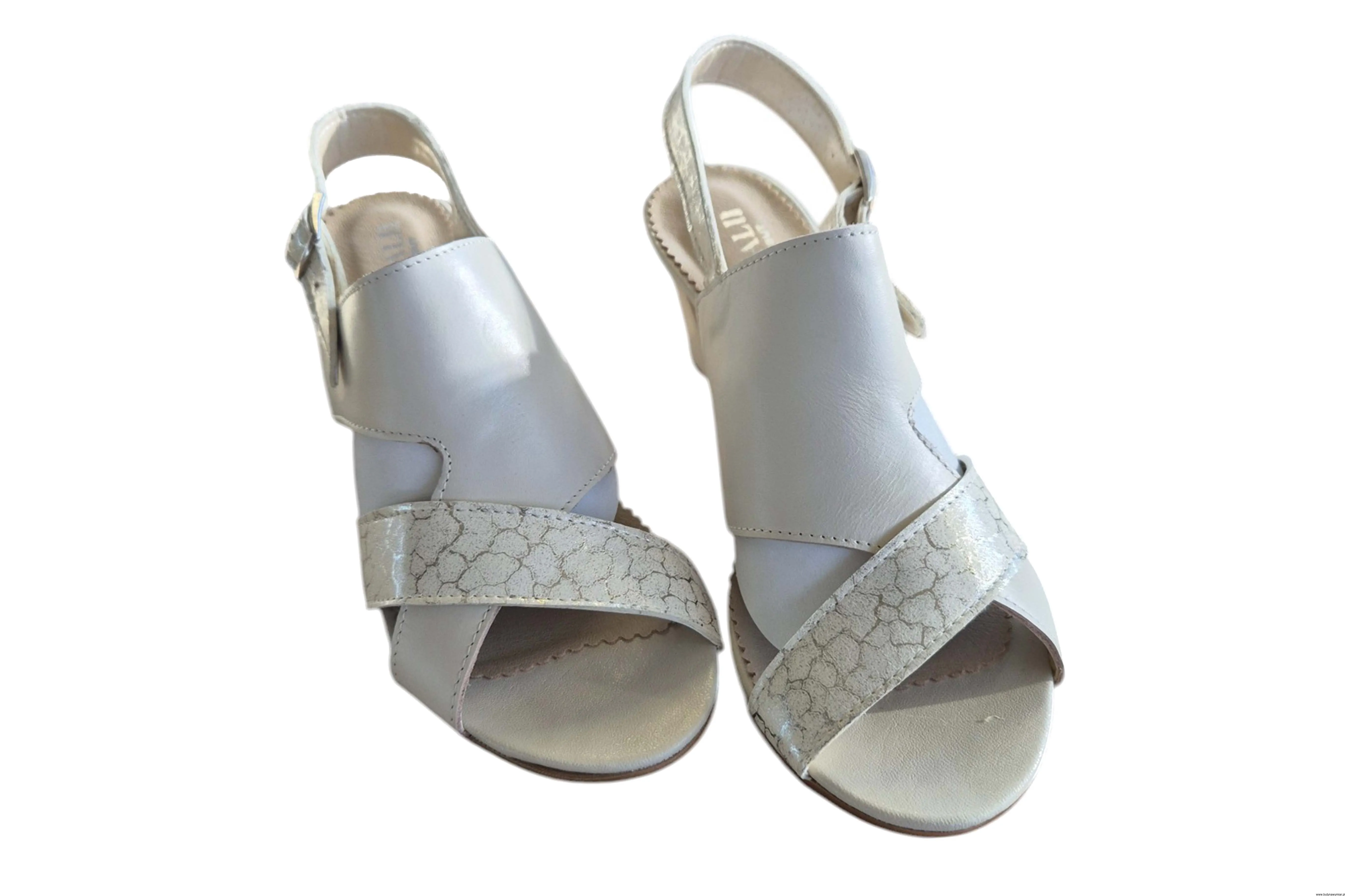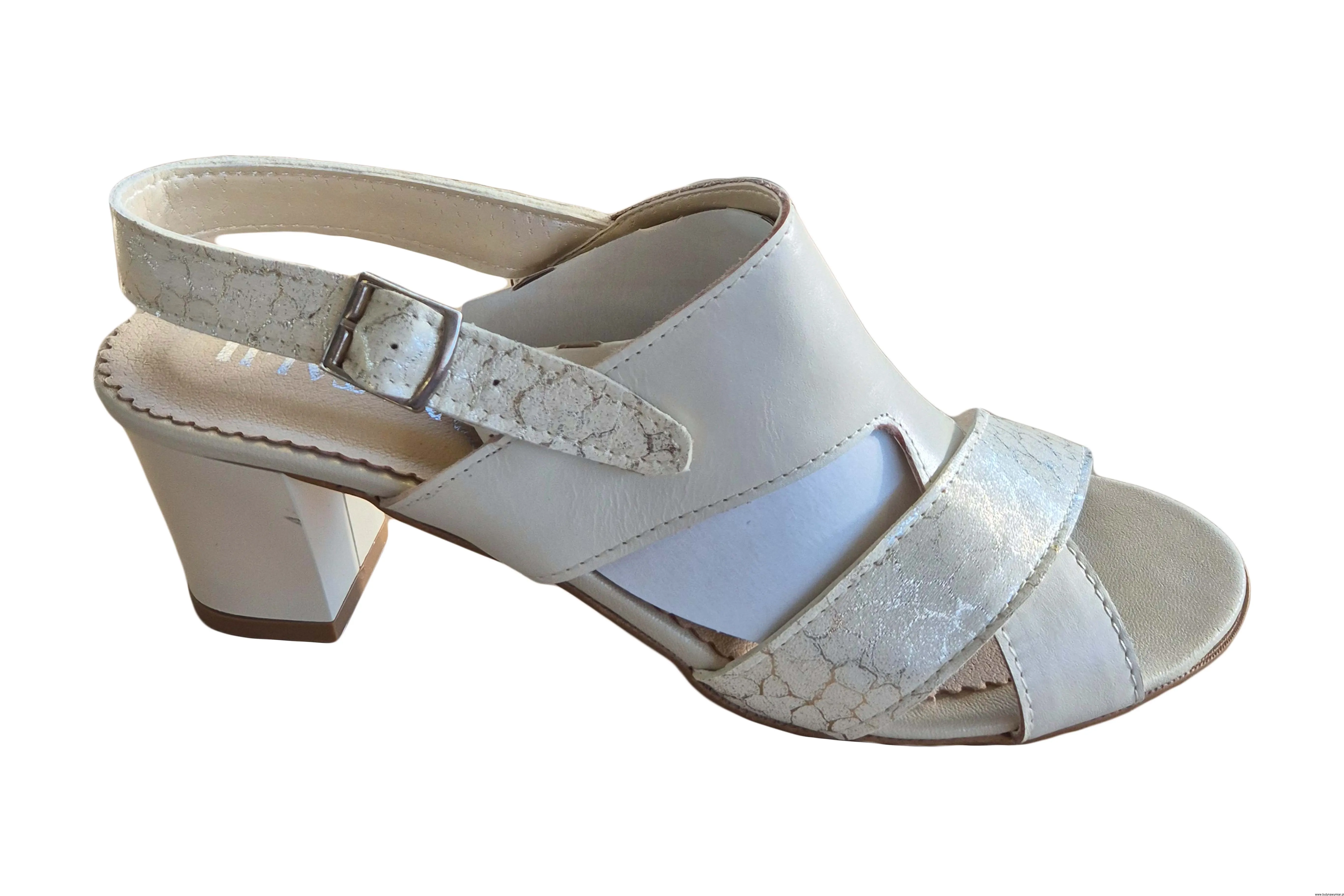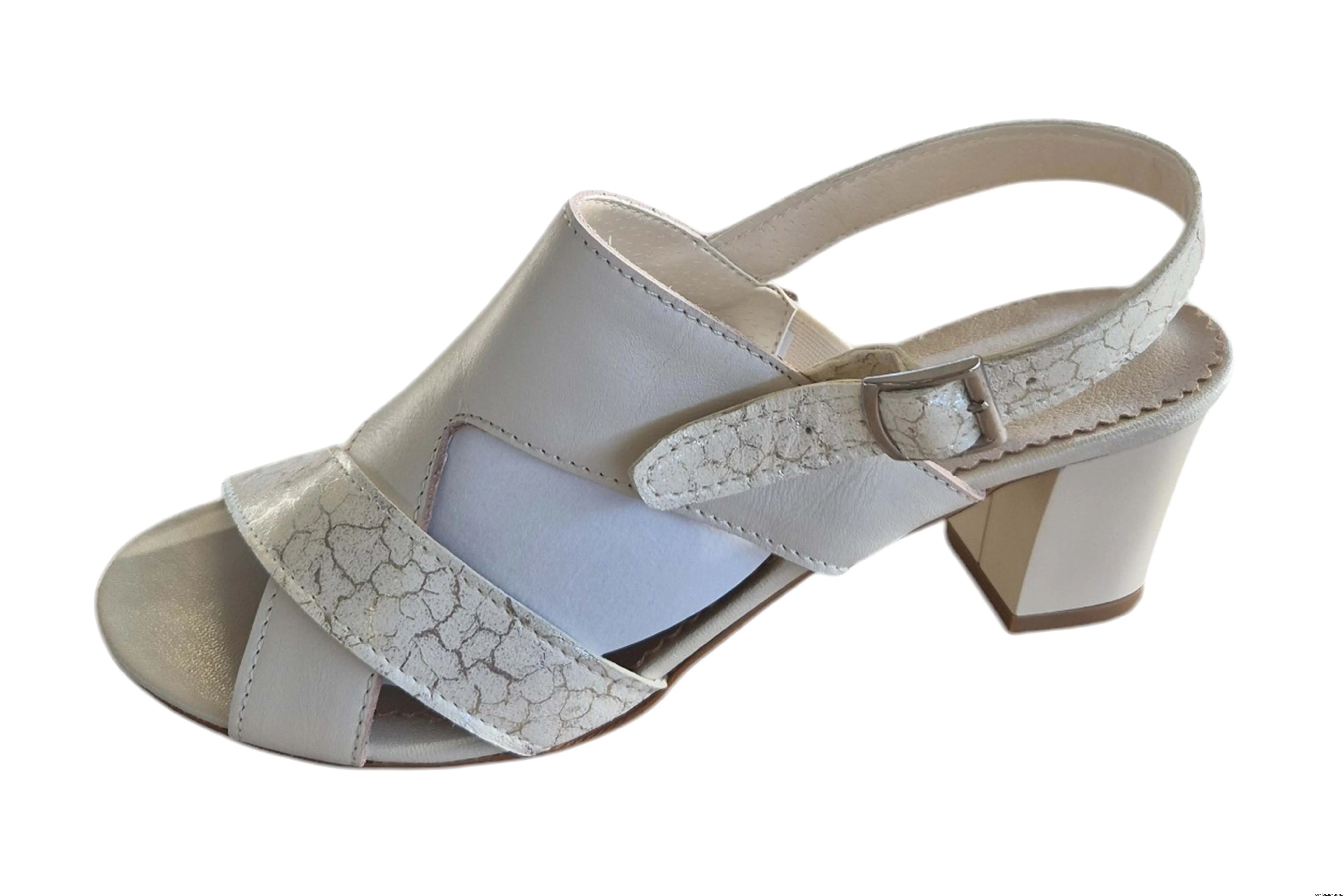 Modne i eleganckie sandały damskie w kolorze beżowym zapinane na sprzączkę wykonane ze skóry naturalnej.