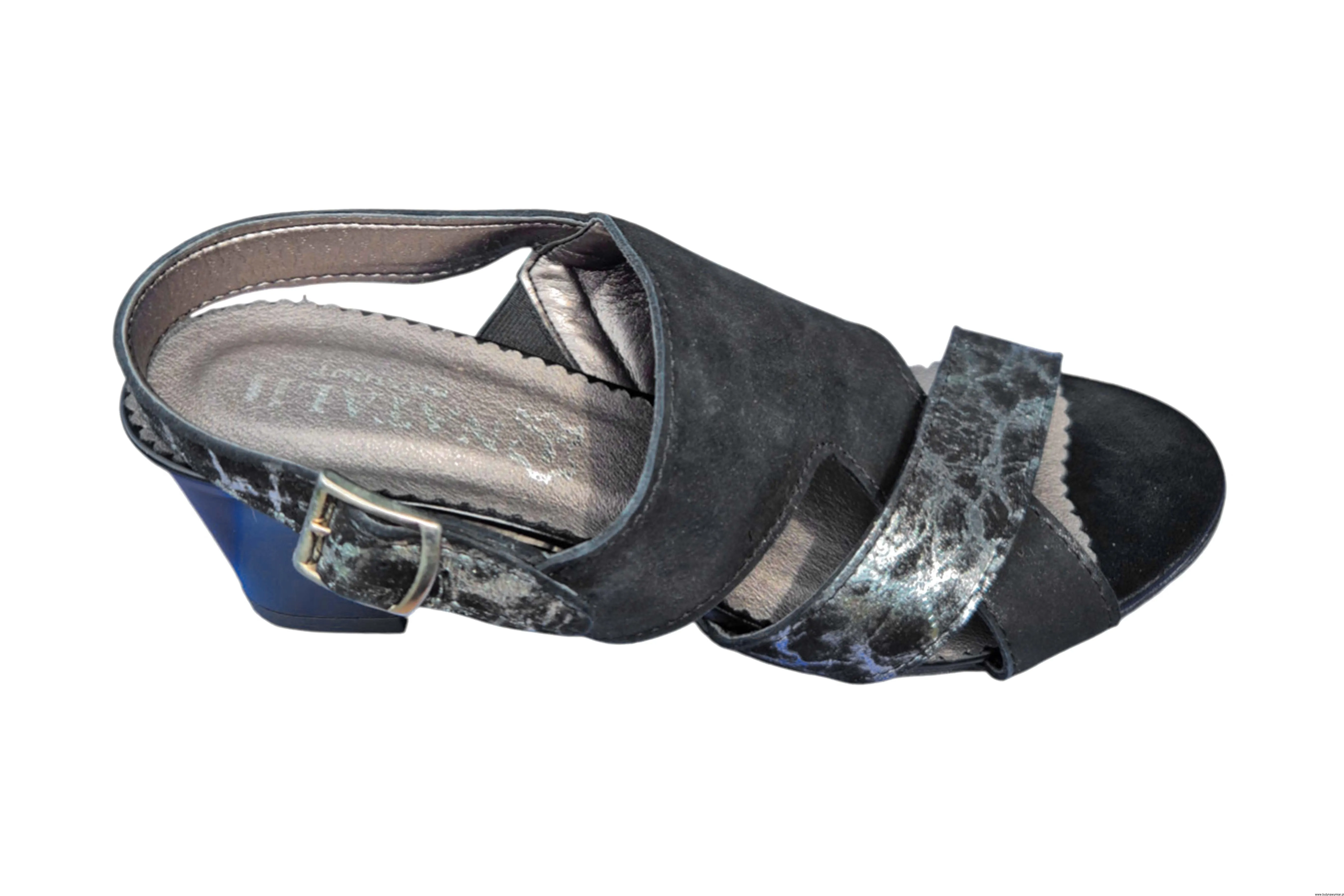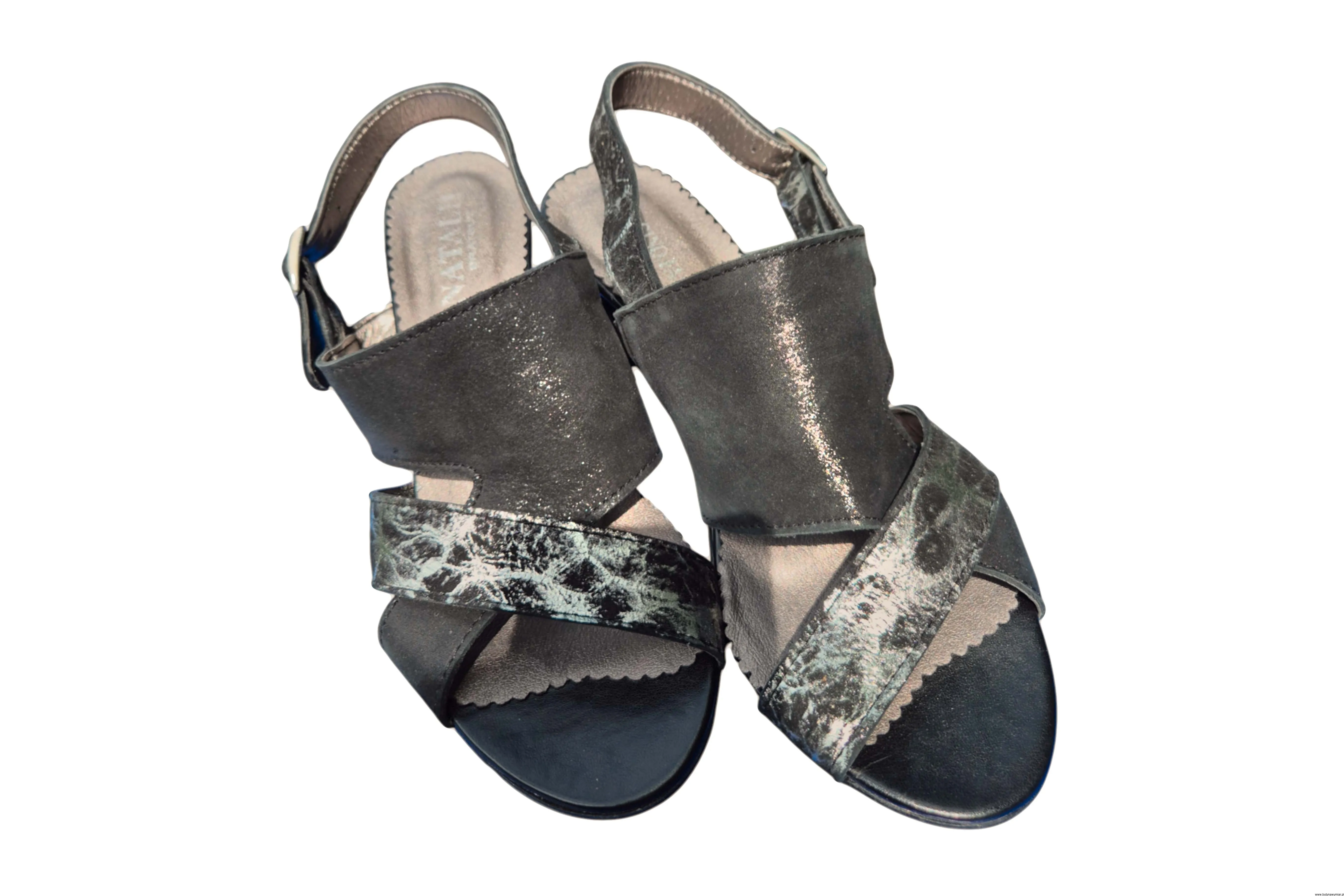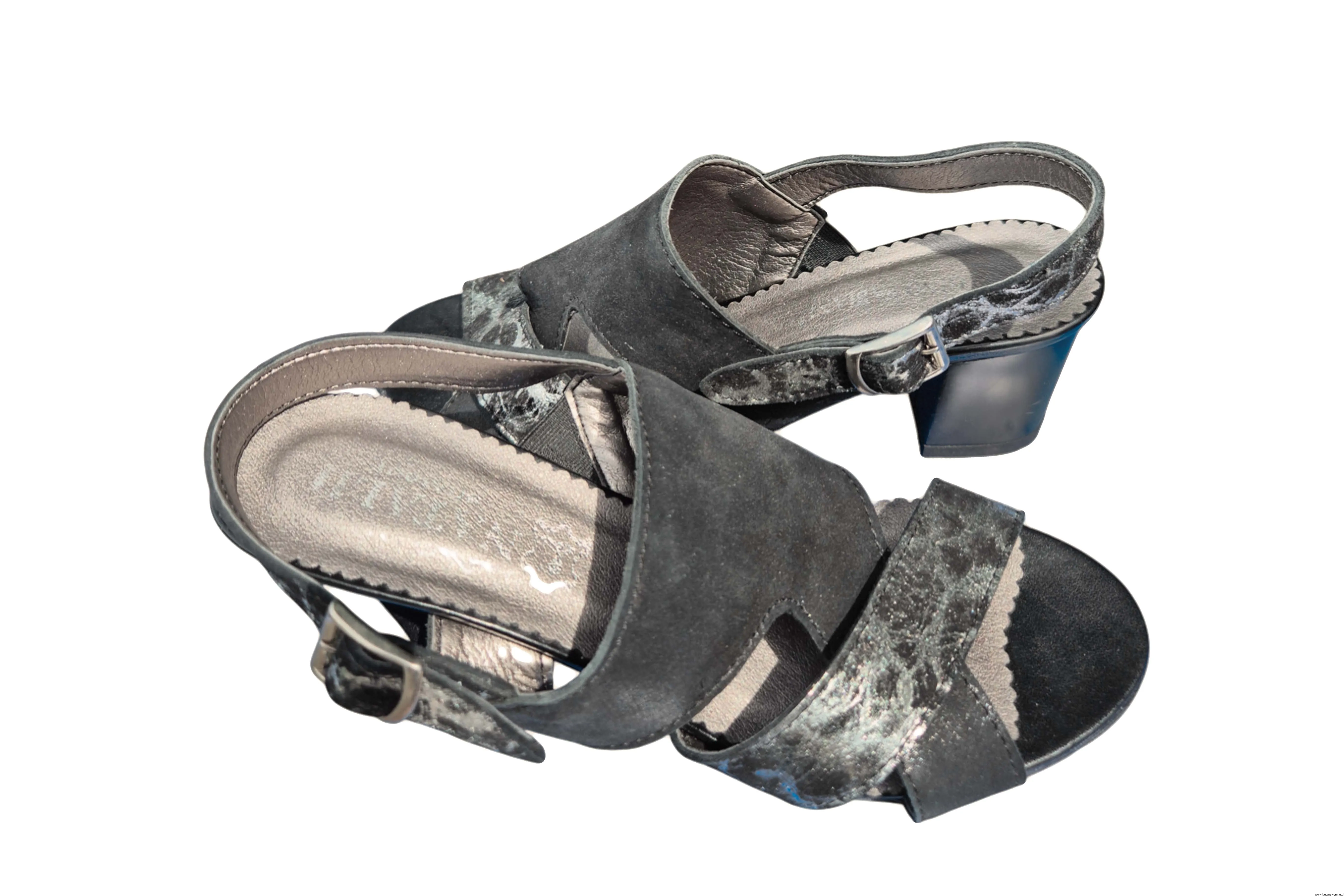 Modne i eleganckie wyjątkowe sandały damskie w kolorze czarnym zapinane na sprzączkę wykonane ze skóry naturalnej.