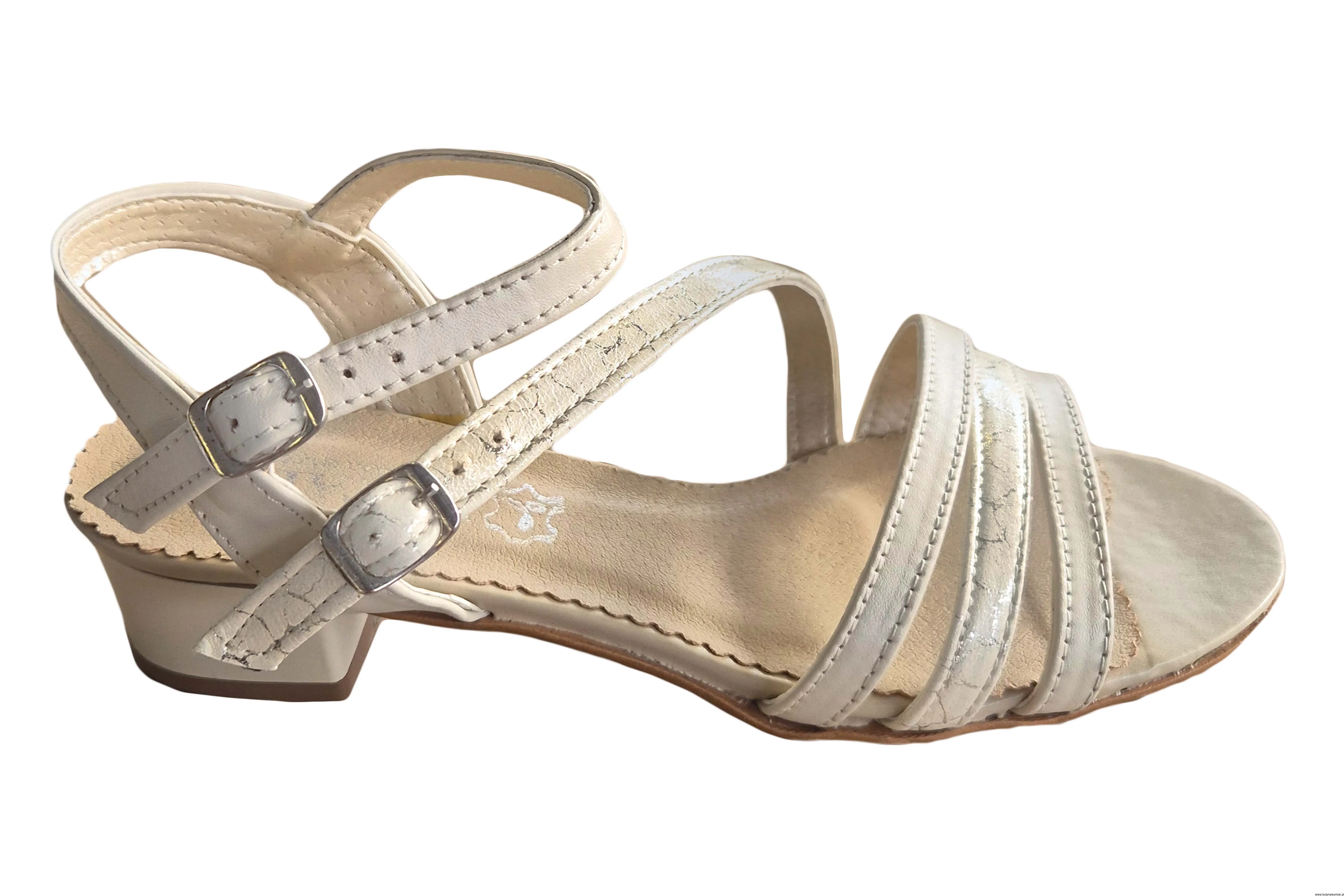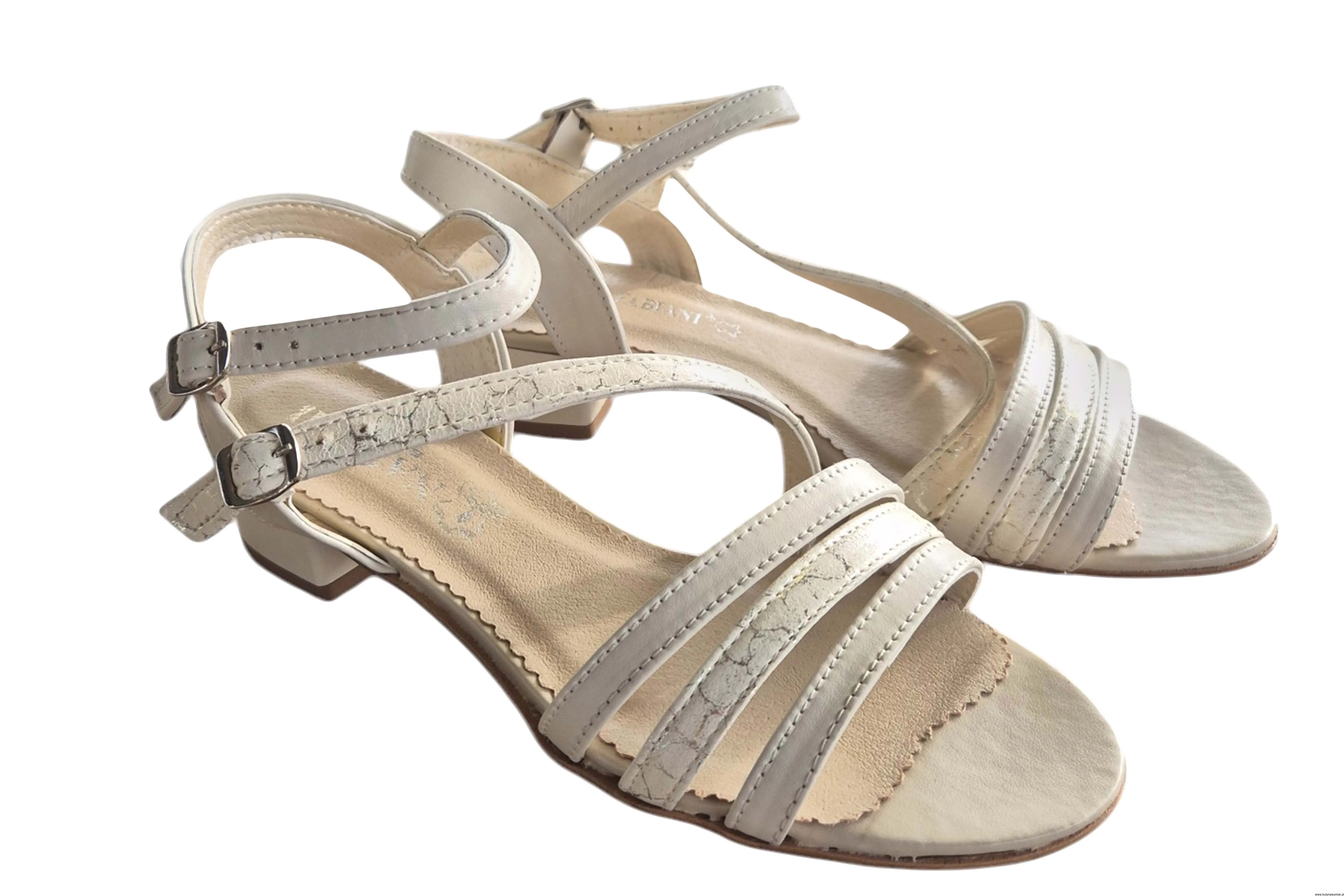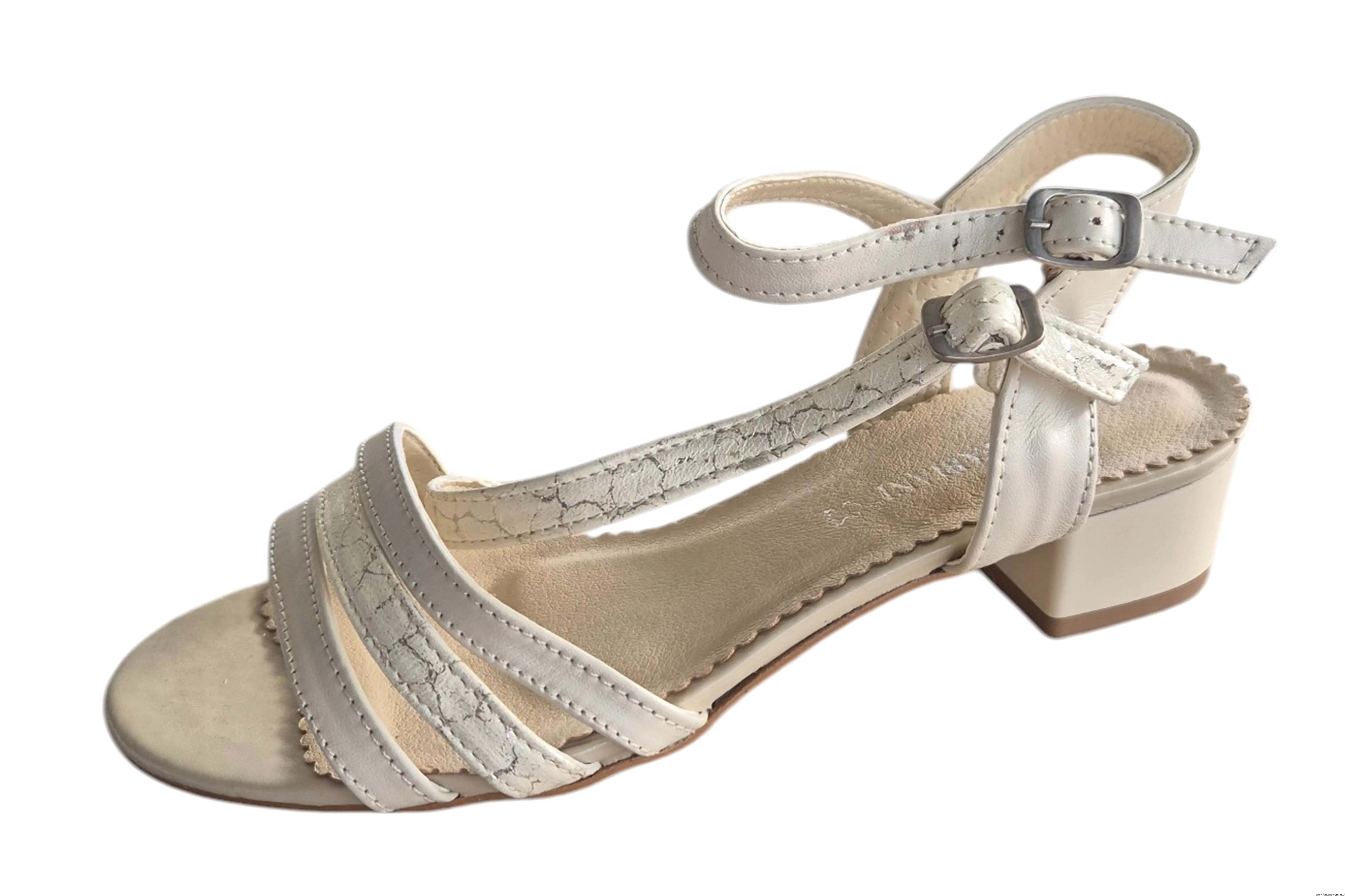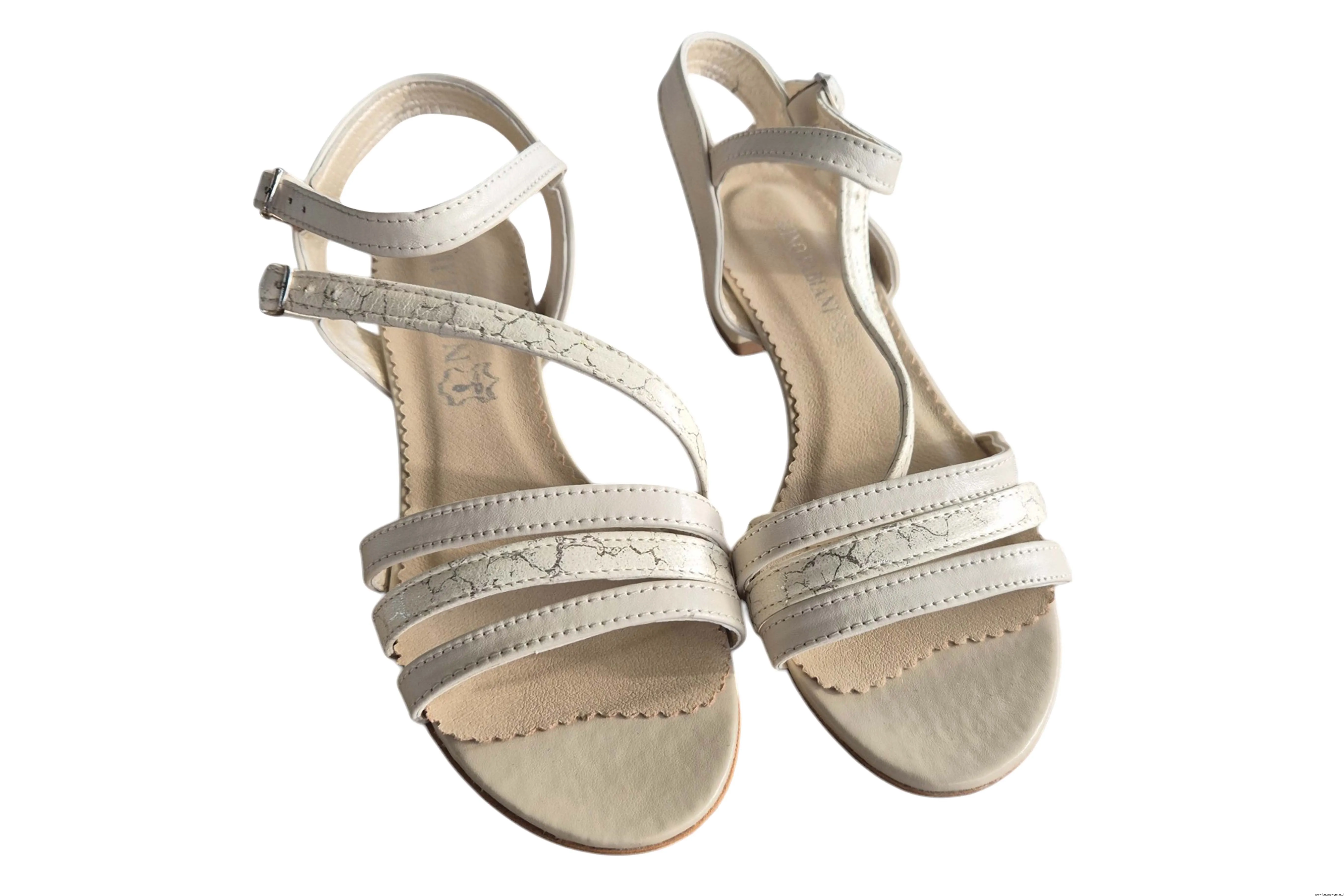 Modne i eleganckie sandały damskie w kolorze ecru zapinane na sprzączkę wykonane ze skóry naturalnej.
