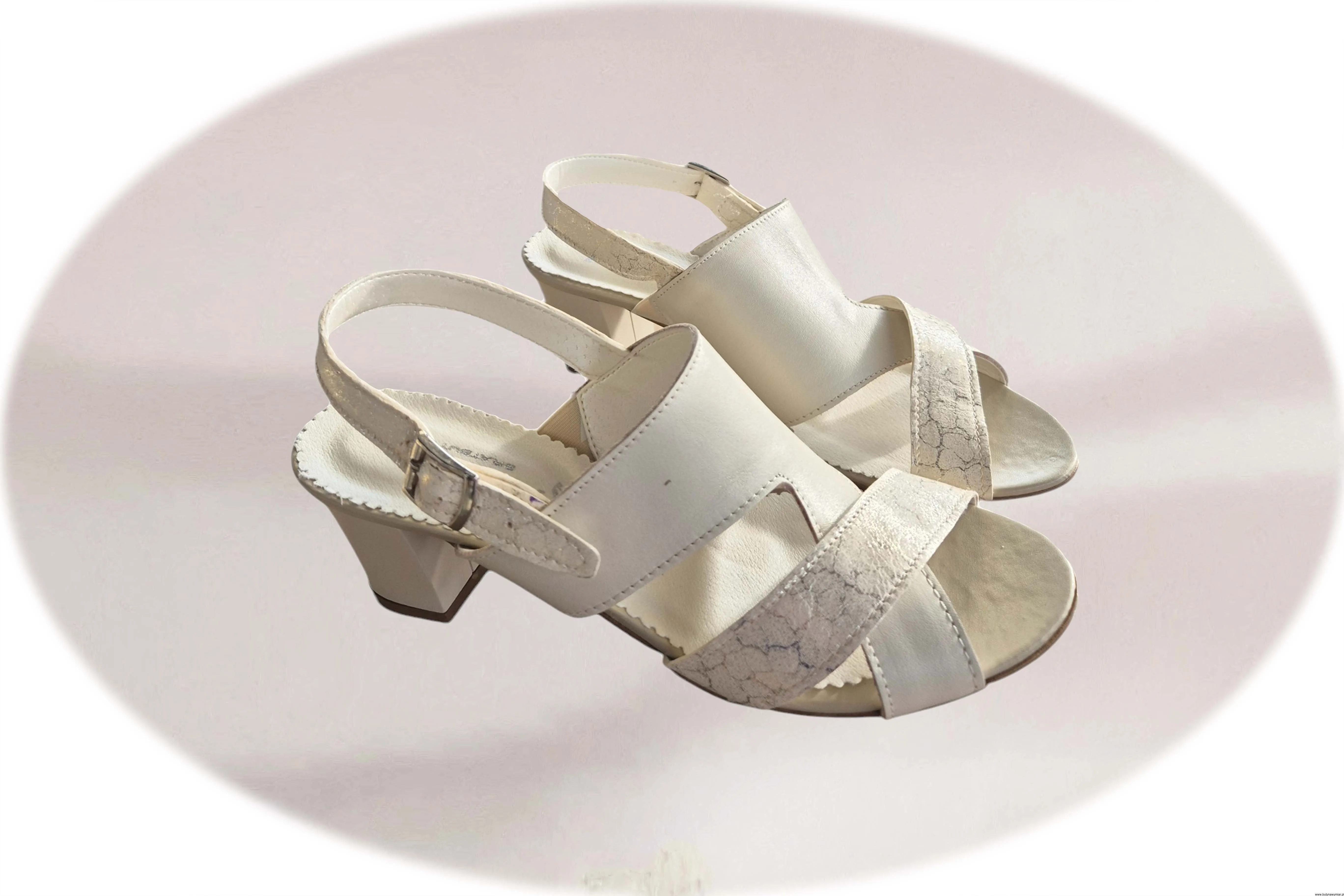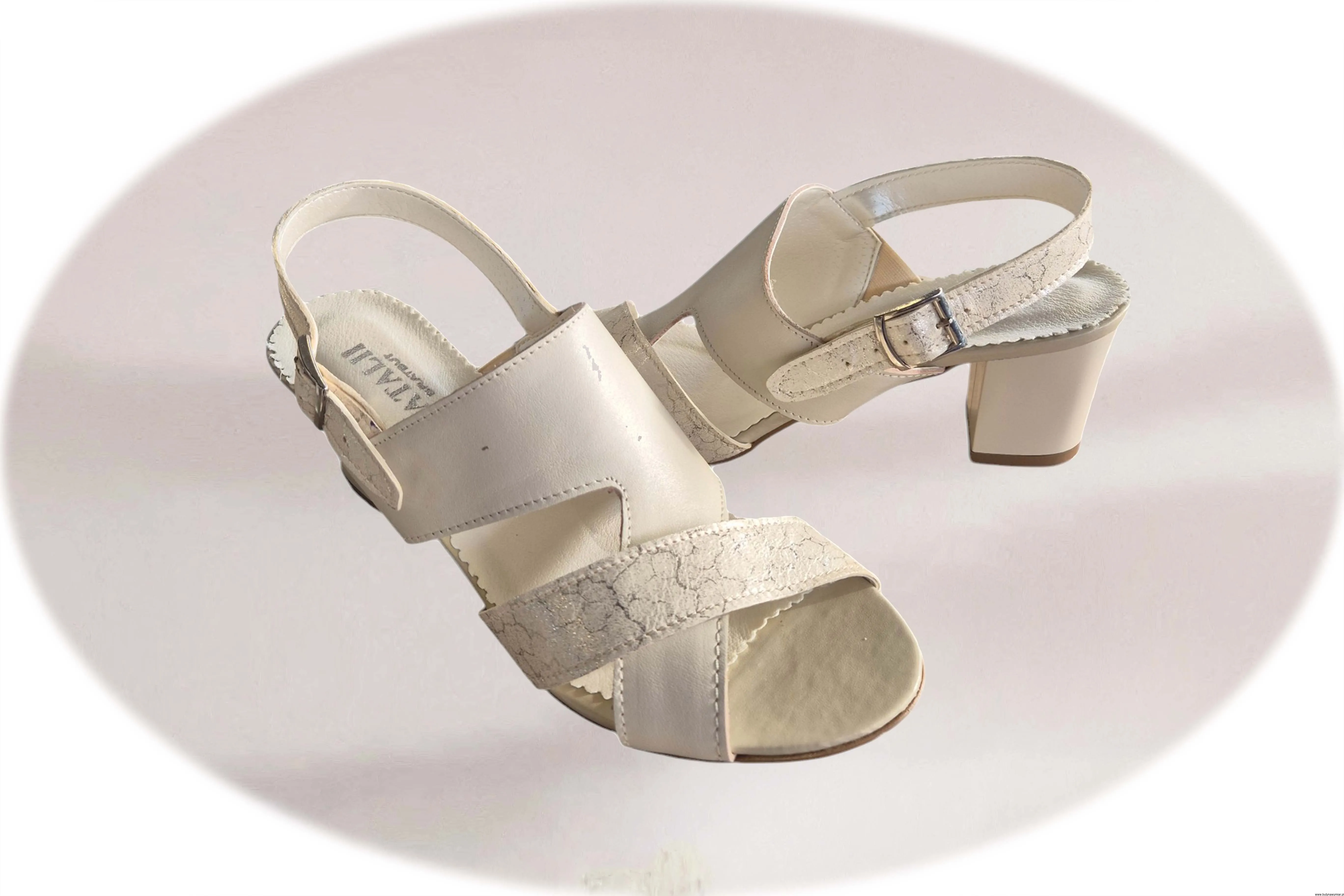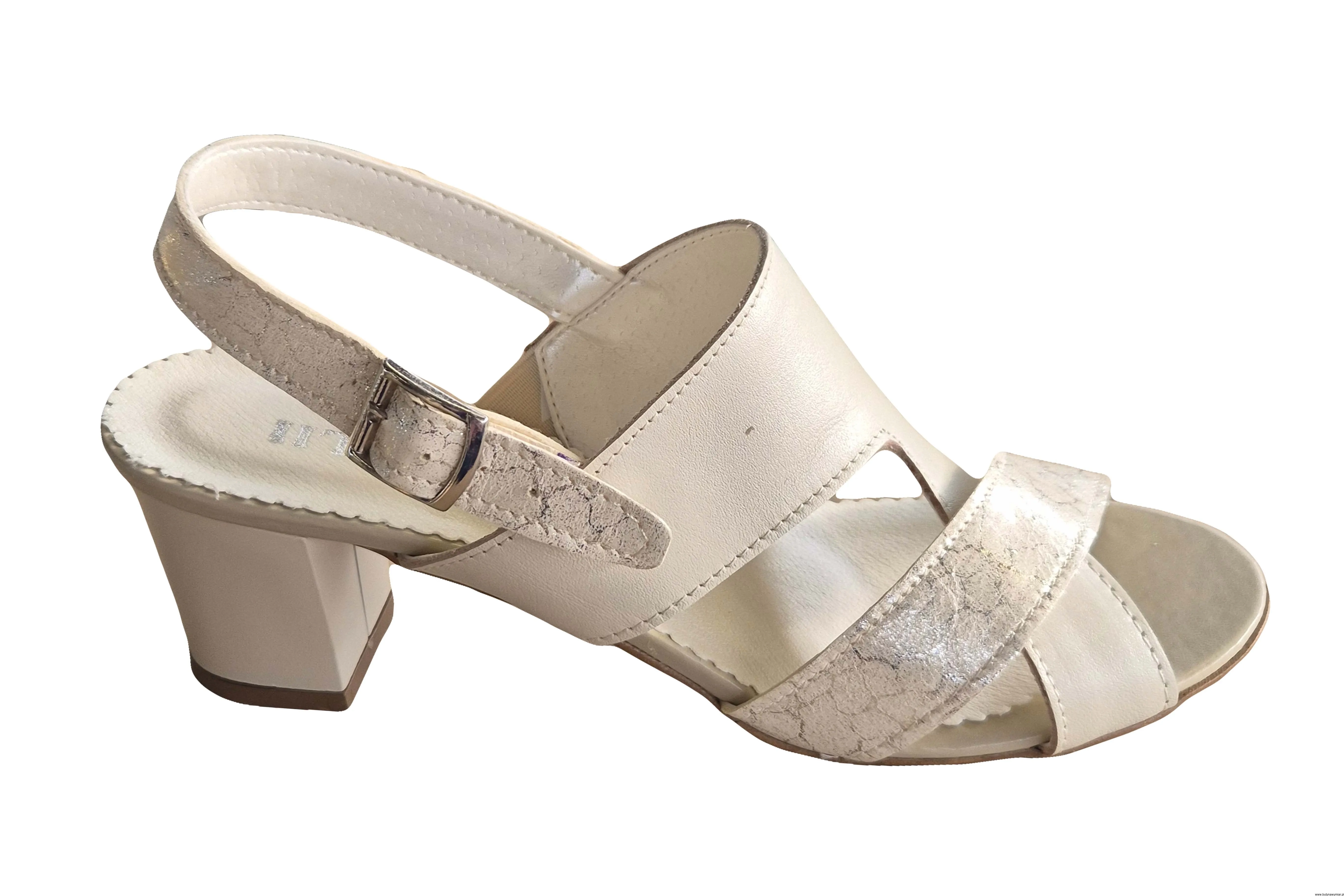 Modne i eleganckie sandały damskie w kolorze ecru zapinane na sprzączkę wykonane ze skóry naturalnej.