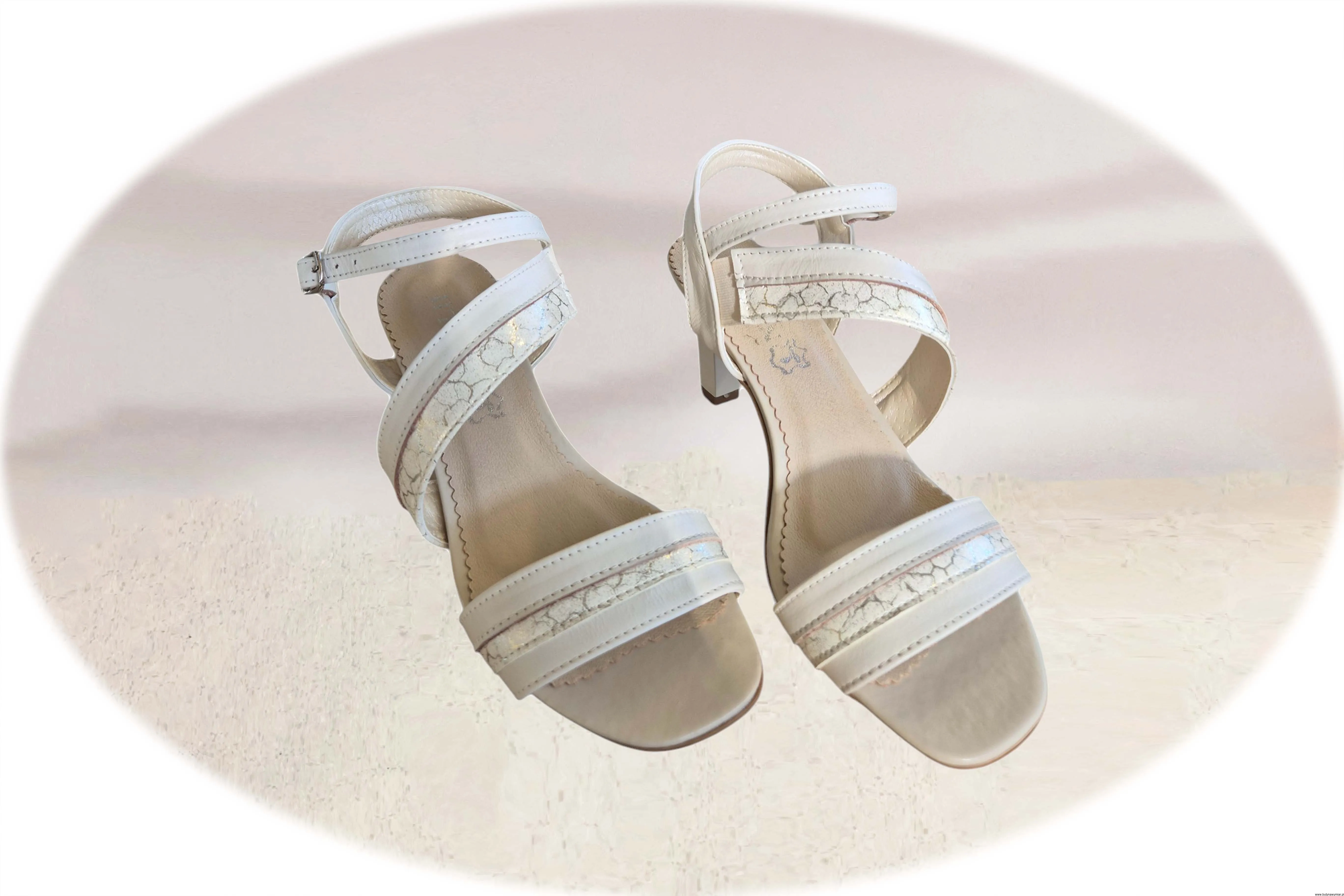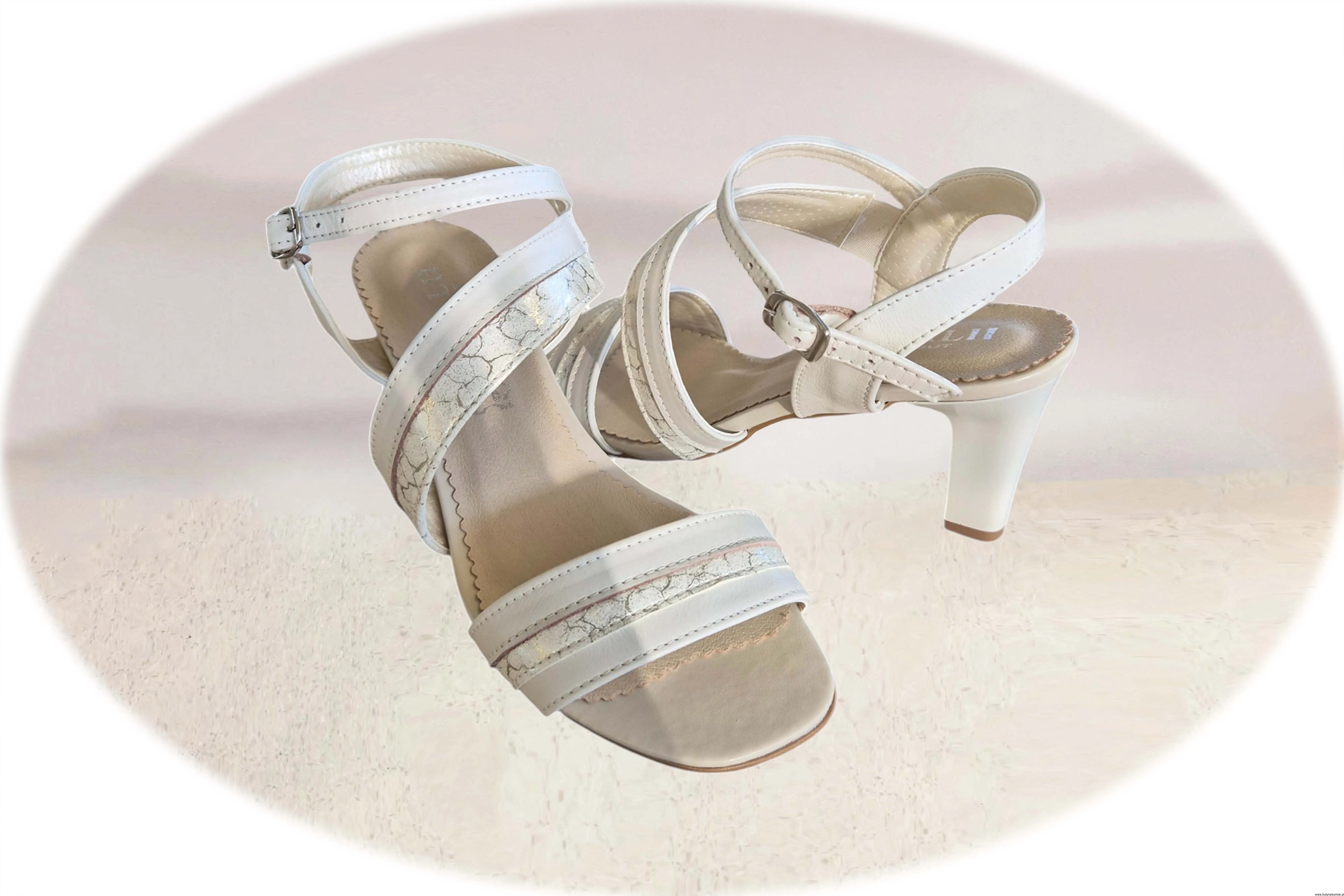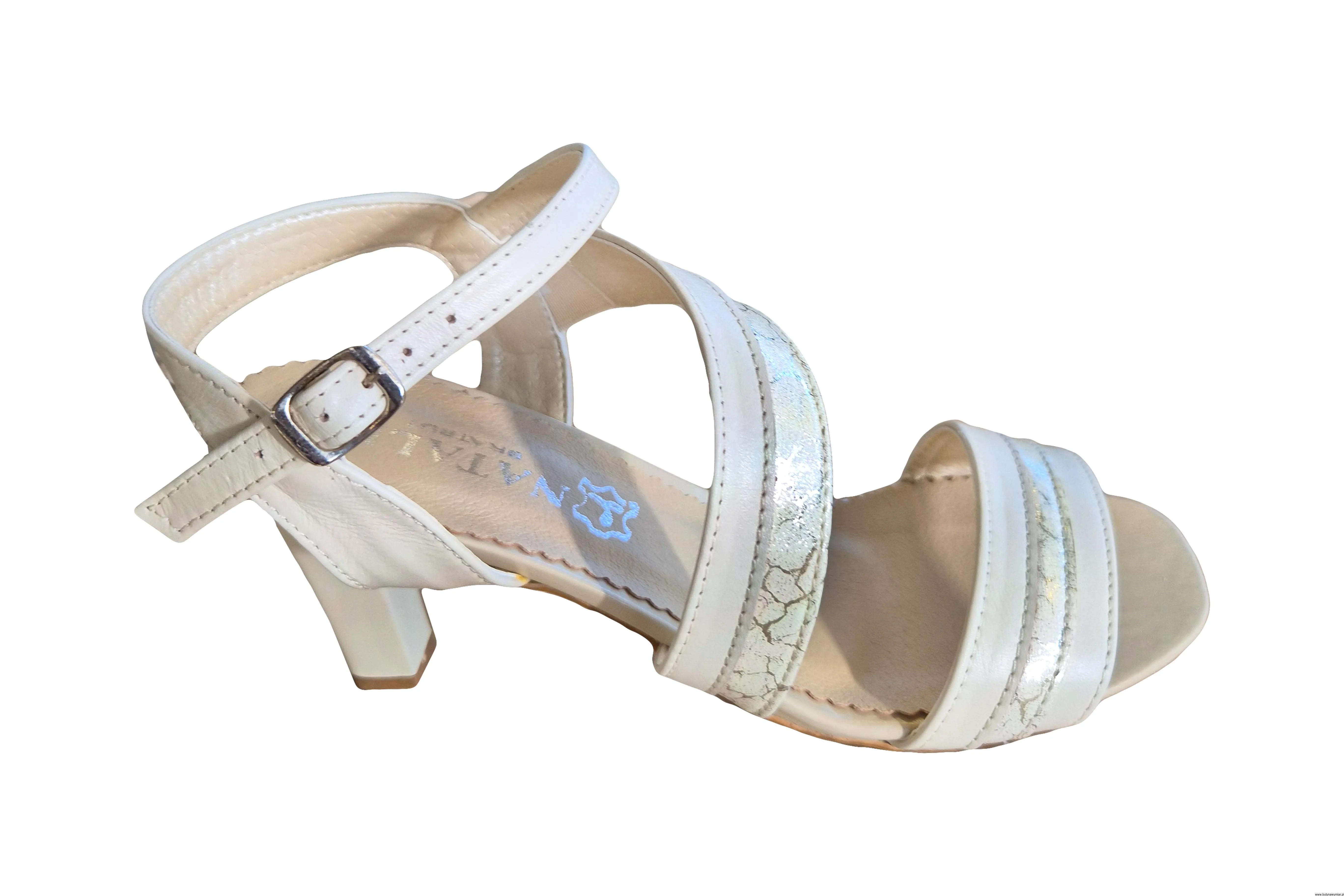 Modne i eleganckie sandały damskie w kolorze ecru zapinane na sprzączkę wykonane ze skóry naturalnej.