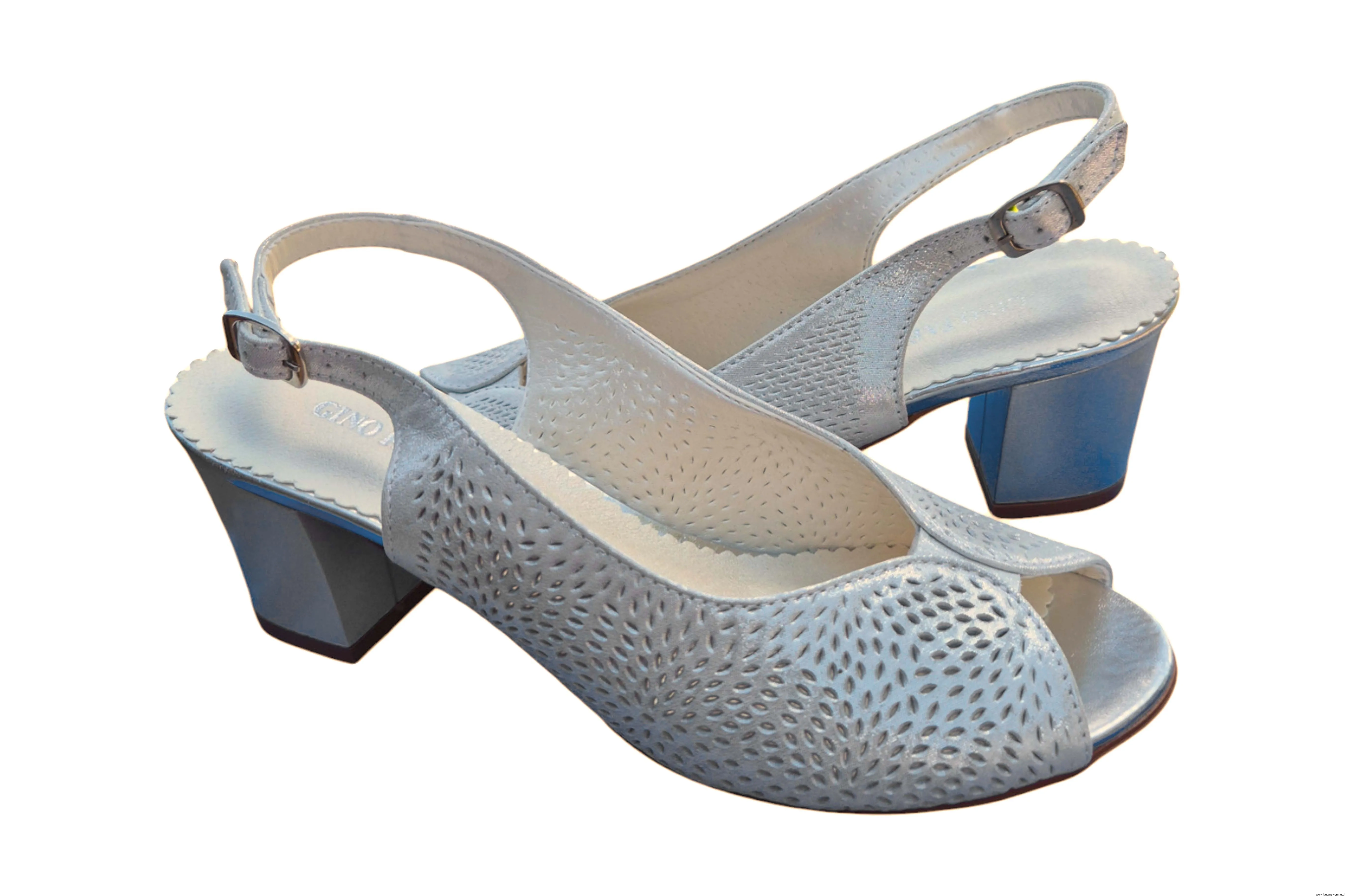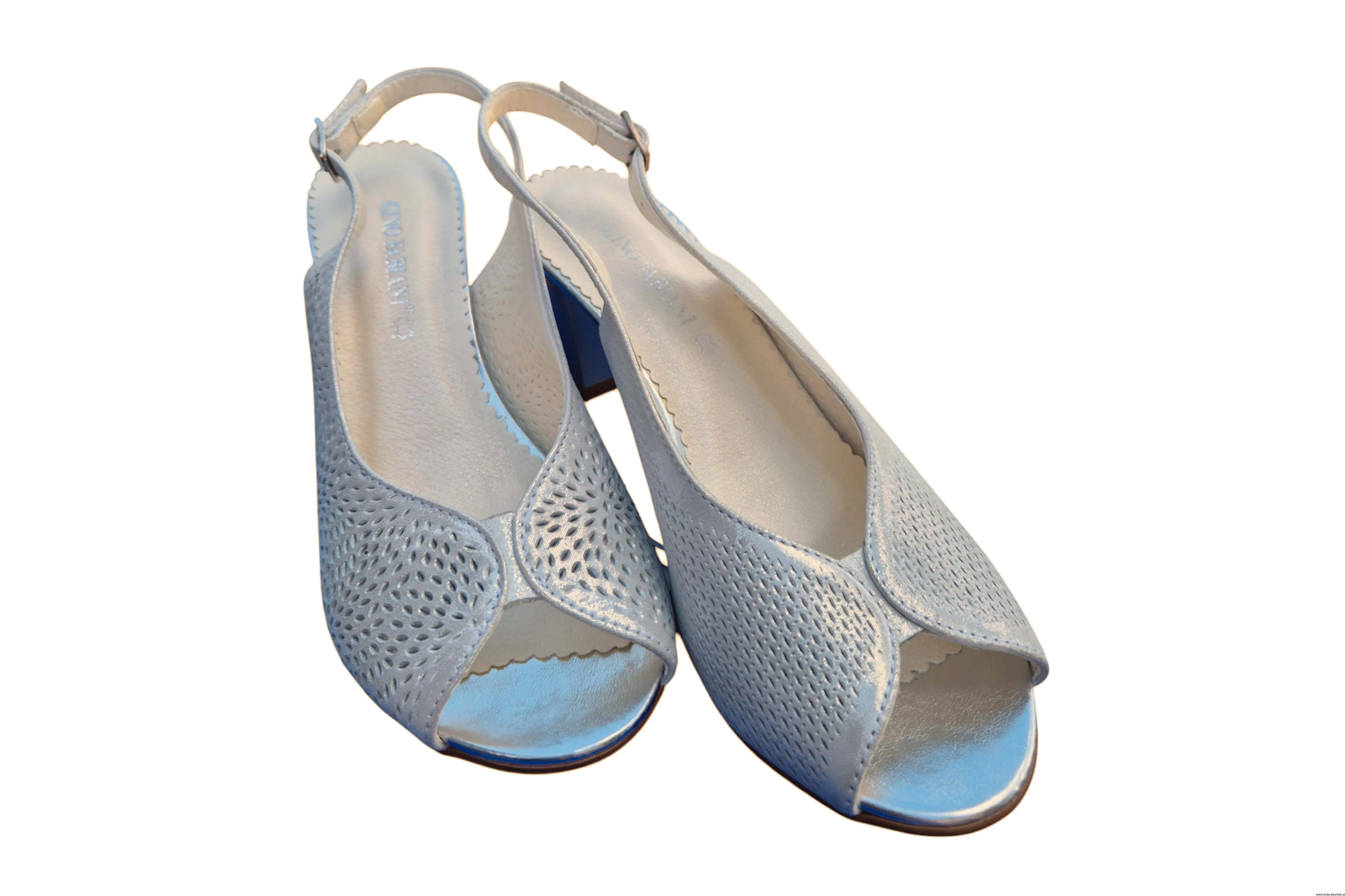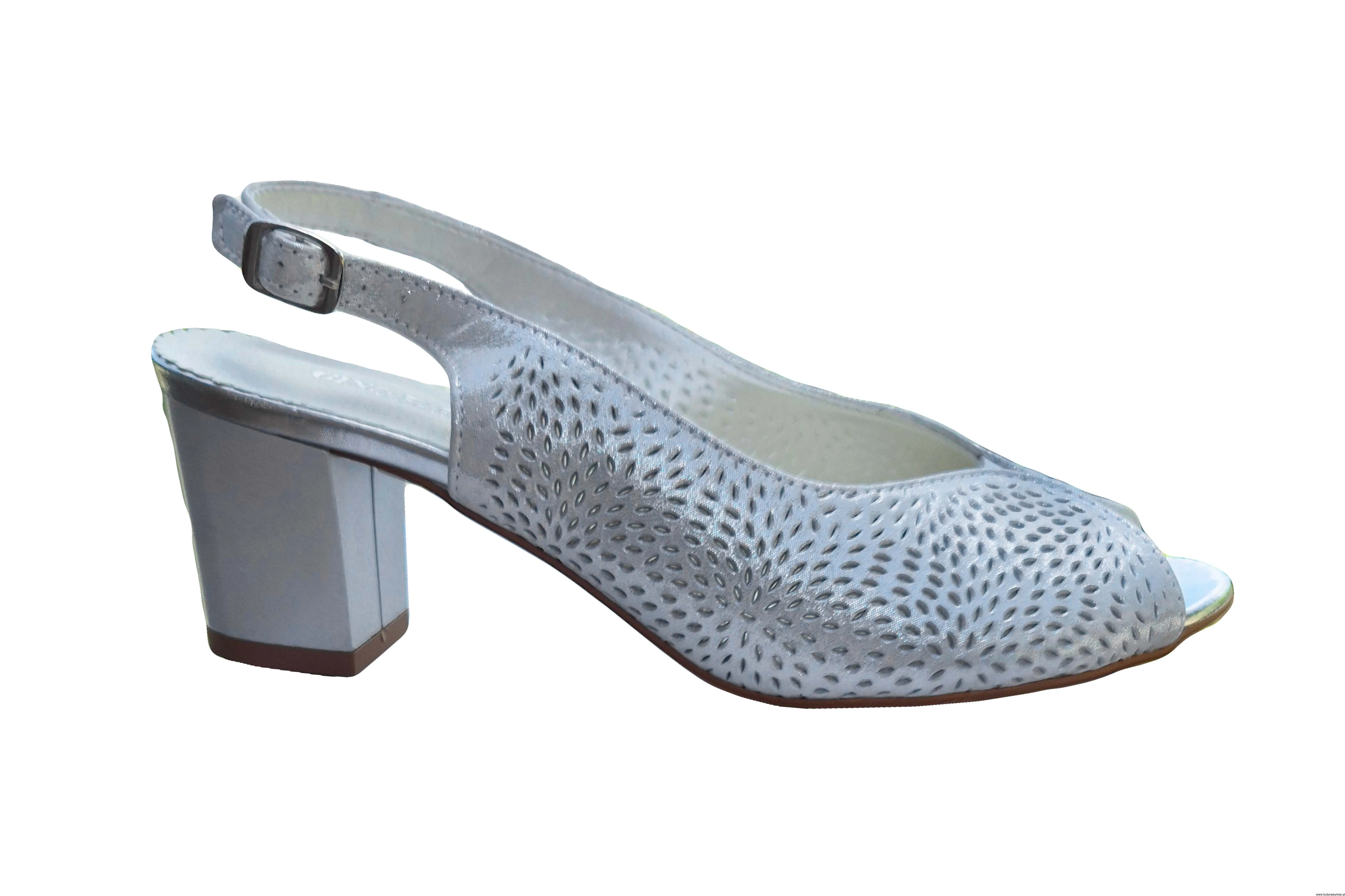 Modne i eleganckie wyjątkowe sandały damskie w kolorze Srebrnym zapinane na sprzączkę wykonane ze skóry naturalnej.