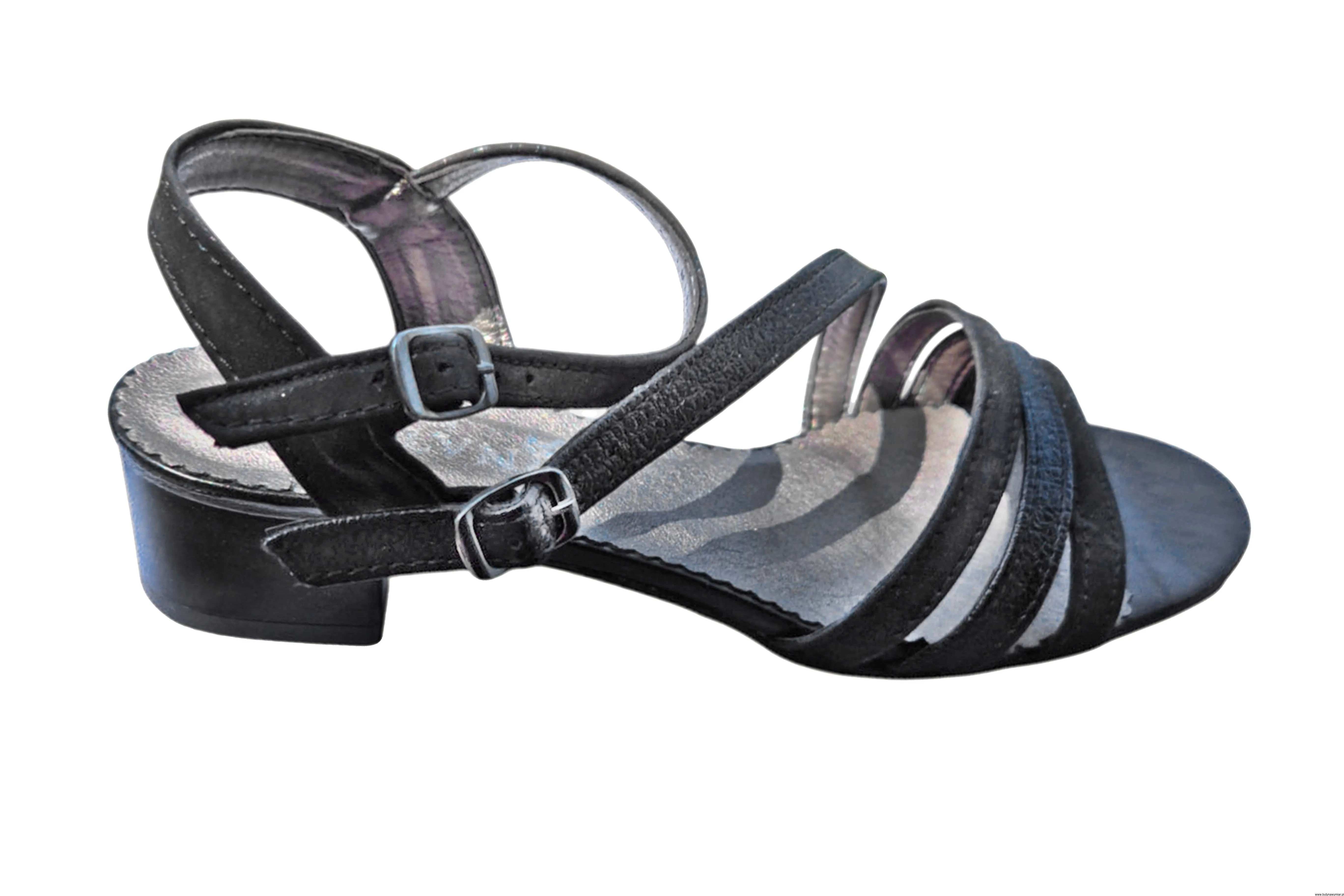 Modne i eleganckie sandały damskie w kolorze czarnym zapinane na sprzączkę wykonane ze skóry naturalnej, na płaskim obcasie