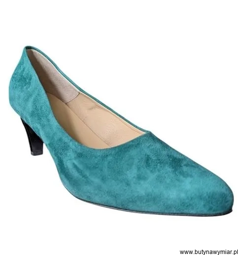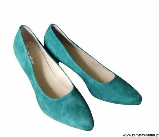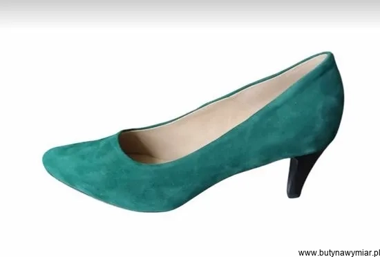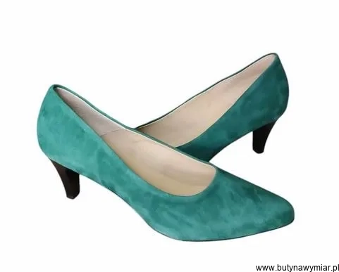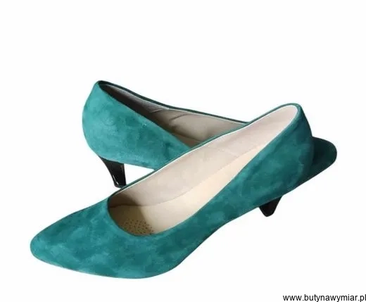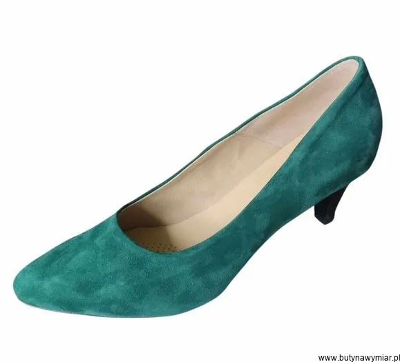 Bardzo modne i wygodne CZÓŁENKO wykonane w całości z mięciutkiej skóry naturalnej zamszowej w kolorze zielonym na grubszej szpilce wysokiej na 7 cm