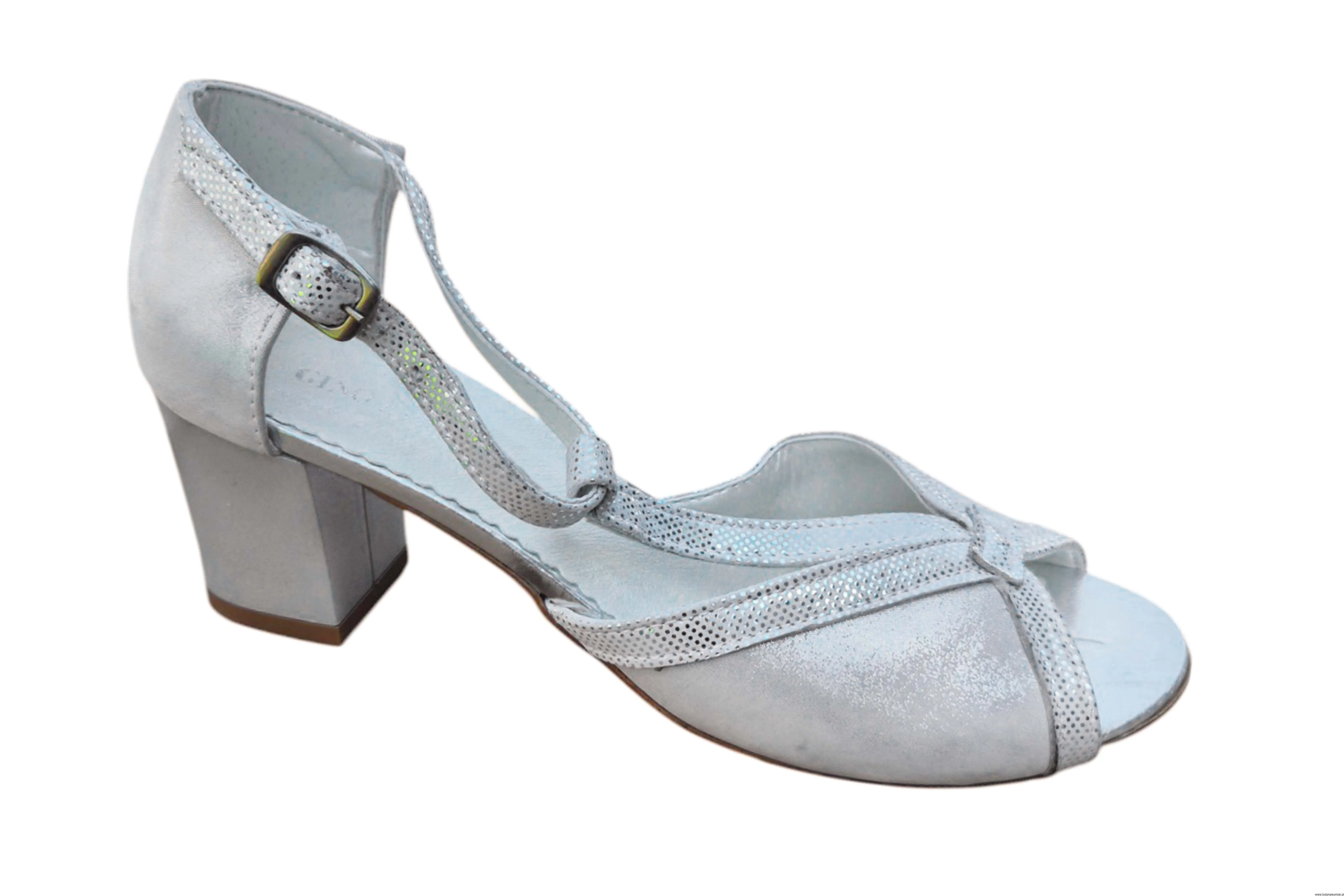 Modne i eleganckie sandały damskie w kolorze srebrne zapinane na sprzączkę wykonane ze skóry naturalnej.
