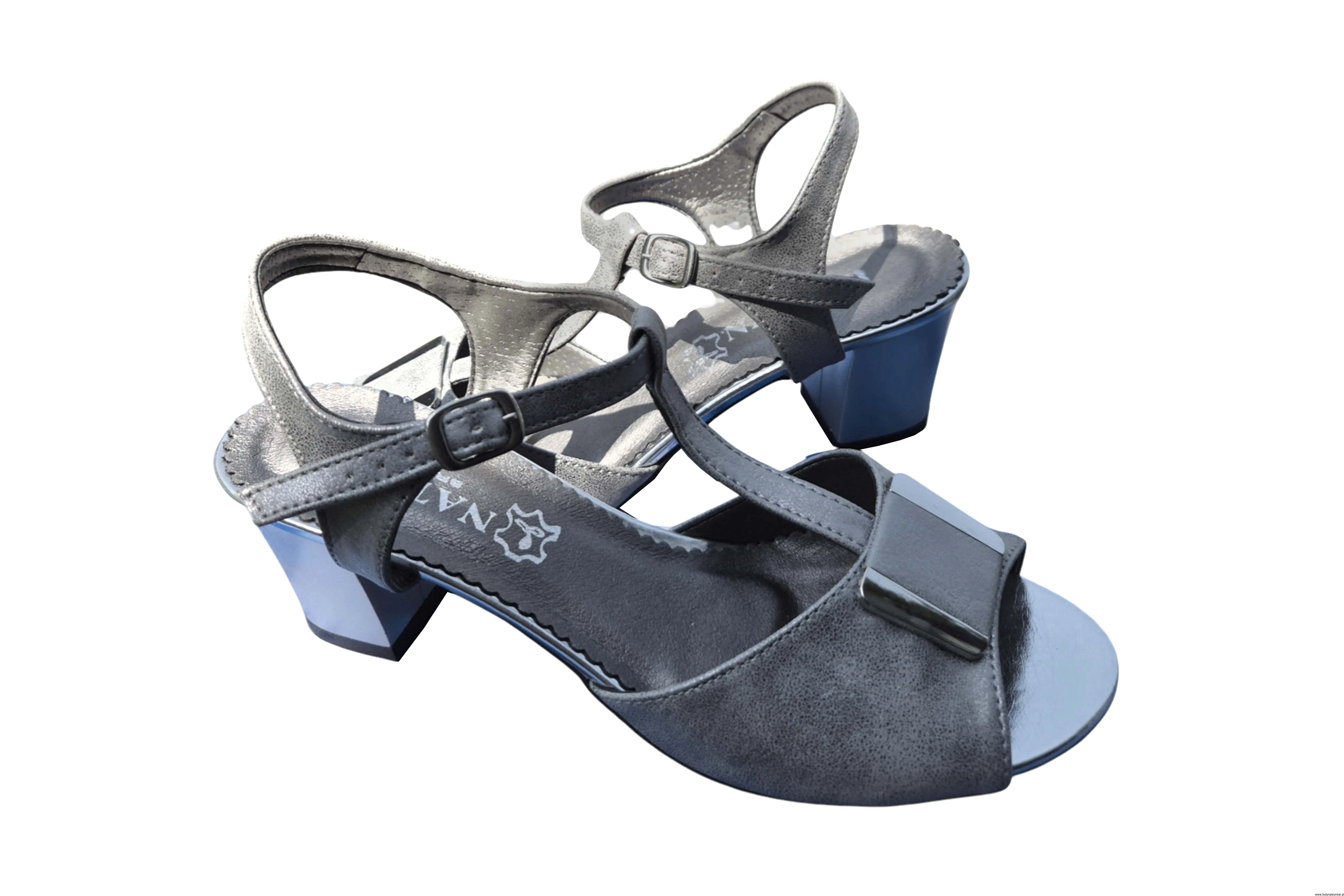Modne i eleganckie sandały damskie w kolorze srebrne zapinane na sprzączkę wykonane ze skóry naturalnej.