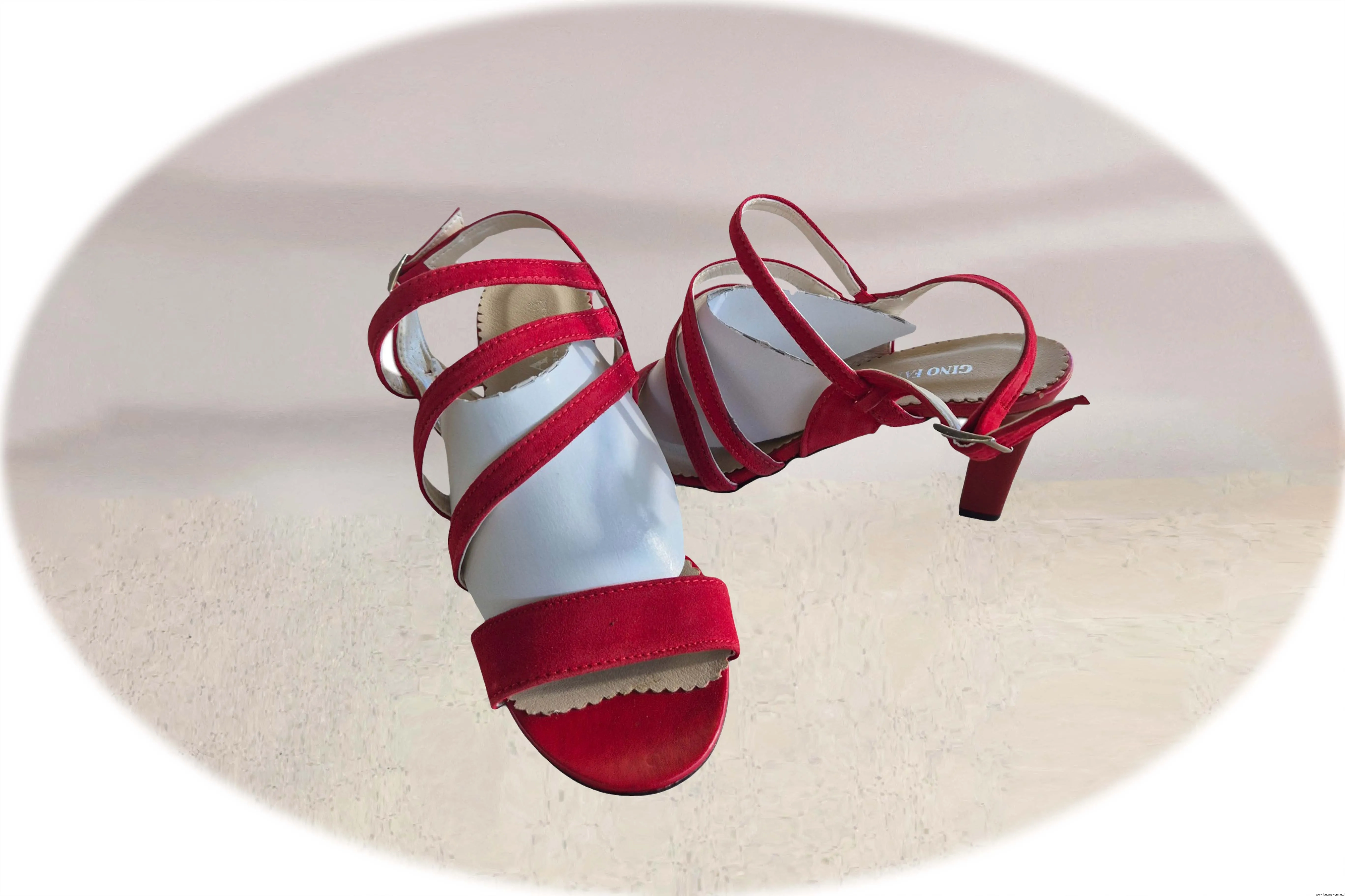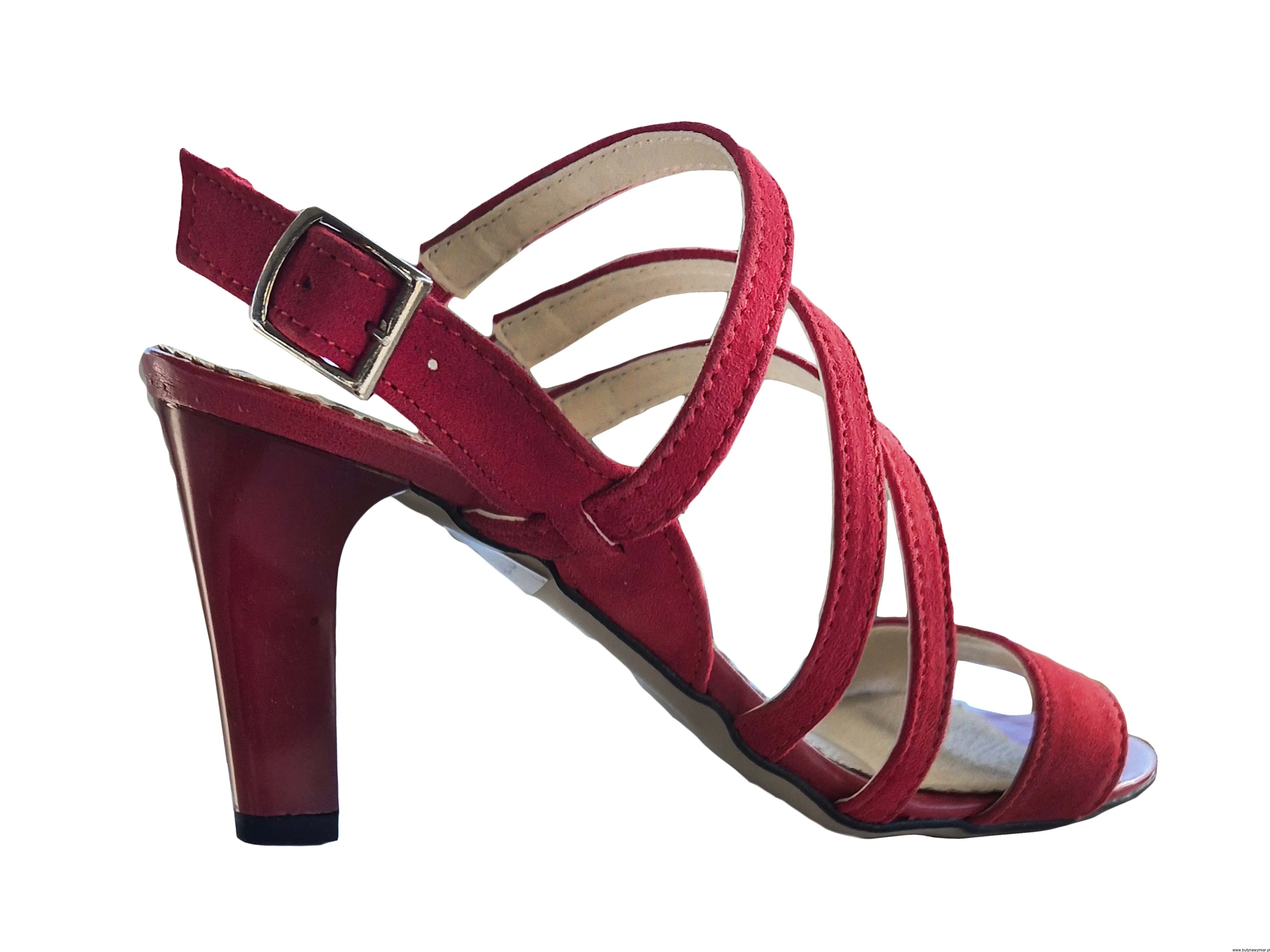 Wyjątkowe i eleganckie sandały damskie w kolorze czerwonym zapinane na sprzączkę wykonane ze skóry naturalnej.